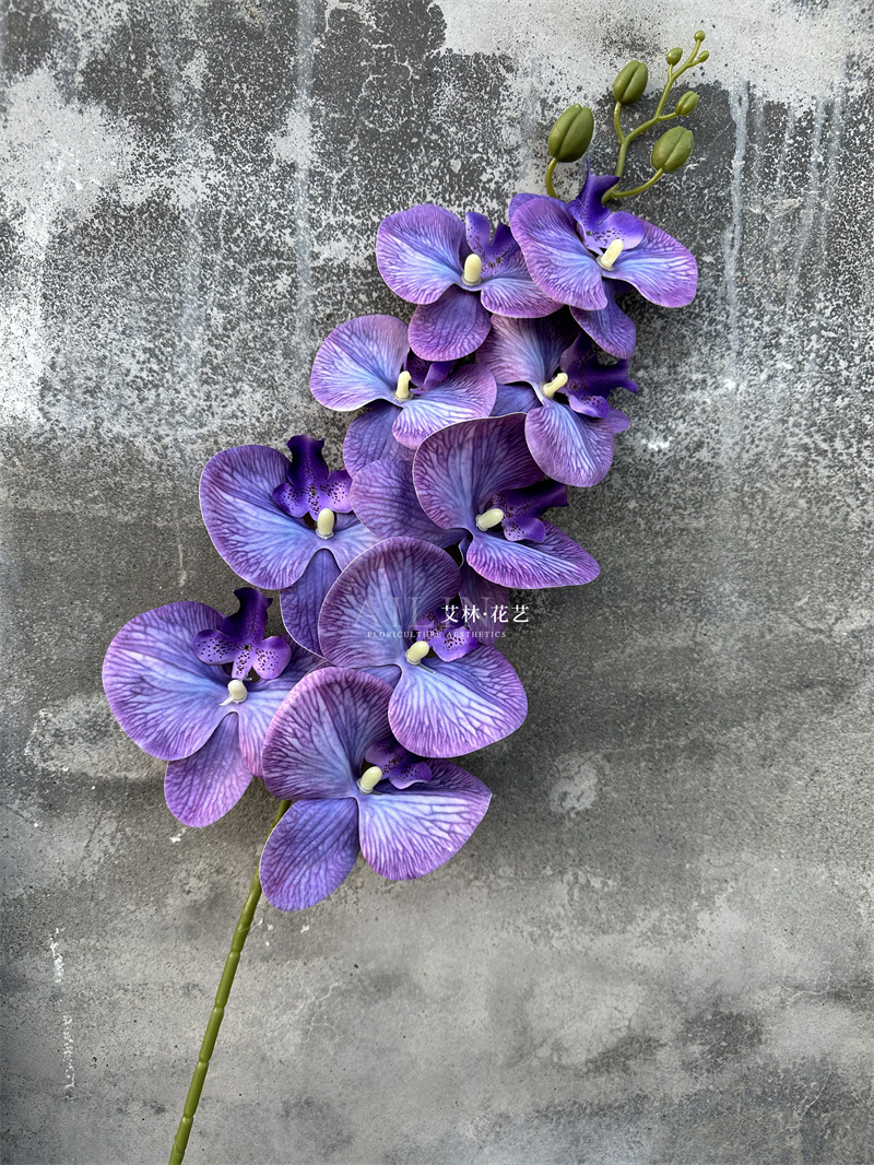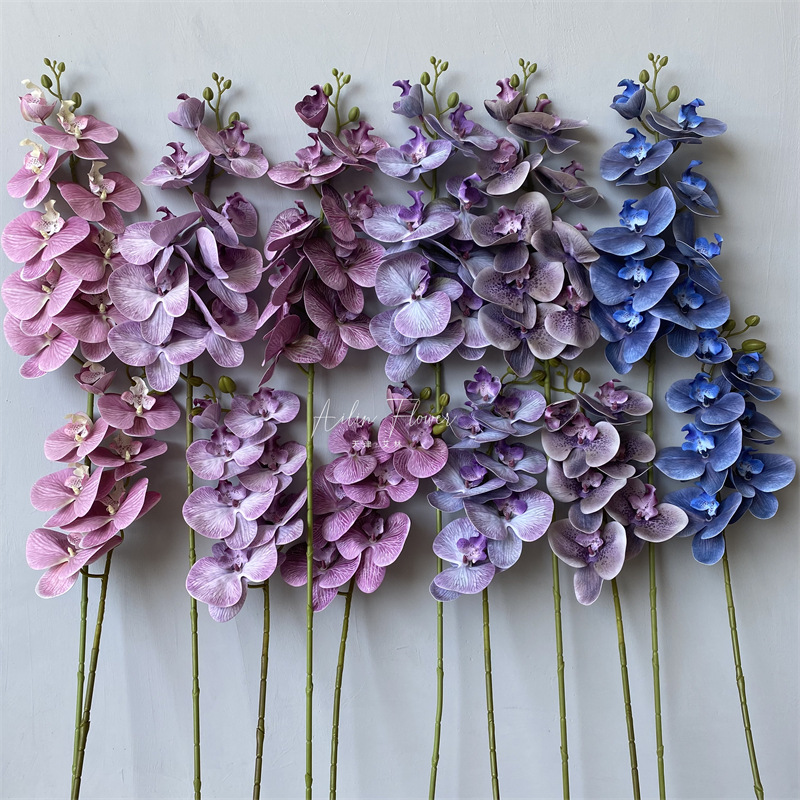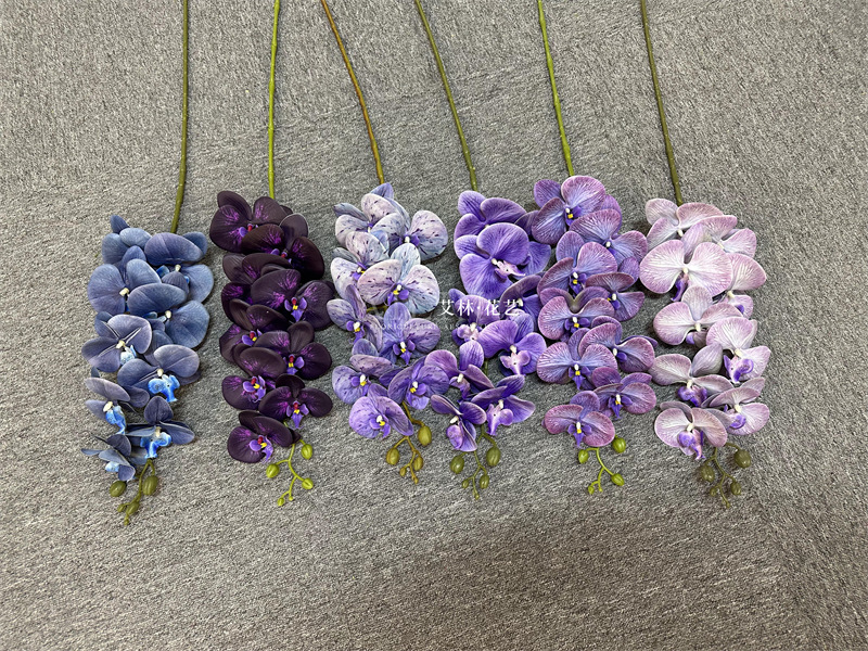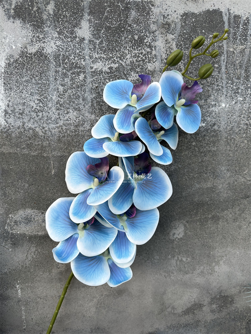 9头3D打印蝴蝶兰 仿真花过胶手感兰花婚庆插花装饰秀场风星际蓝