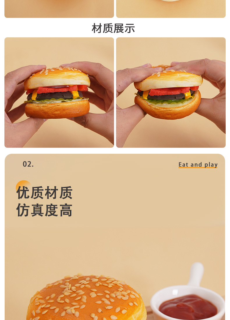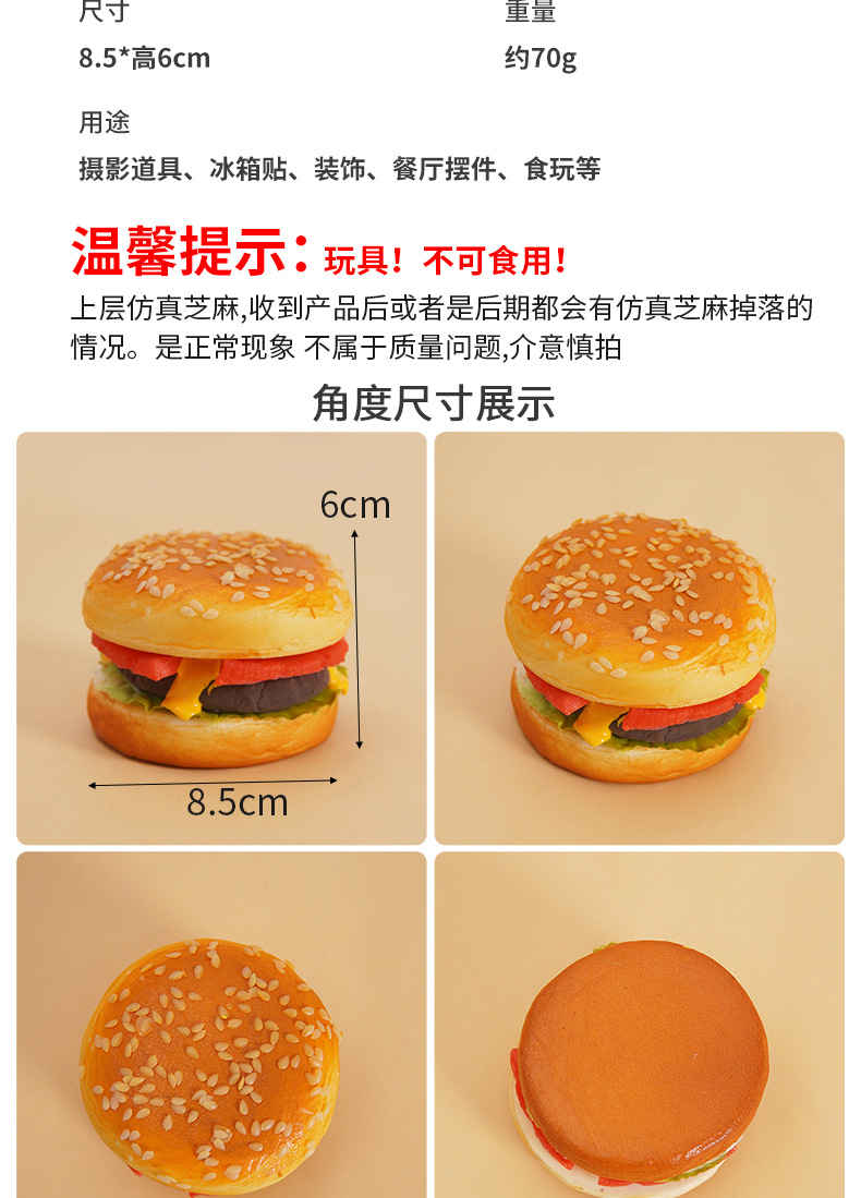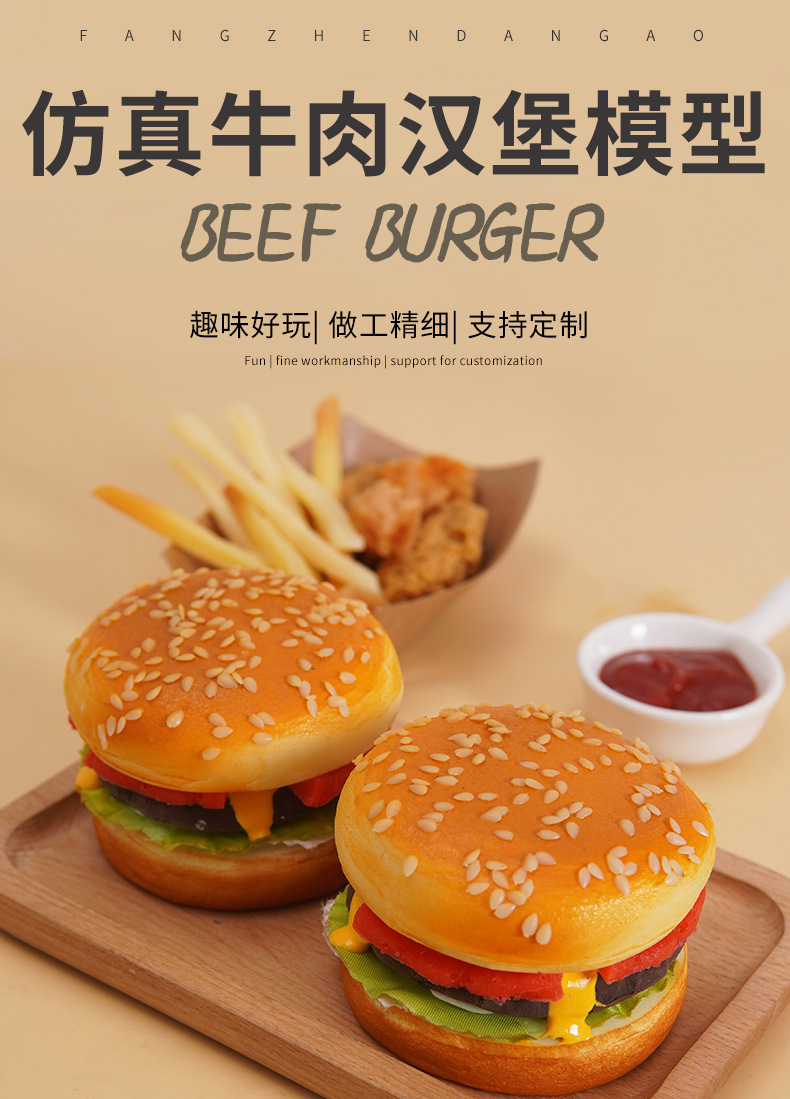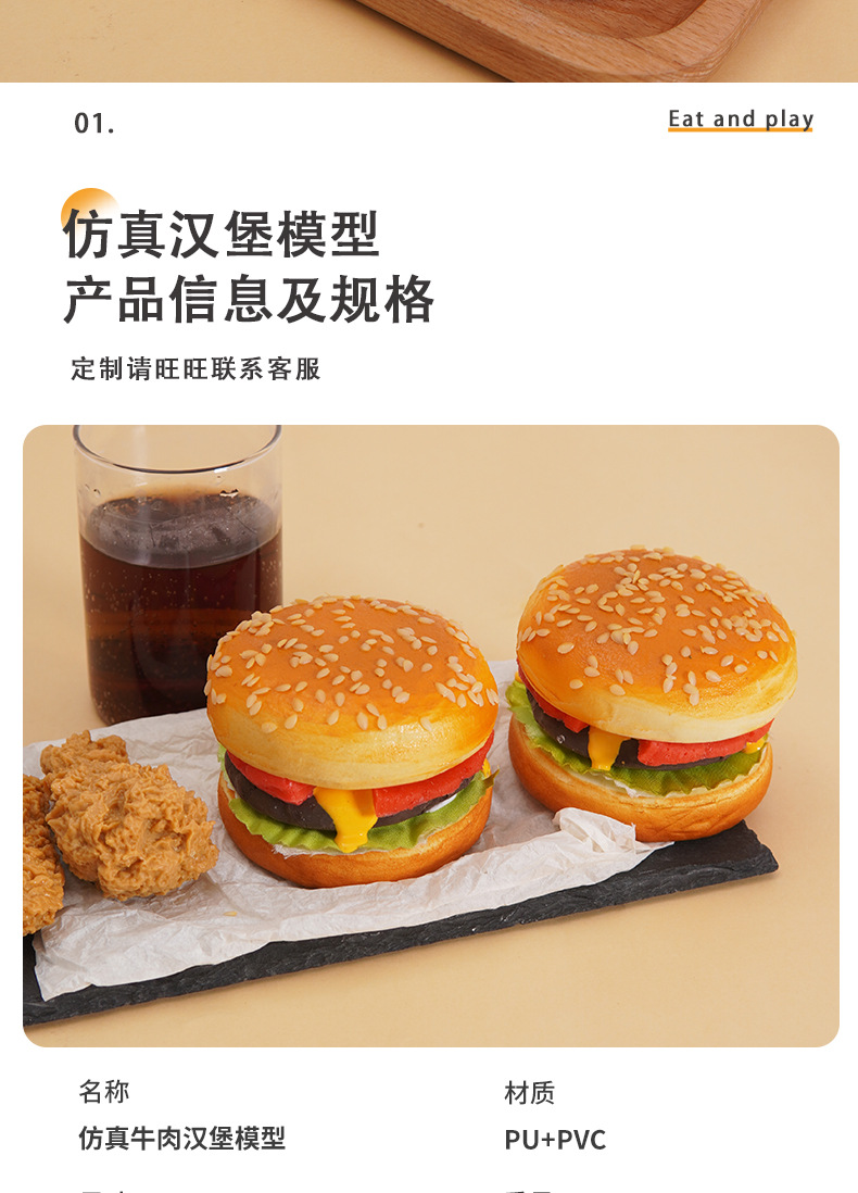 PU仿真汉堡模型仿真食物垃圾食品巨无霸面包假芝麻牛肉汉堡包