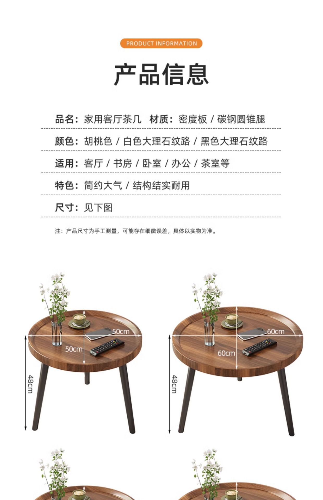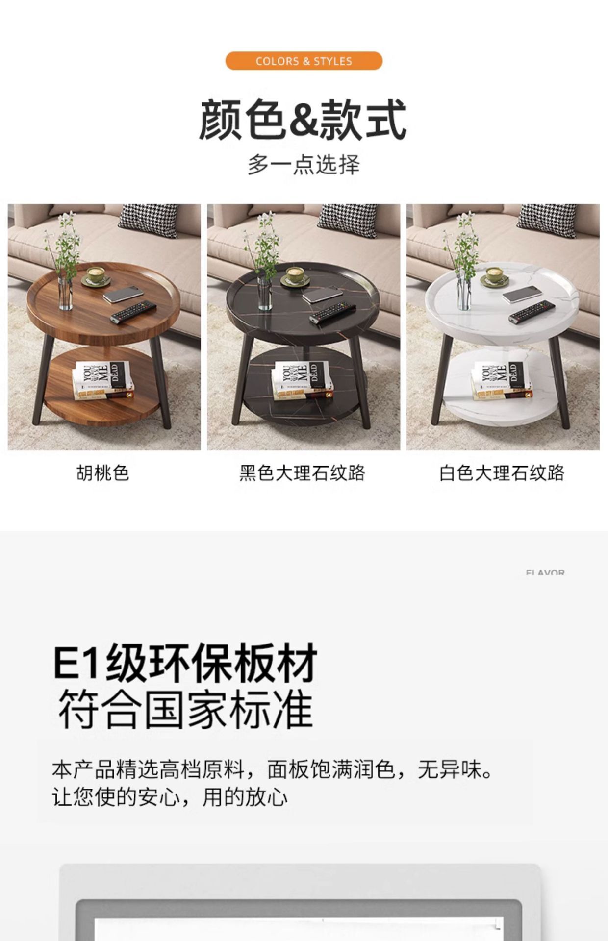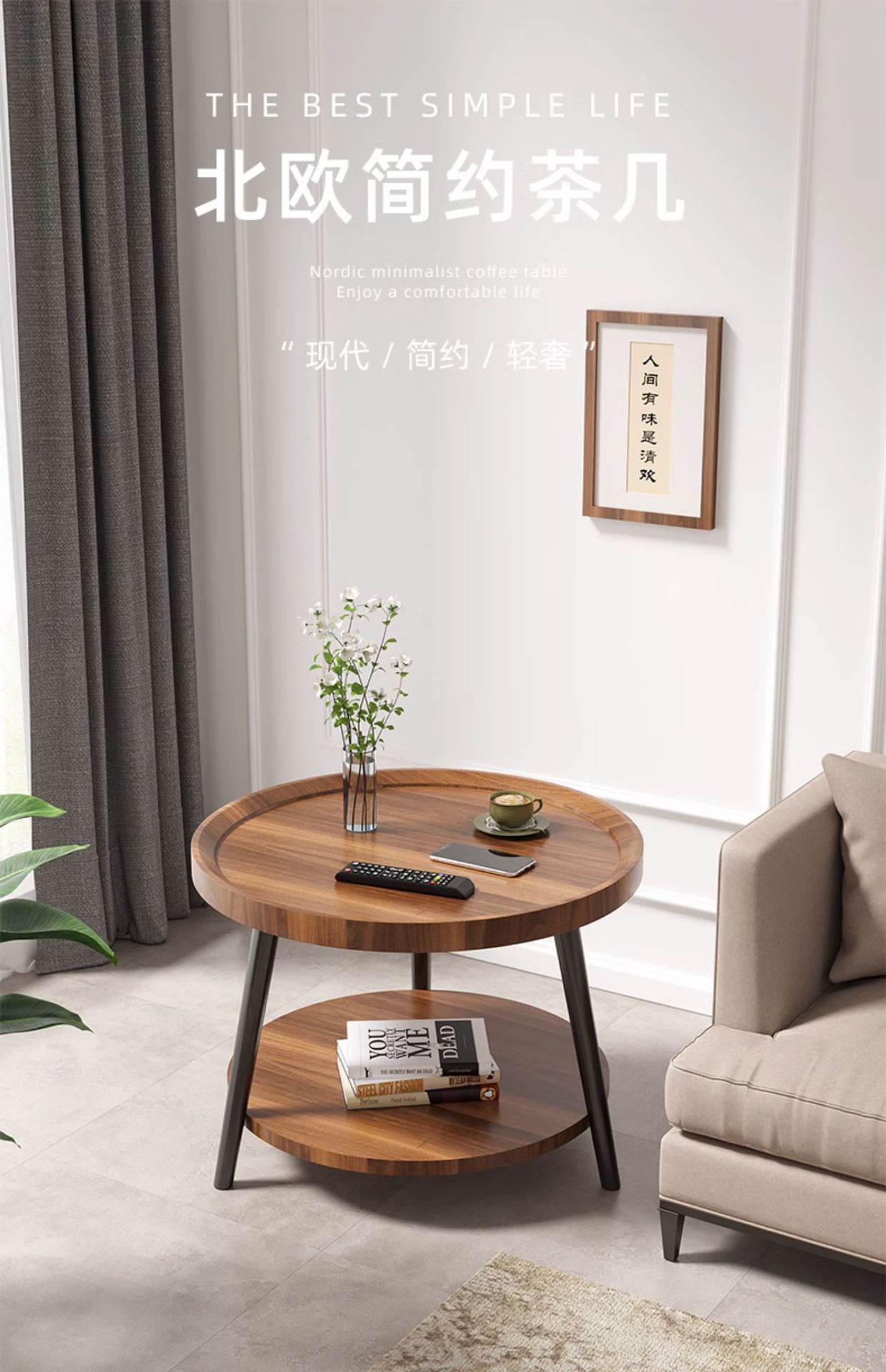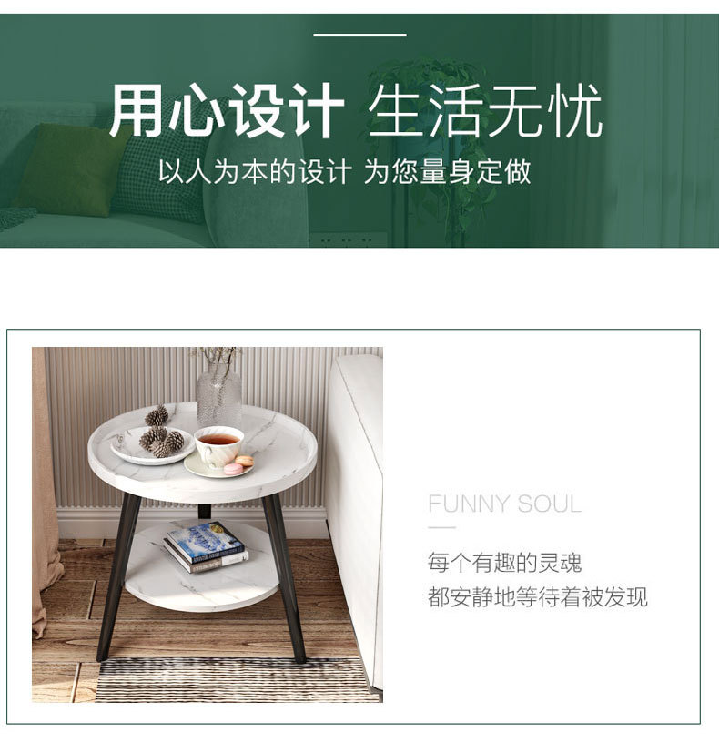 现货北欧极简小户型茶几阳台圆形客厅双层边几民宿床头小圆桌批发