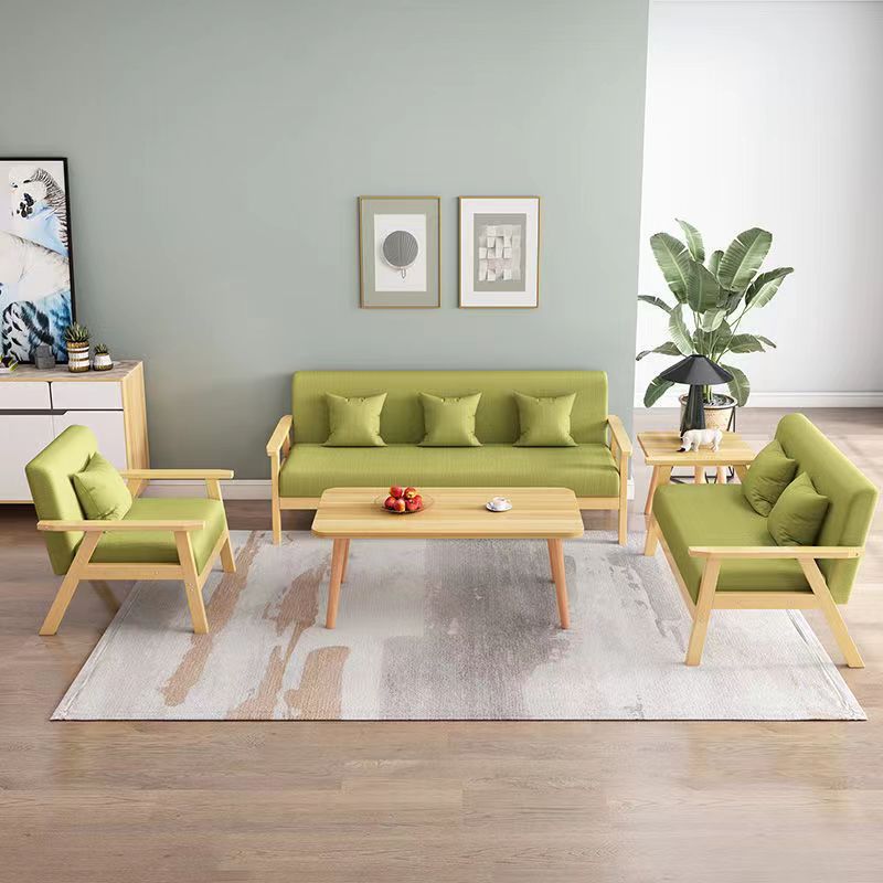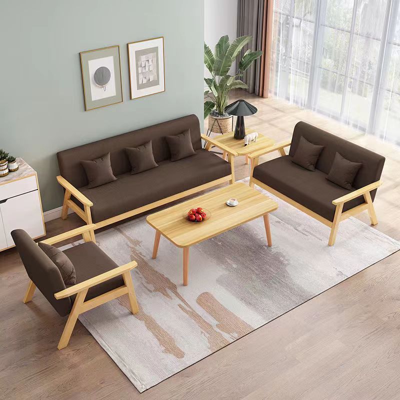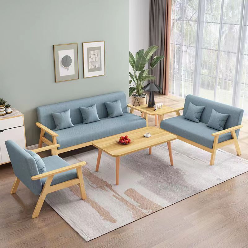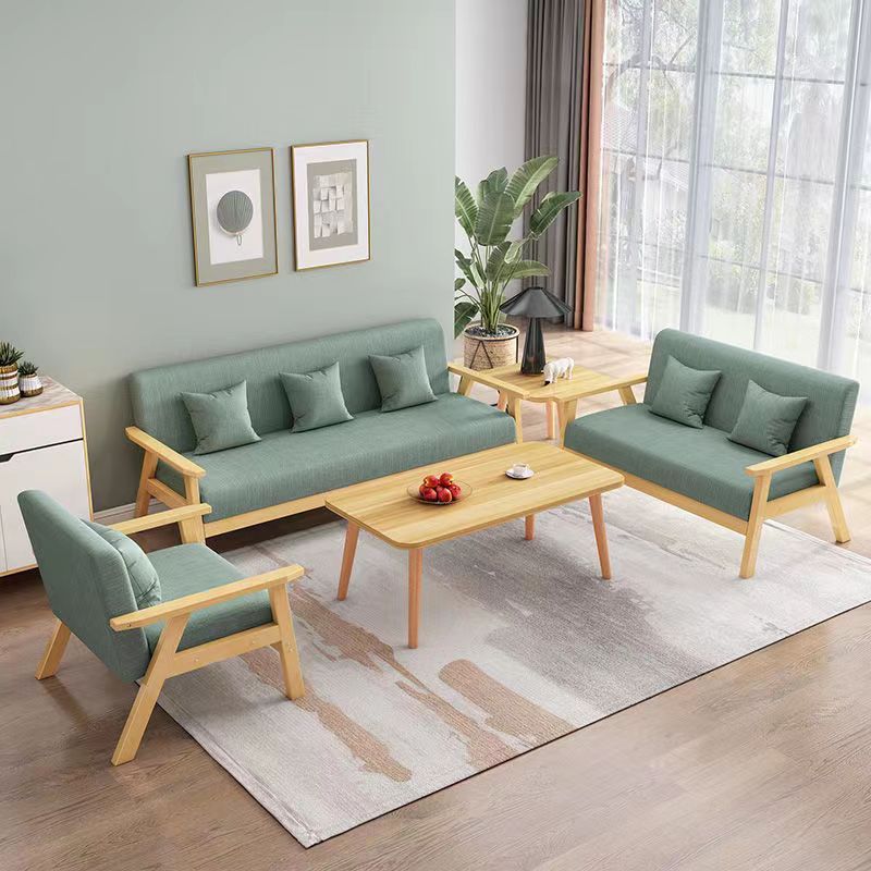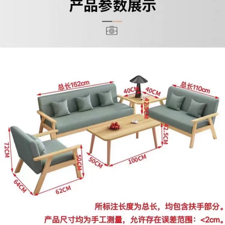 布艺小沙发客厅茶几组合单人双人小户型公寓简易实木三人位沙发椅