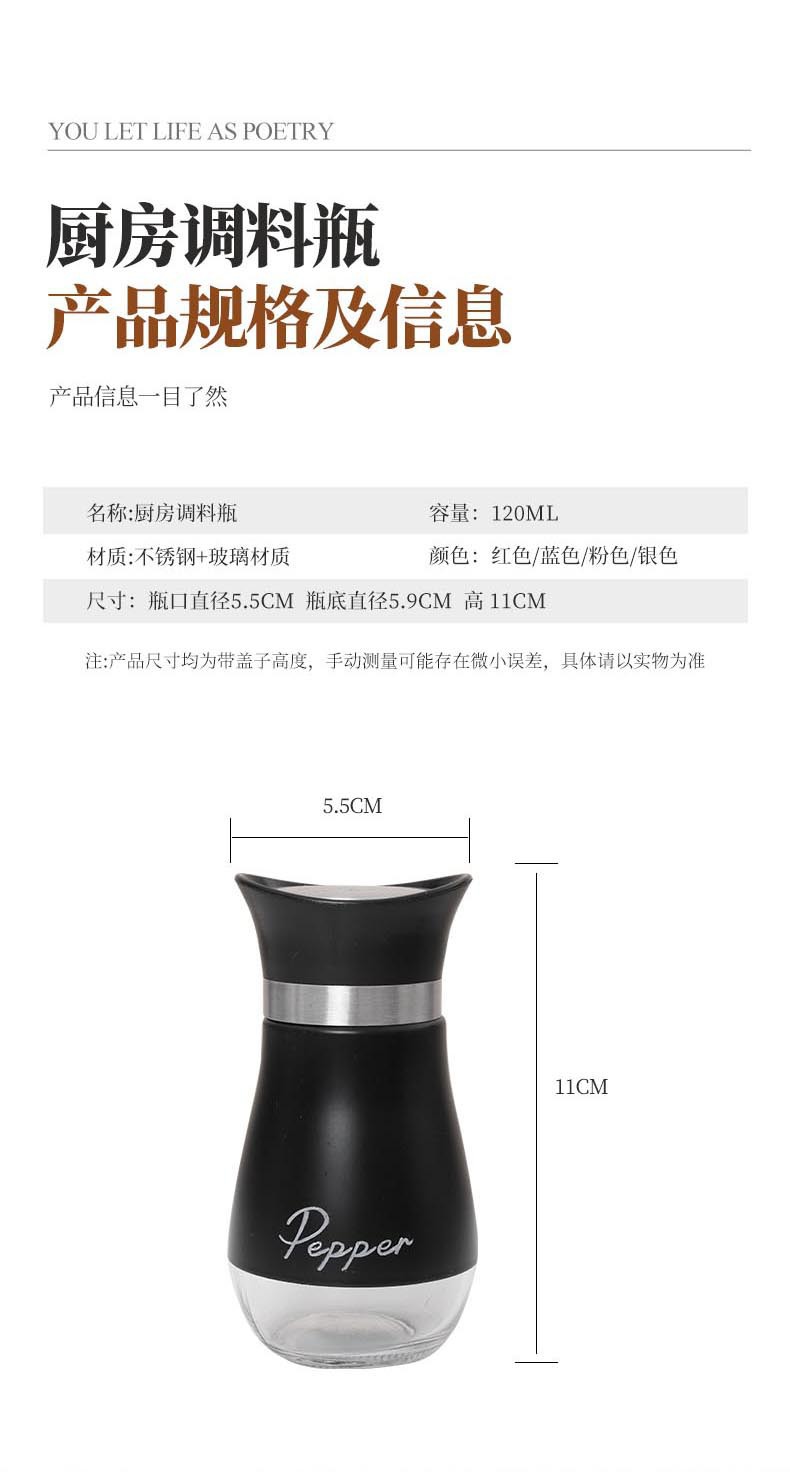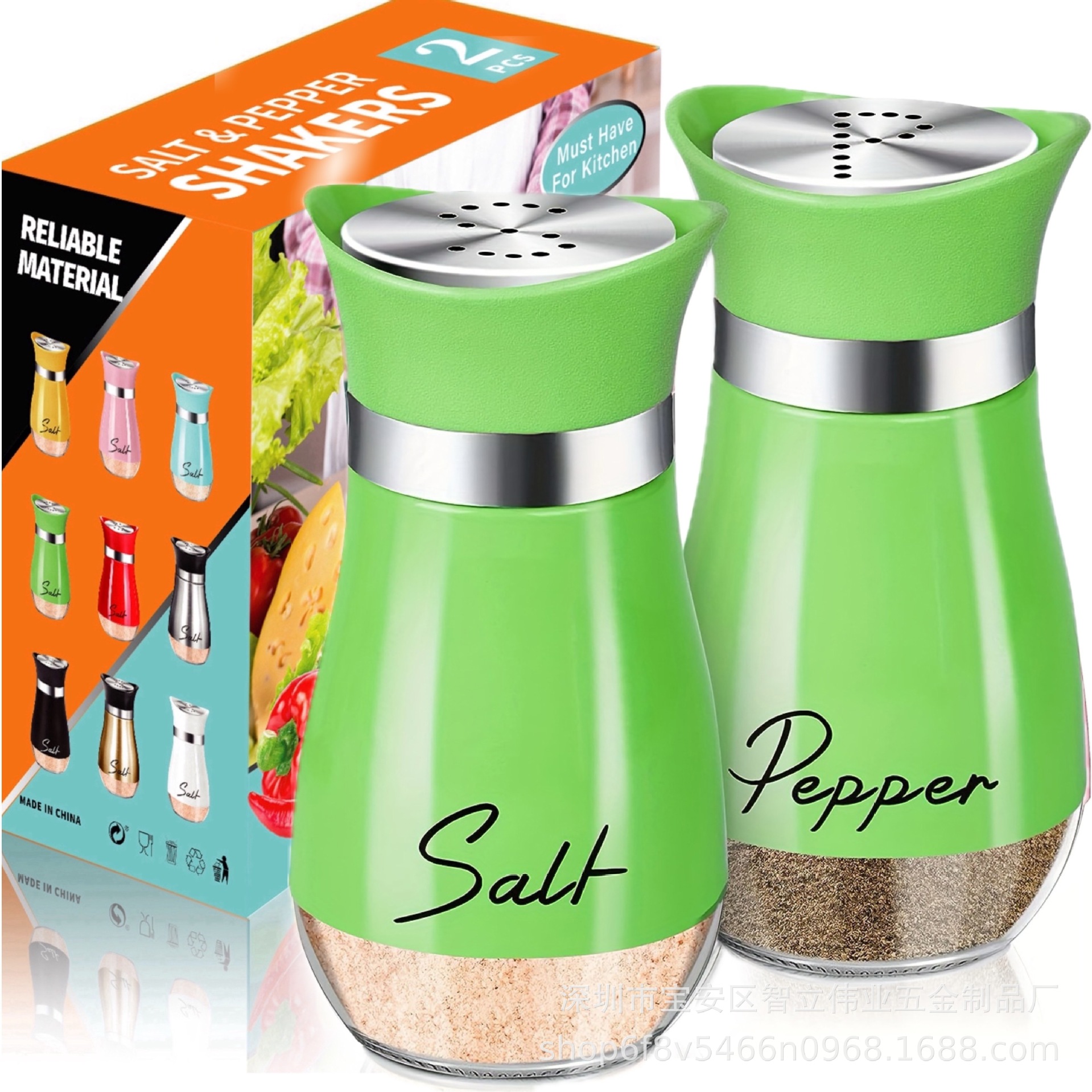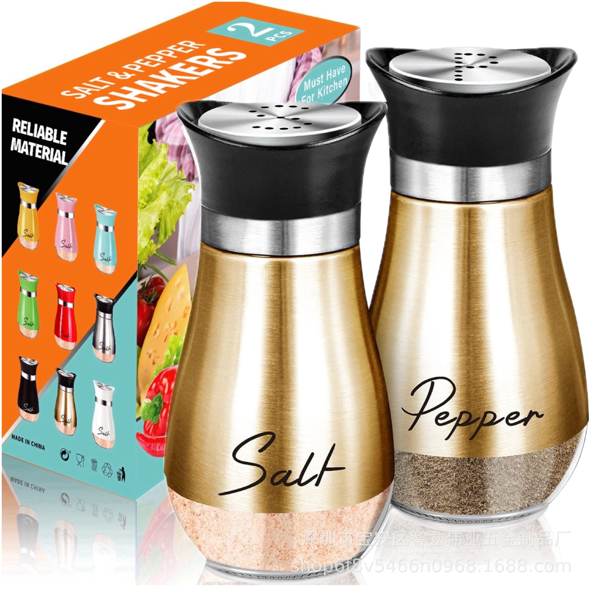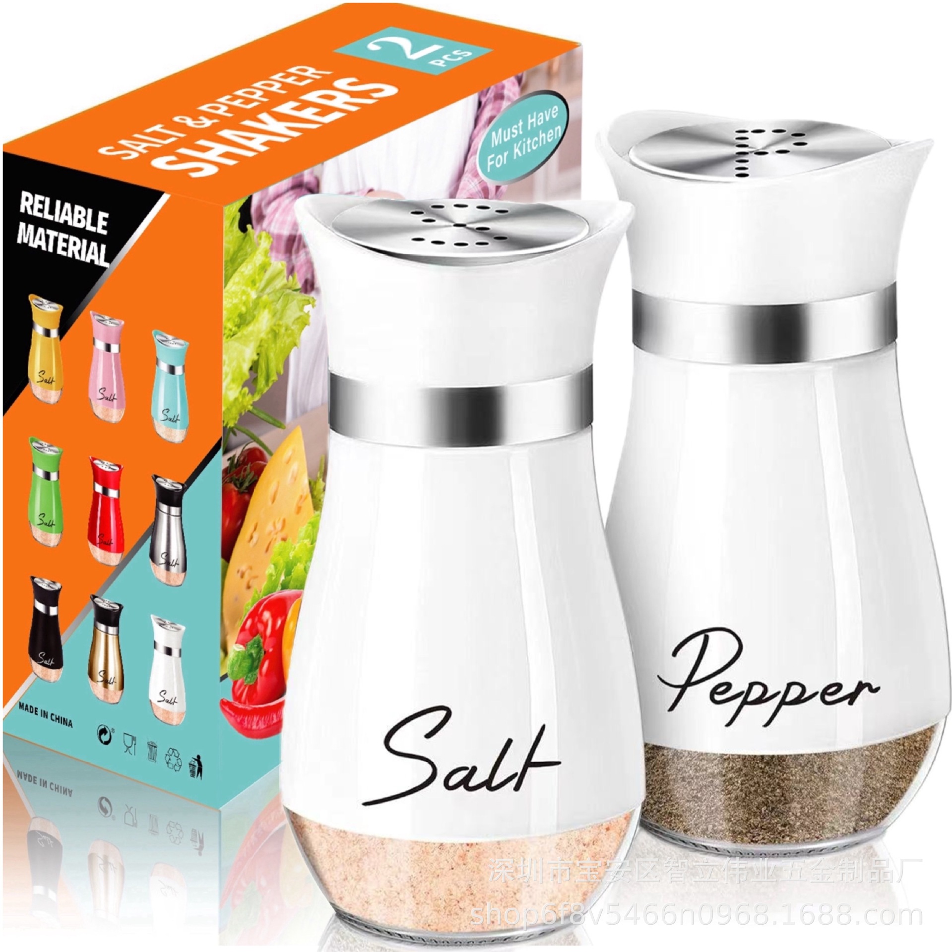 跨境不锈钢调料瓶玻璃控盐瓶盐罐家用厨房计量调料罐烧烤撒料瓶