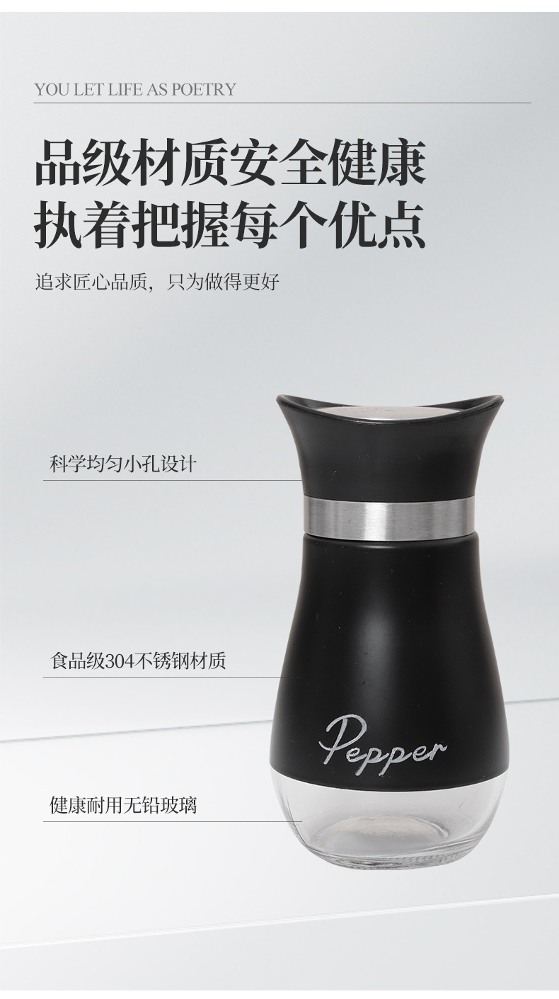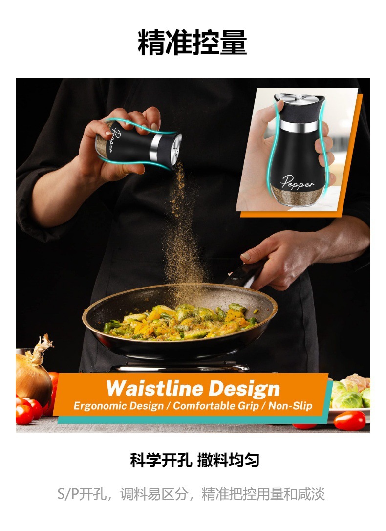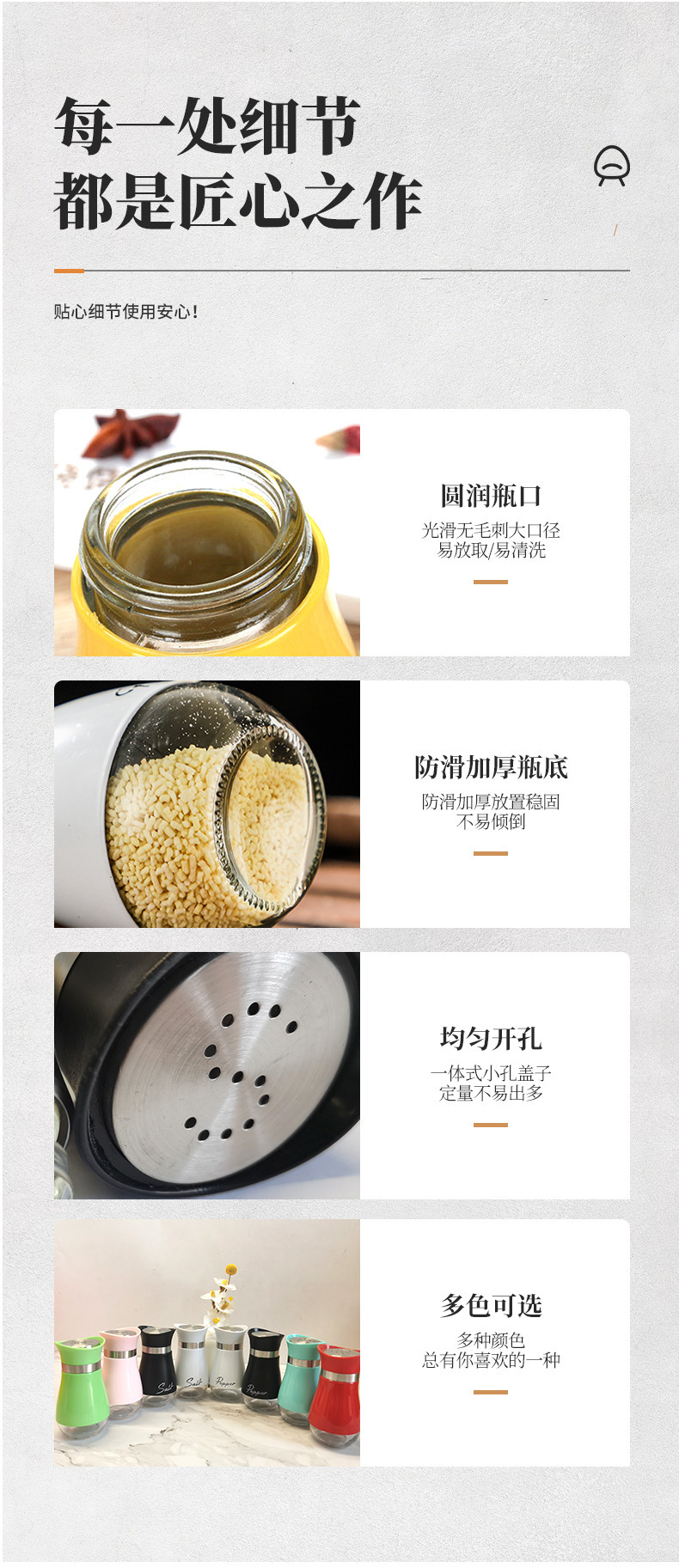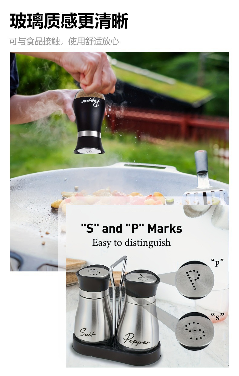 跨境不锈钢调料瓶玻璃控盐瓶盐罐家用厨房计量调料罐烧烤撒料瓶