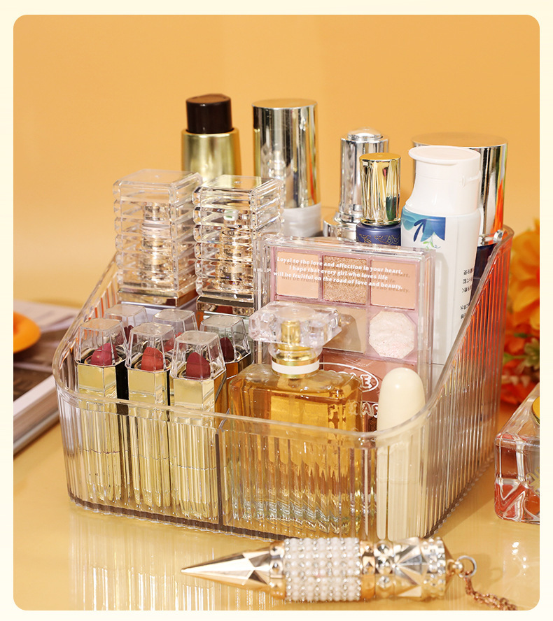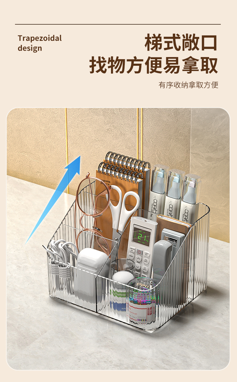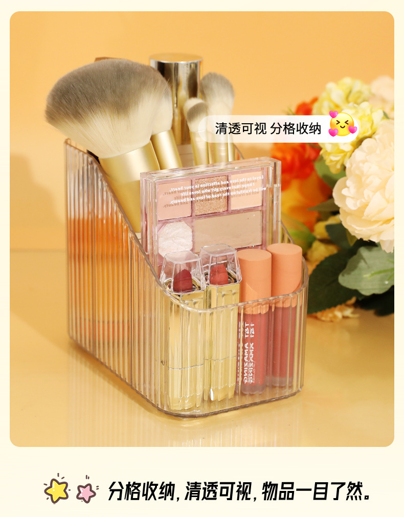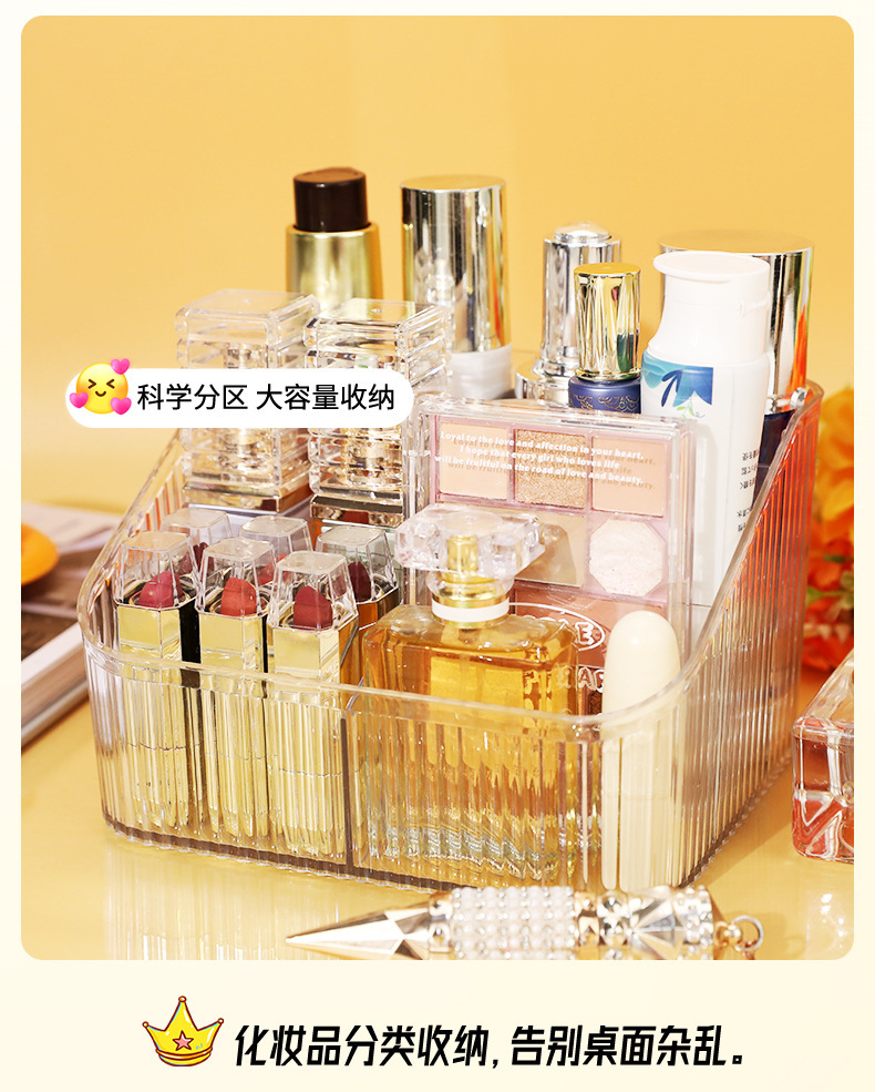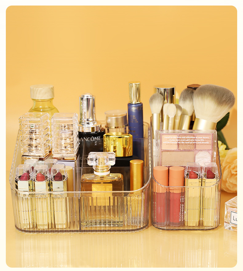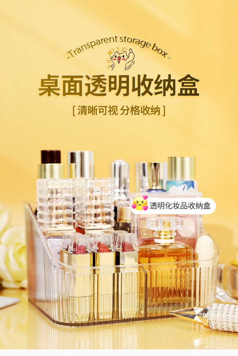 桌上透明化妆品收纳盒高级感桌面轻奢亚克力梳妆台收纳盒笔筒办公