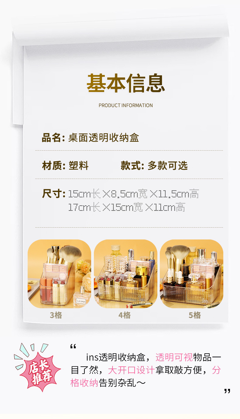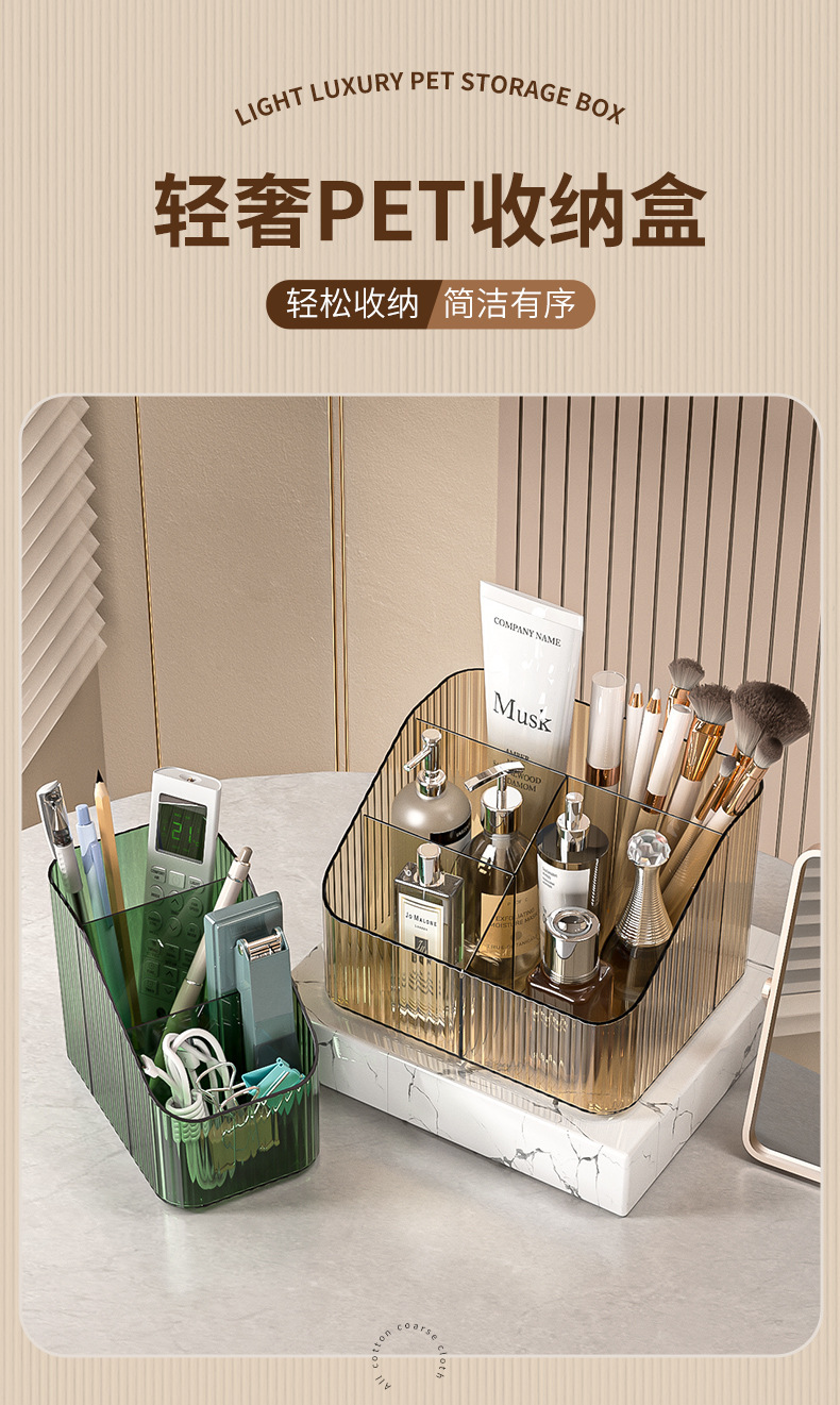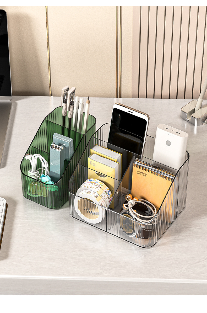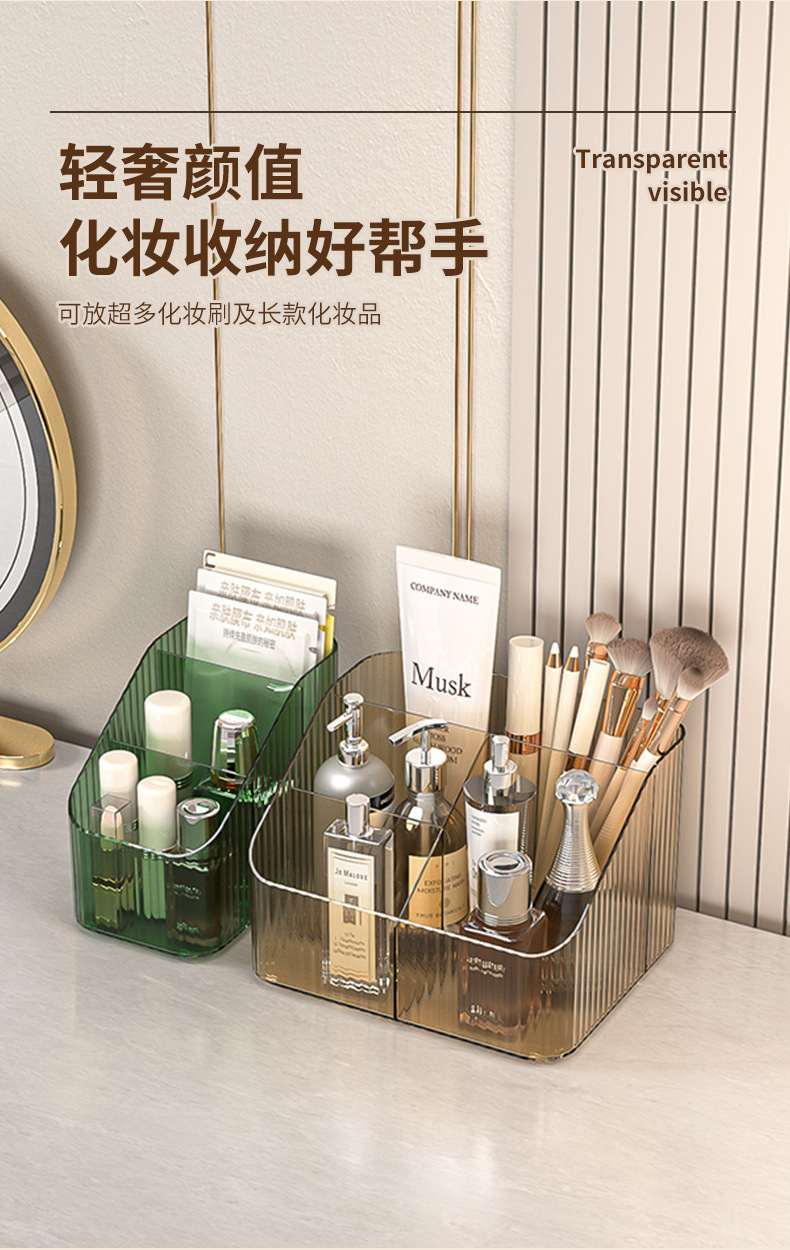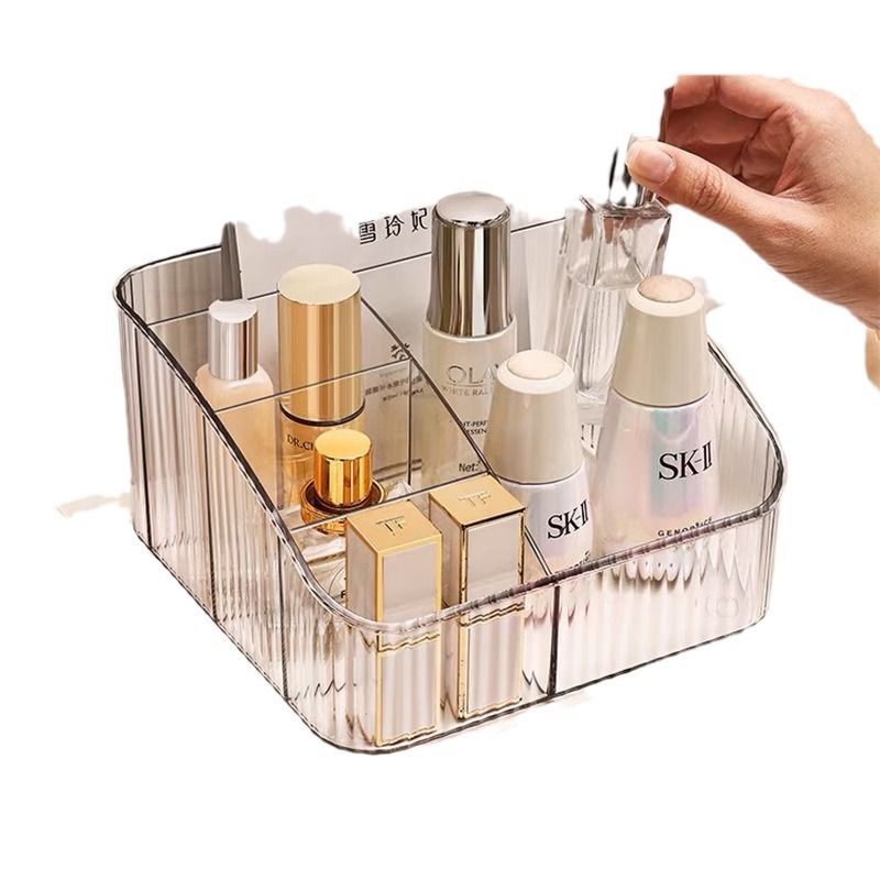 桌上透明化妆品收纳盒高级感桌面轻奢亚克力梳妆台收纳盒笔筒办公