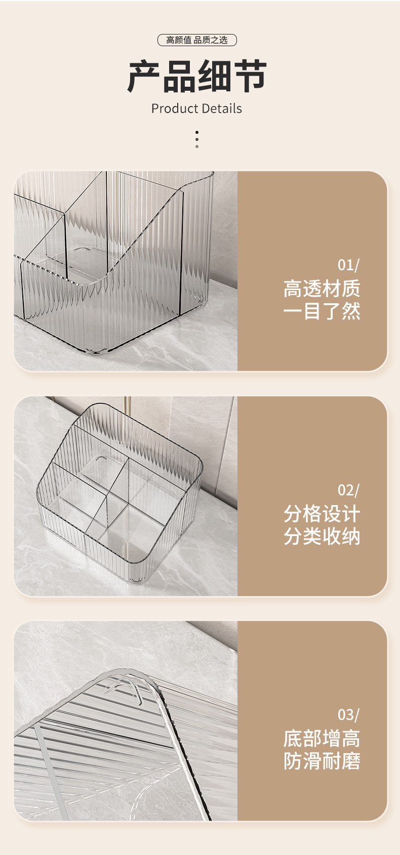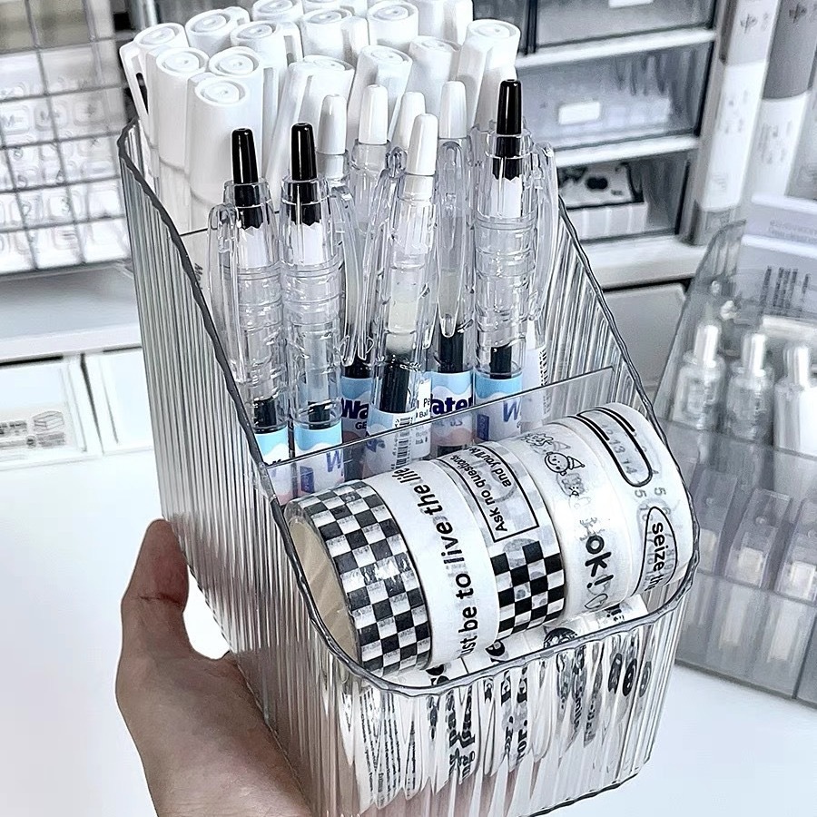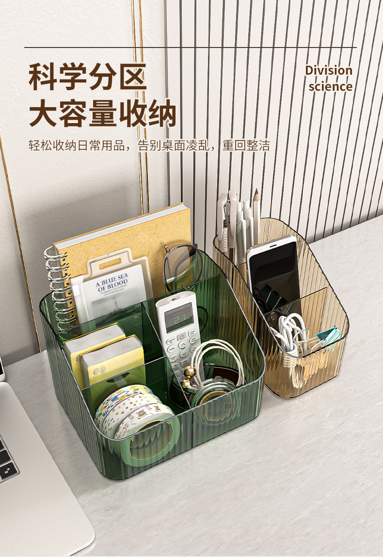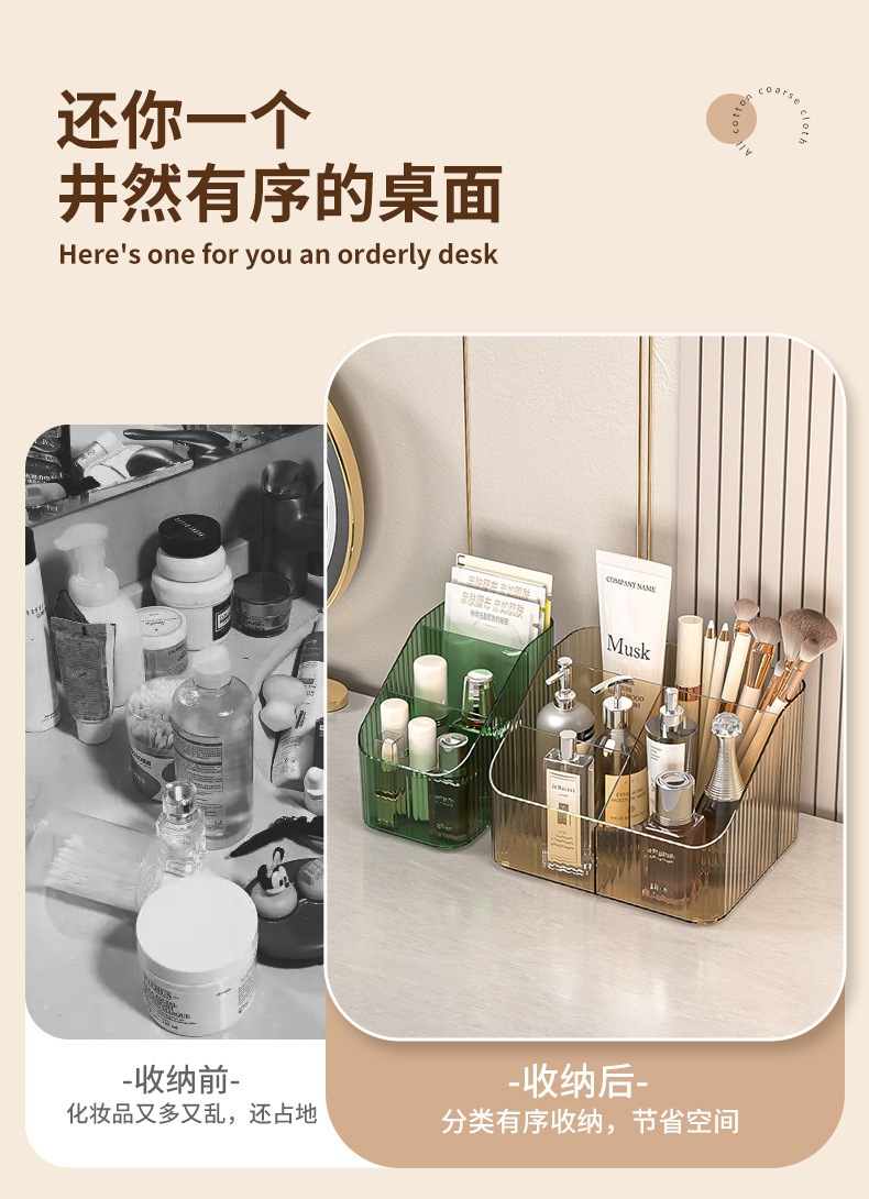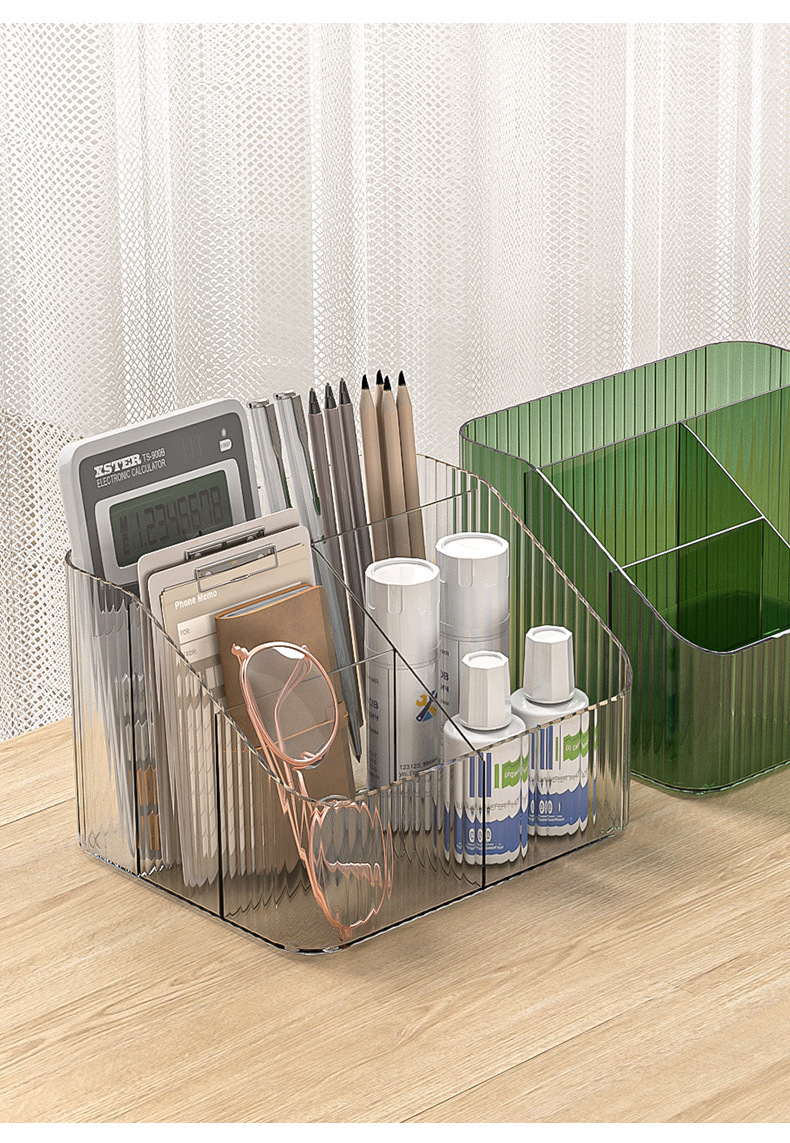 桌上透明化妆品收纳盒高级感桌面轻奢亚克力梳妆台收纳盒笔筒办公