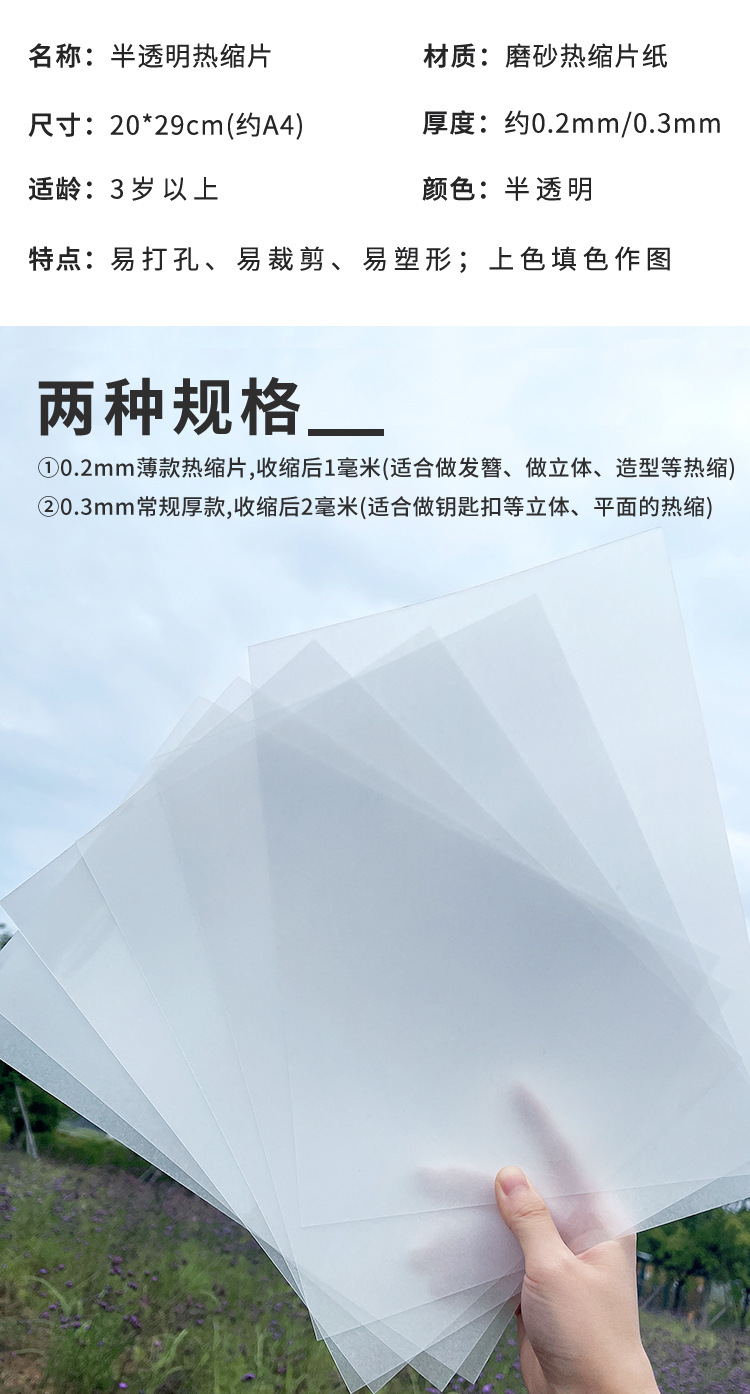 透明热缩片手工diy材料已打磨0.2/0.3mm半透明纸立体发簪花挂件