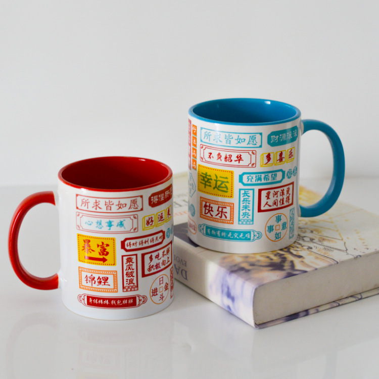 简约软木底马克杯印制水杯广告陶瓷杯开业活动礼品杯子色釉咖啡杯