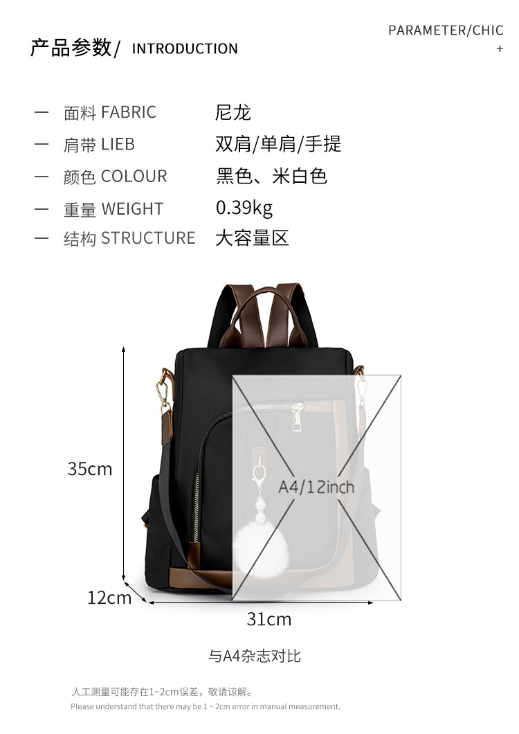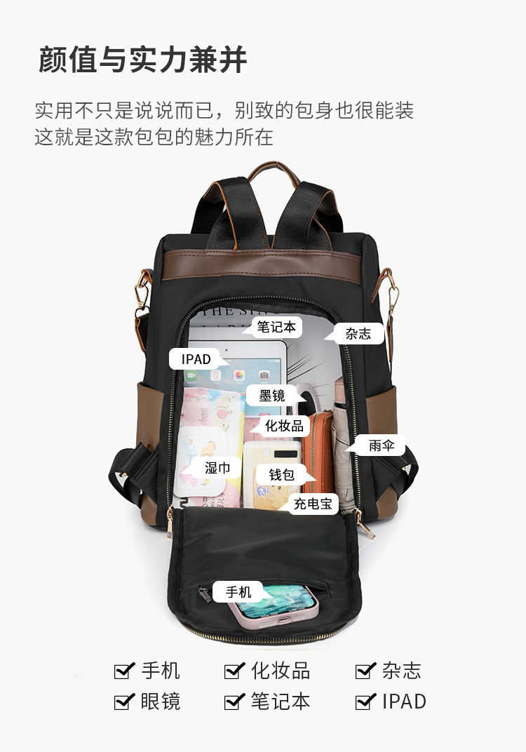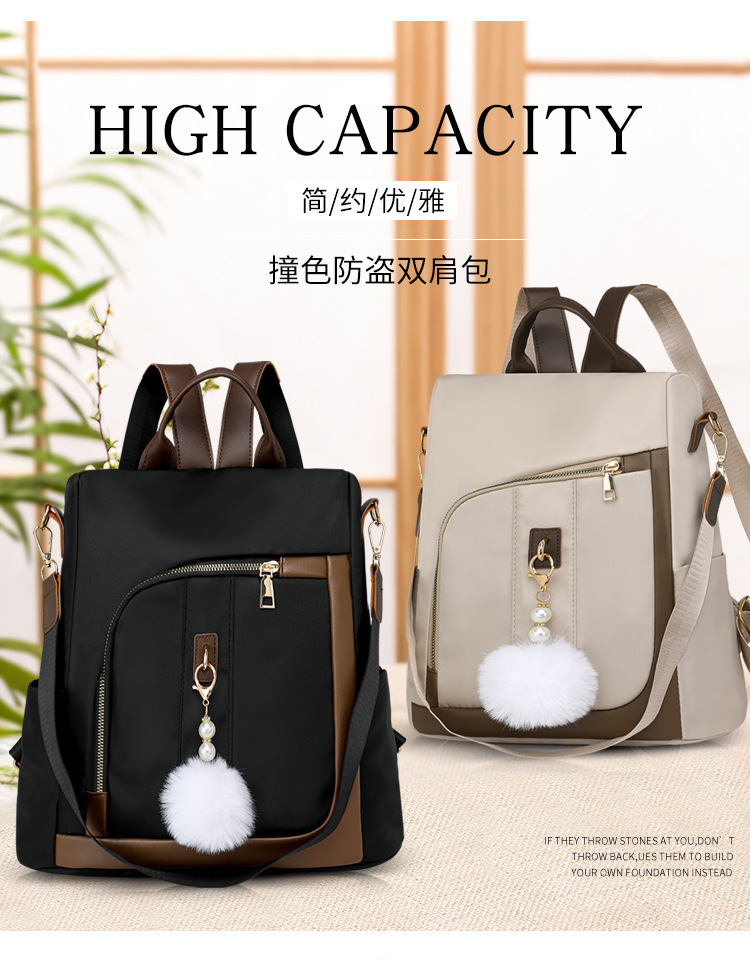 双肩包女士2024新款简约撞色通勤休闲背包女士双肩背包