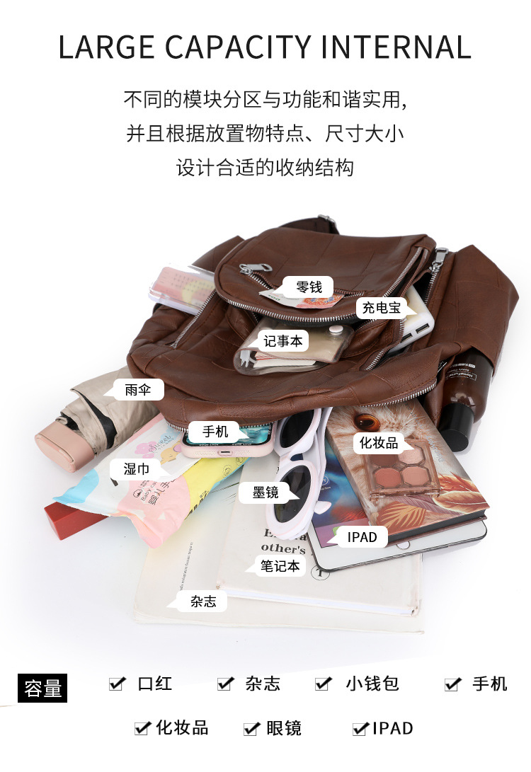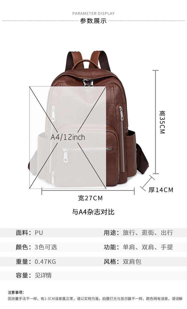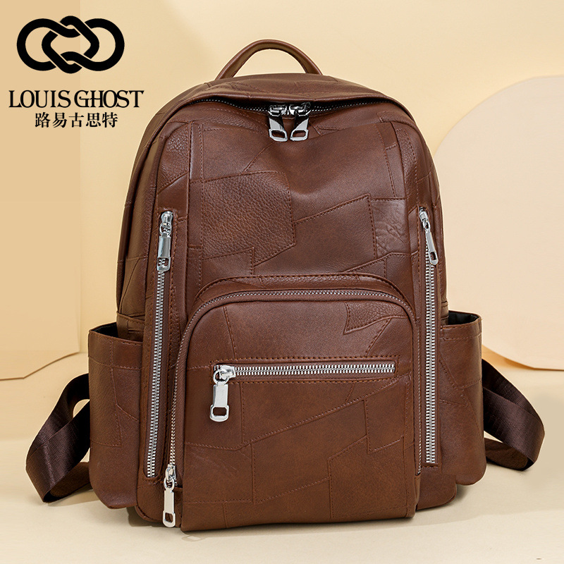 双肩包女士2024新款简约潮背包包软皮休闲时尚旅行书包