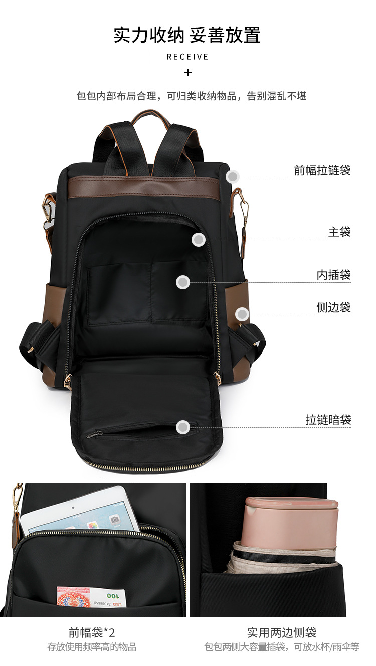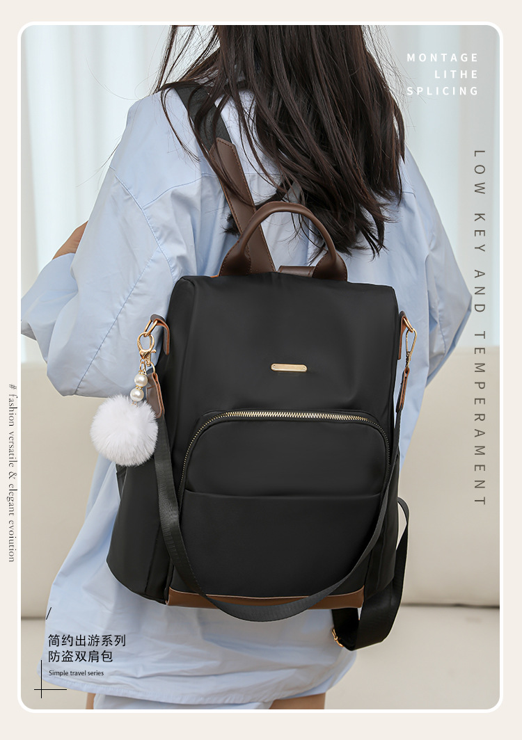批发双肩包女新款拼色牛津布户外时尚休闲双肩背包
