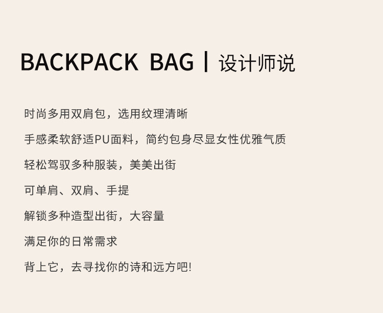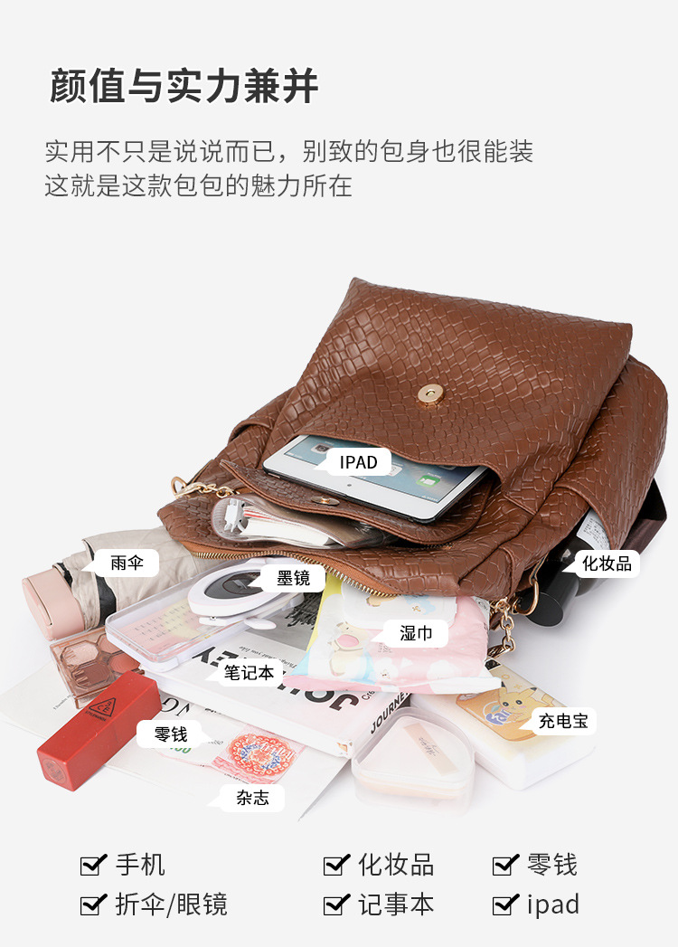 双背新款时尚PU女士双肩包户外旅行包新潮休闲背包批发