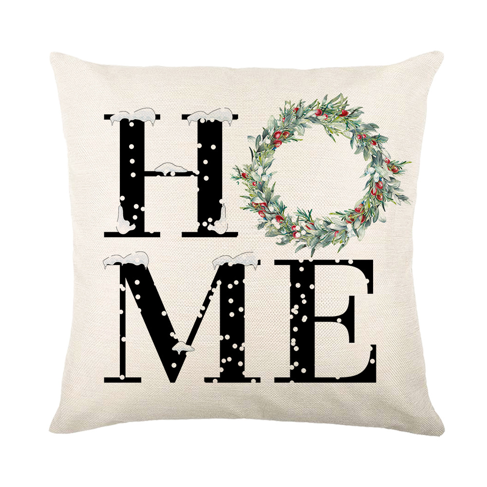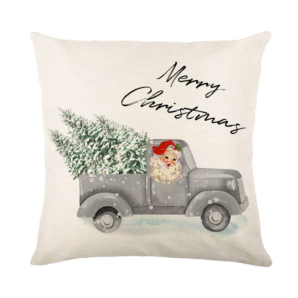 亚马逊跨境新款圣诞抱枕套亚麻印花客厅沙发靠垫套卧室床头靠枕套