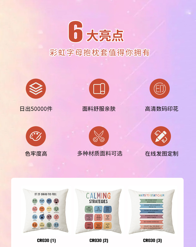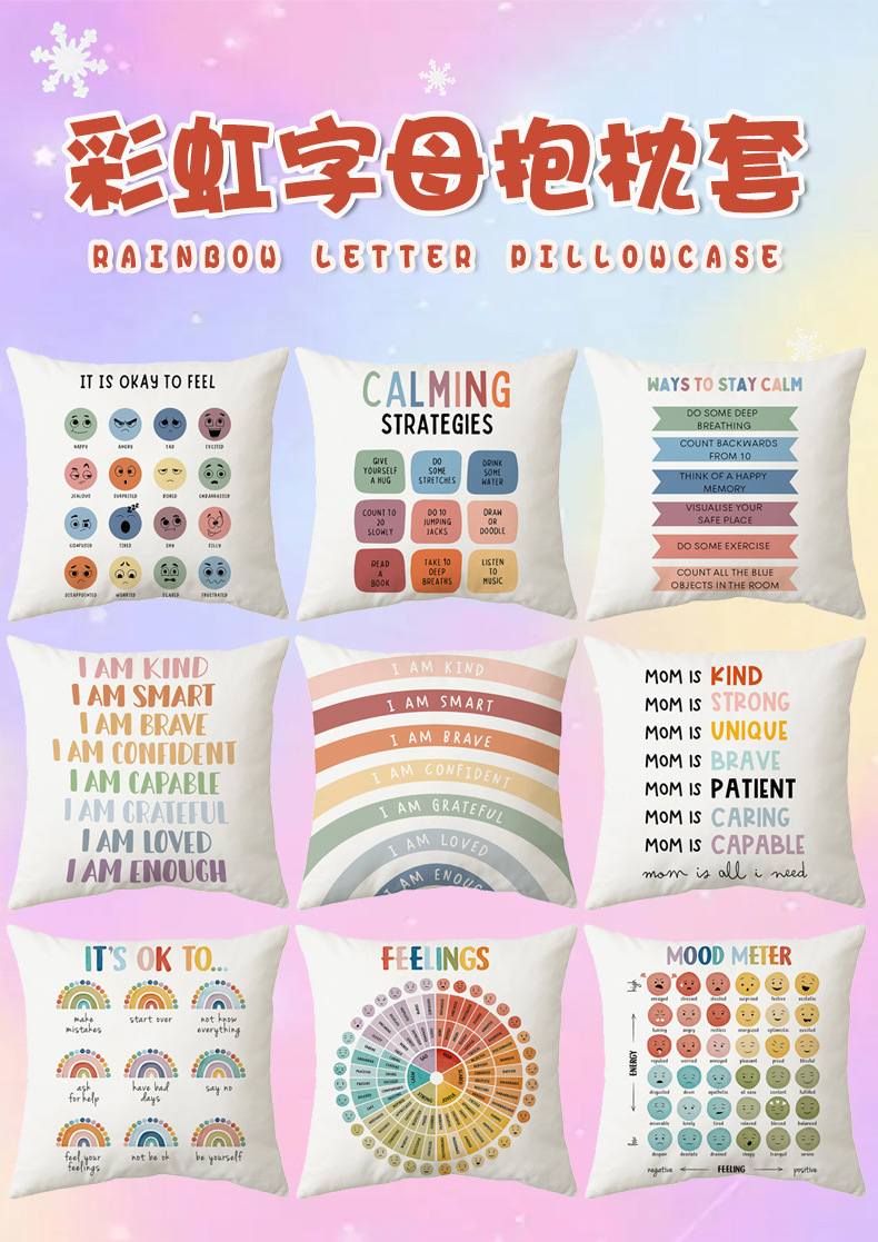 temu跨境彩虹抱枕套短毛绒字母印花居家布艺沙发靠枕套节日靠垫套