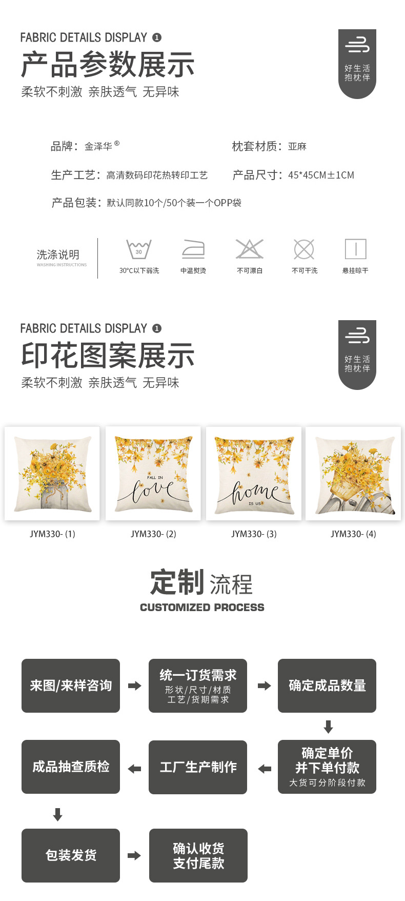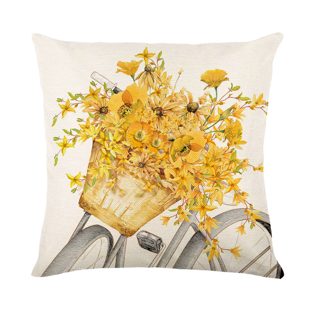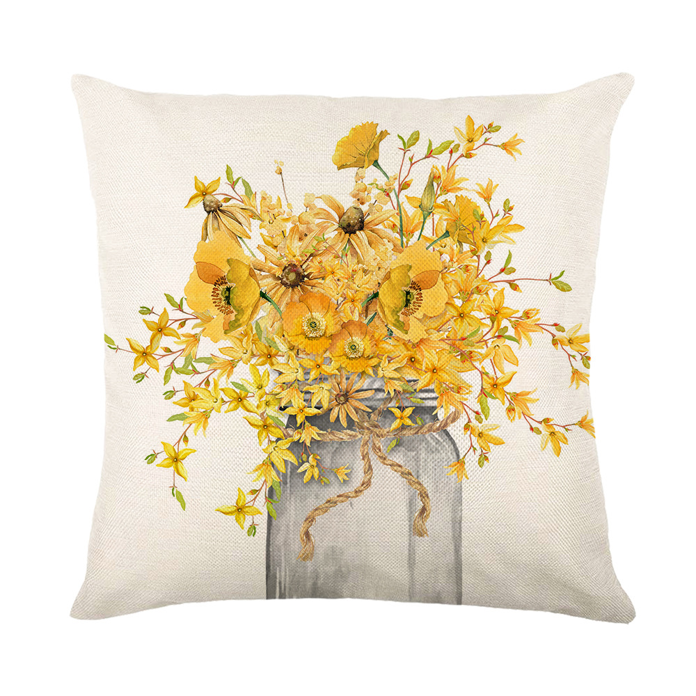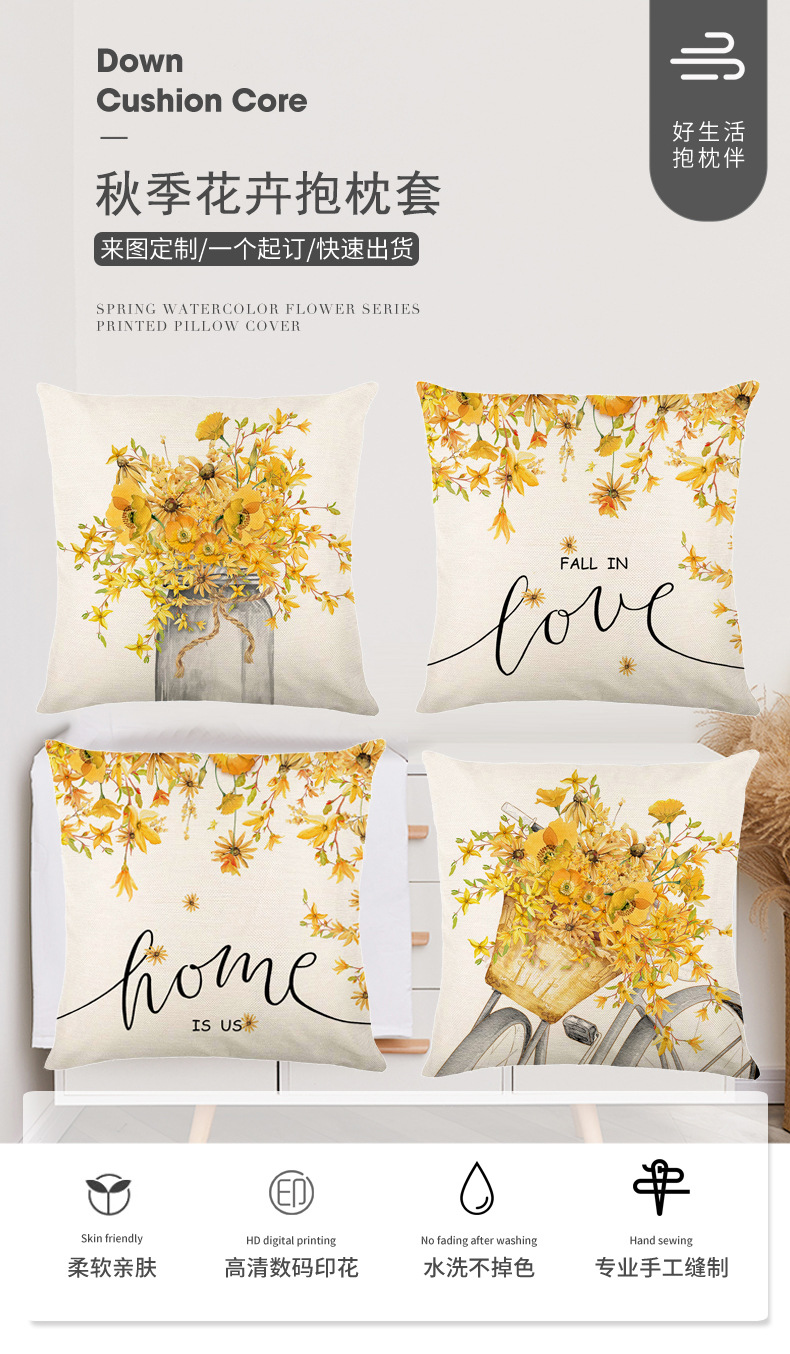 秋季植物花卉抱枕套亚麻印花跨境家居装饰客厅沙发靠垫套卧室靠枕