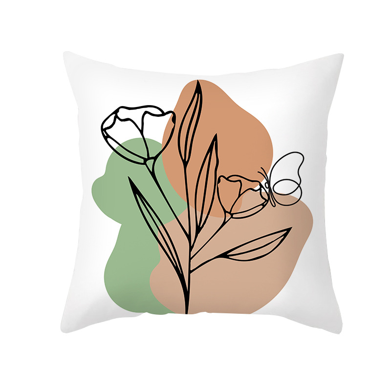 2024新款莫兰迪风格印花抱枕套跨境桃皮绒居家客厅卧室靠枕套靠垫