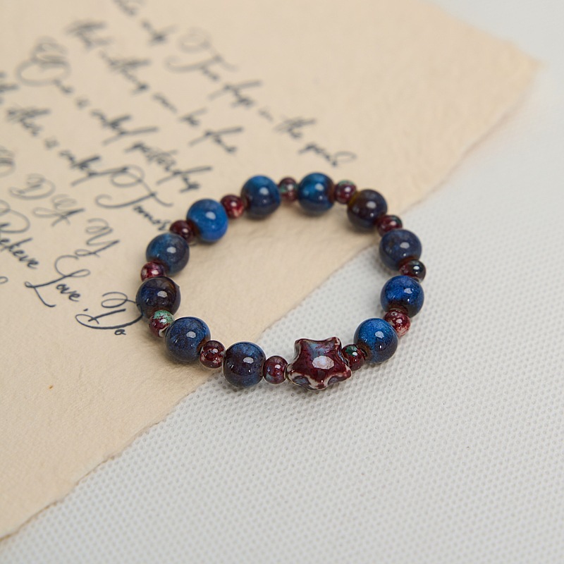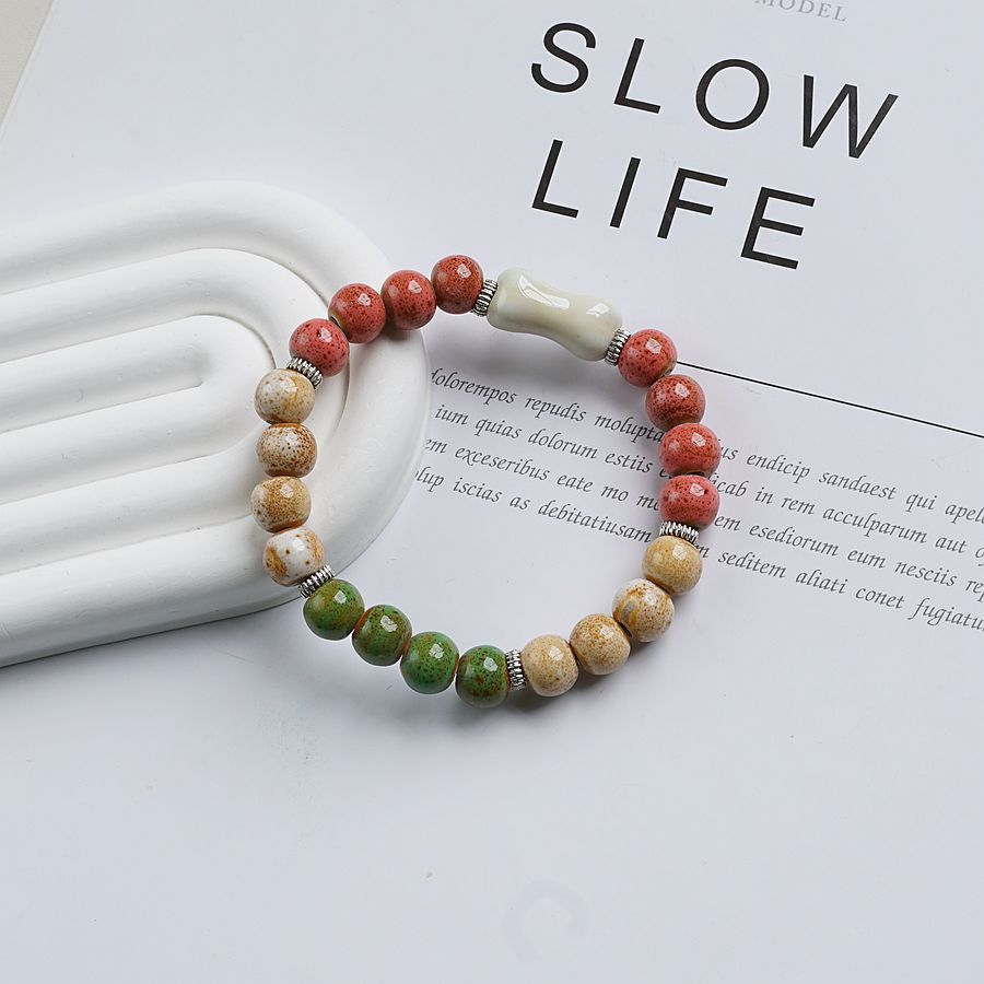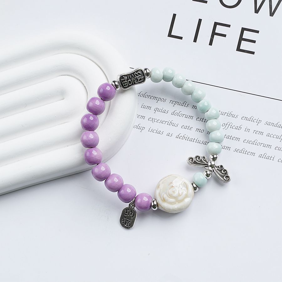 新款景德镇陶瓷手链饰品女百搭高级感编织花朵手串新中式手饰批发