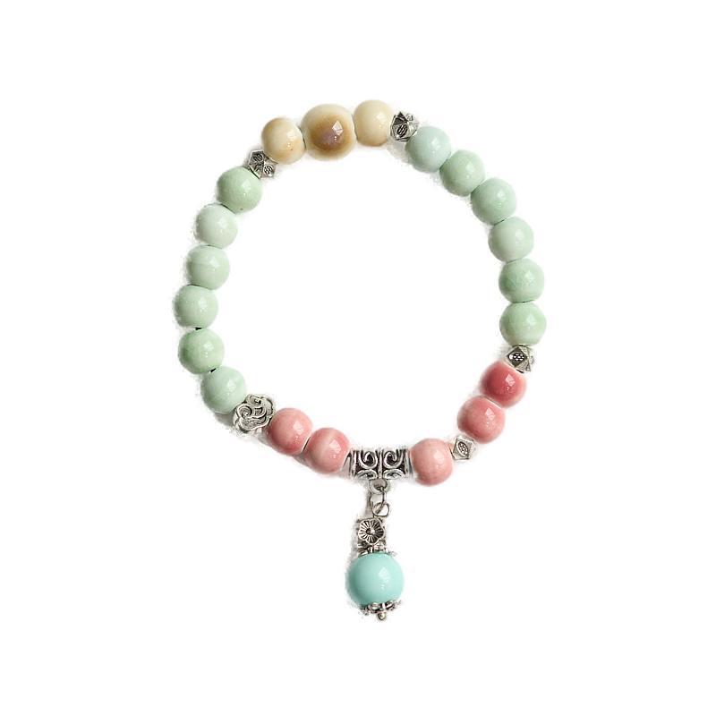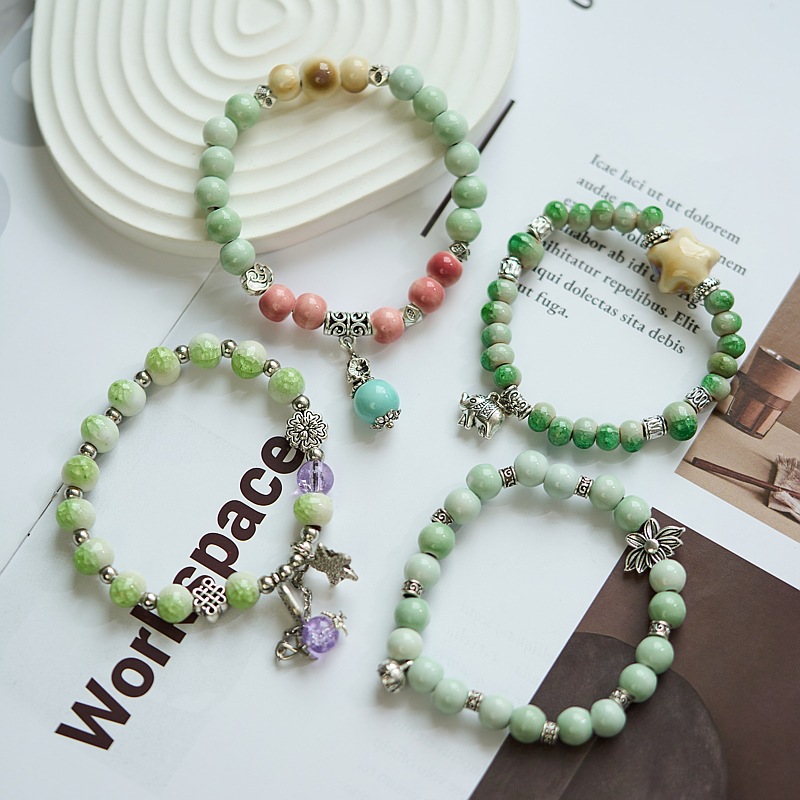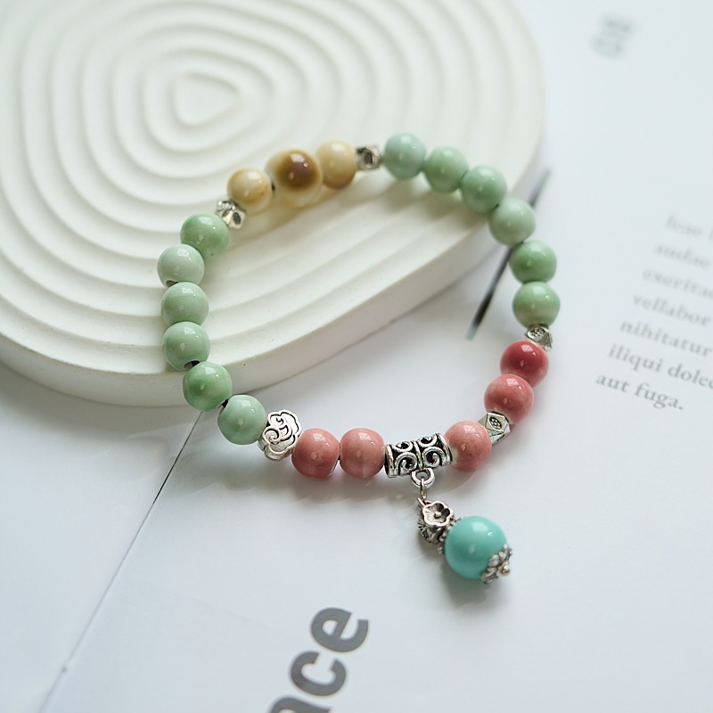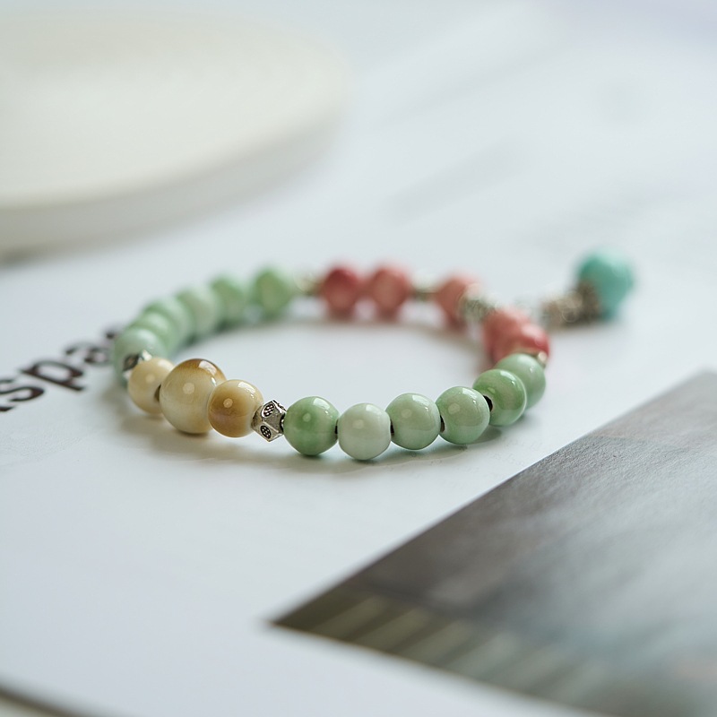 薄荷曼巴色景德镇陶瓷手链新中式简约小清新古风串珠文艺国风饰品