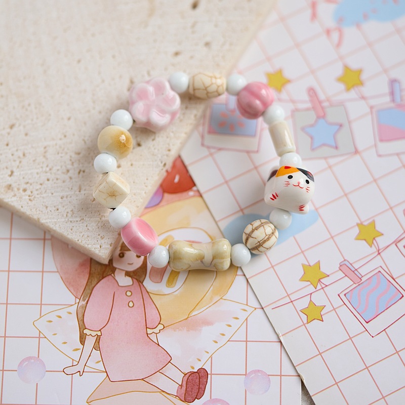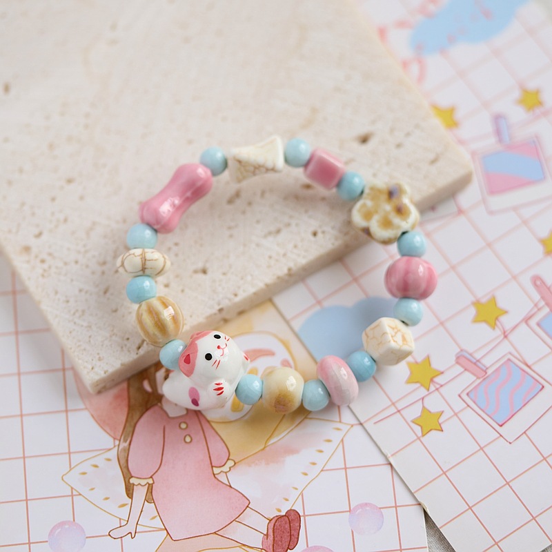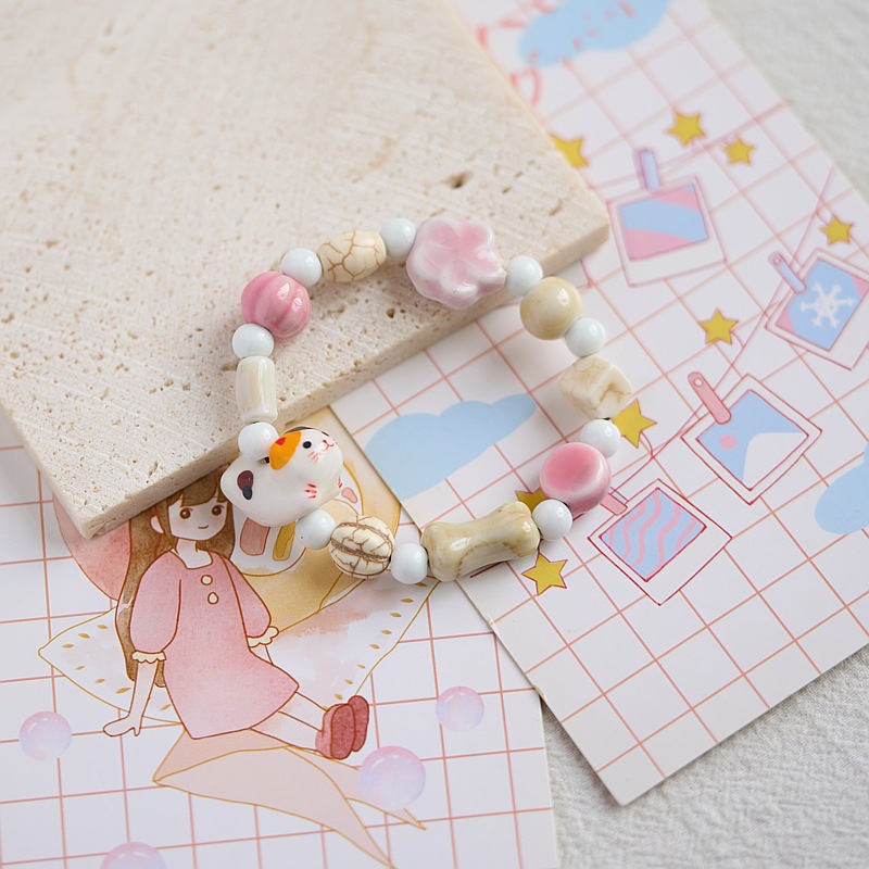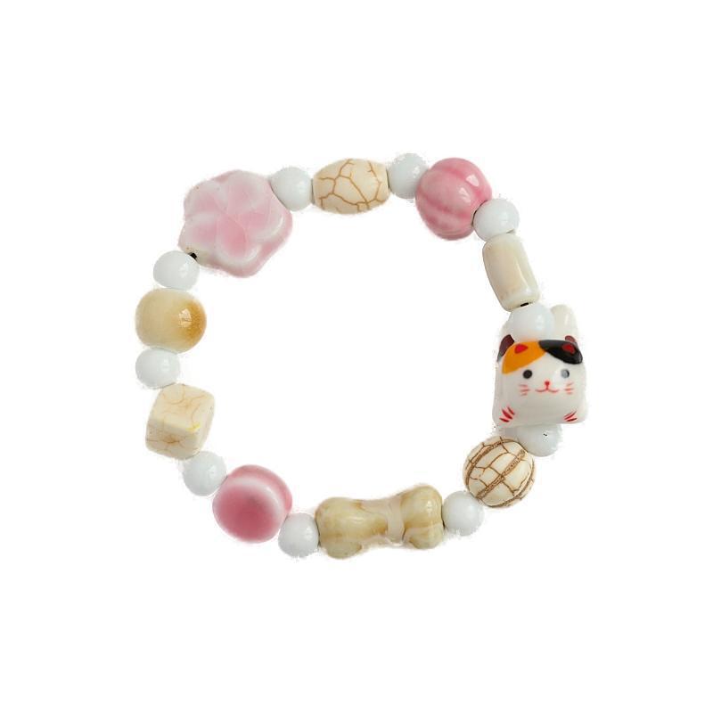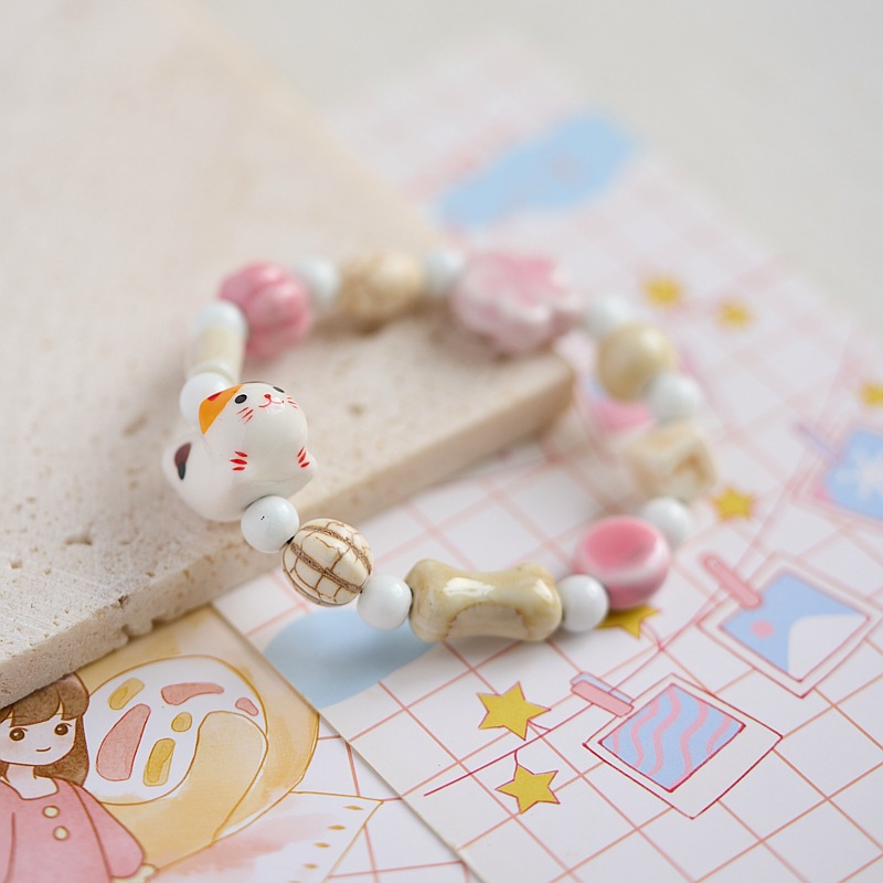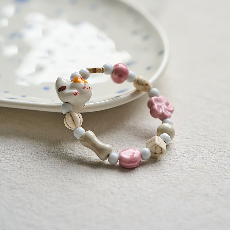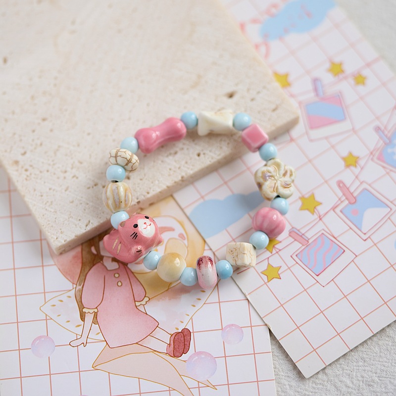 景德镇陶瓷手串饰品甜美可爱粉色小猫咪串珠文艺百搭新中式手饰女