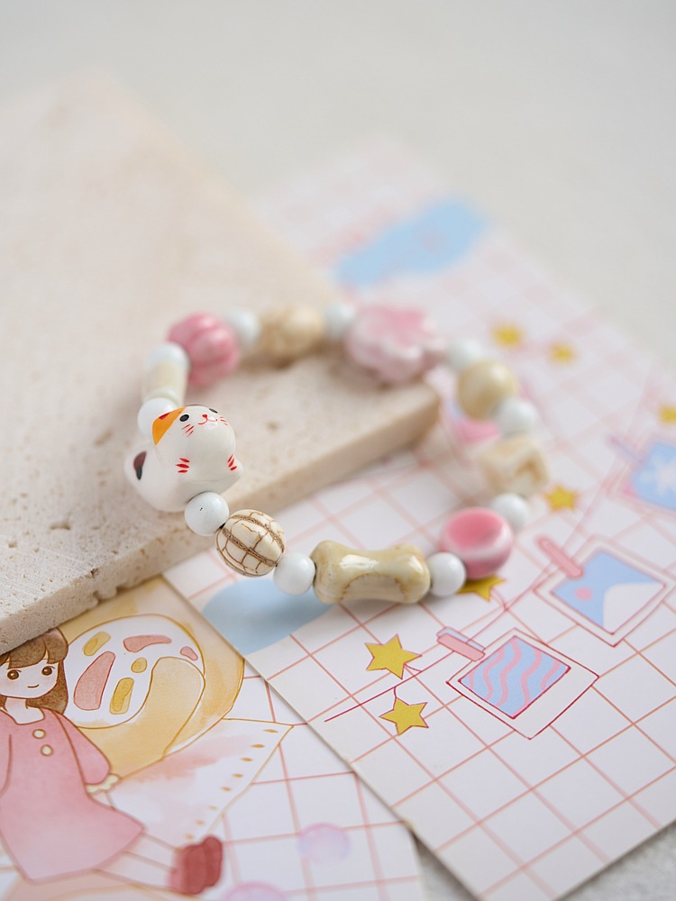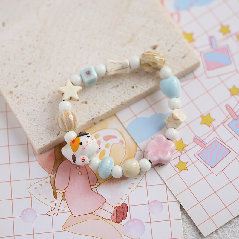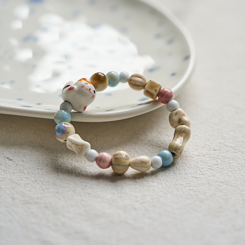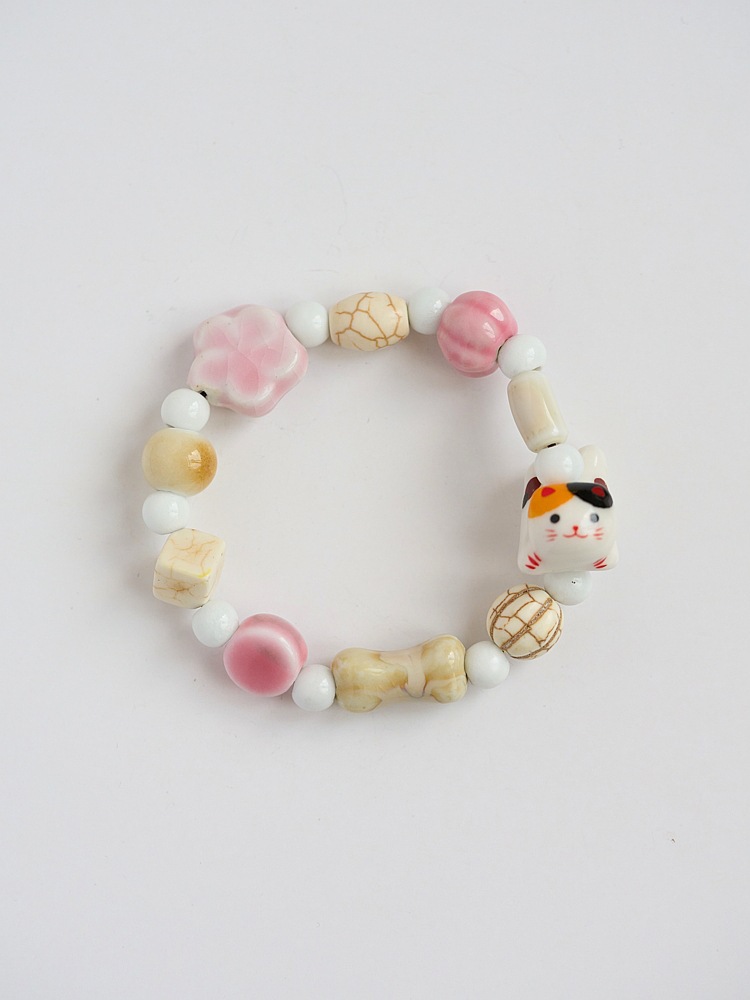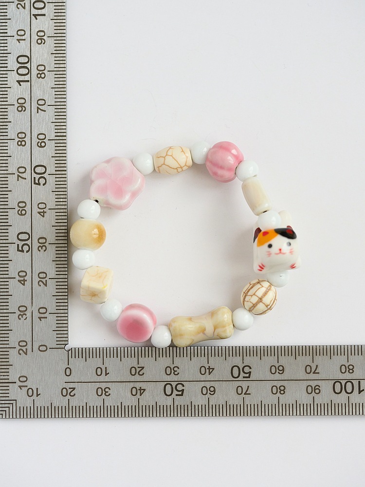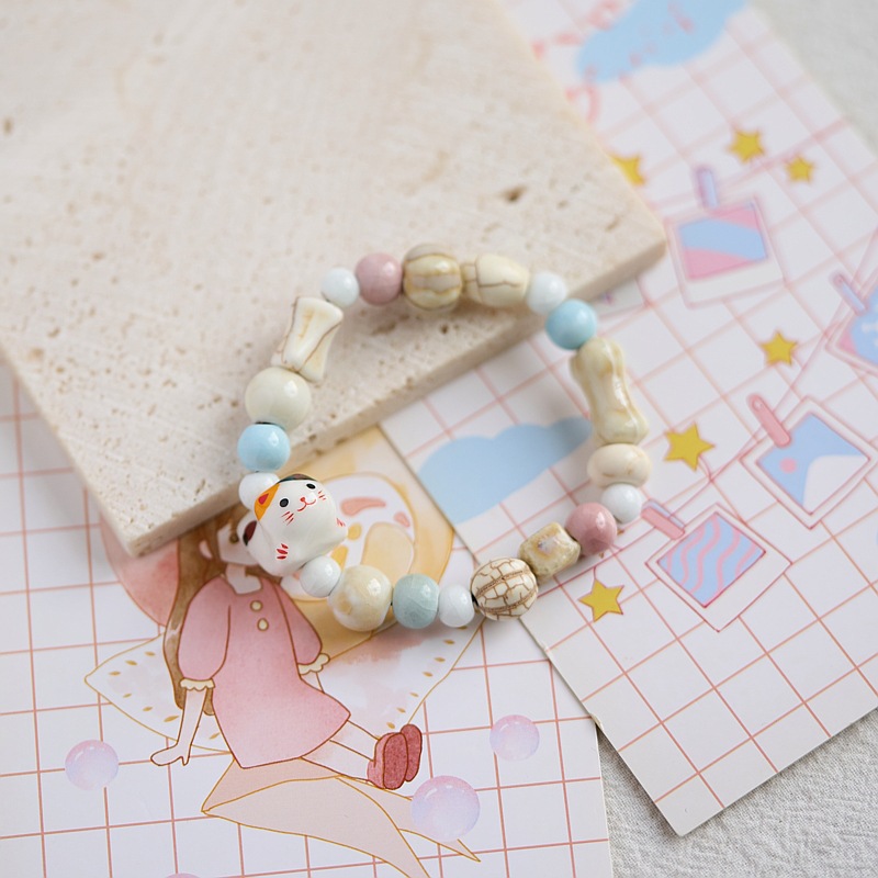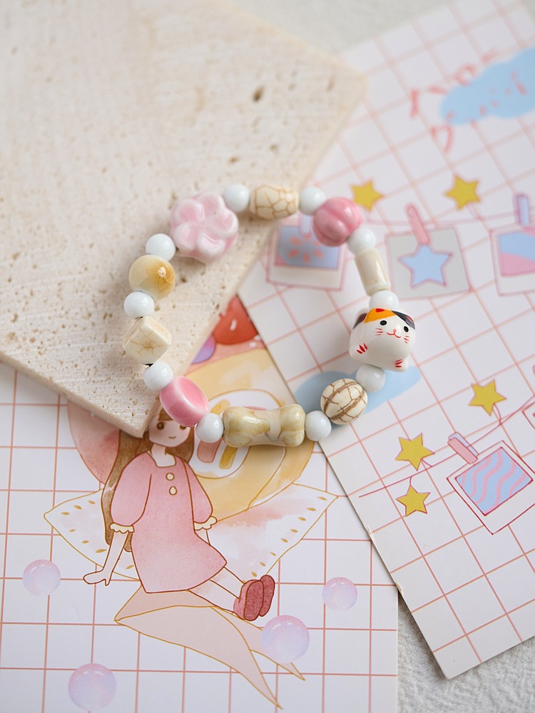 景德镇陶瓷手串饰品甜美可爱粉色小猫咪串珠文艺百搭新中式手饰女