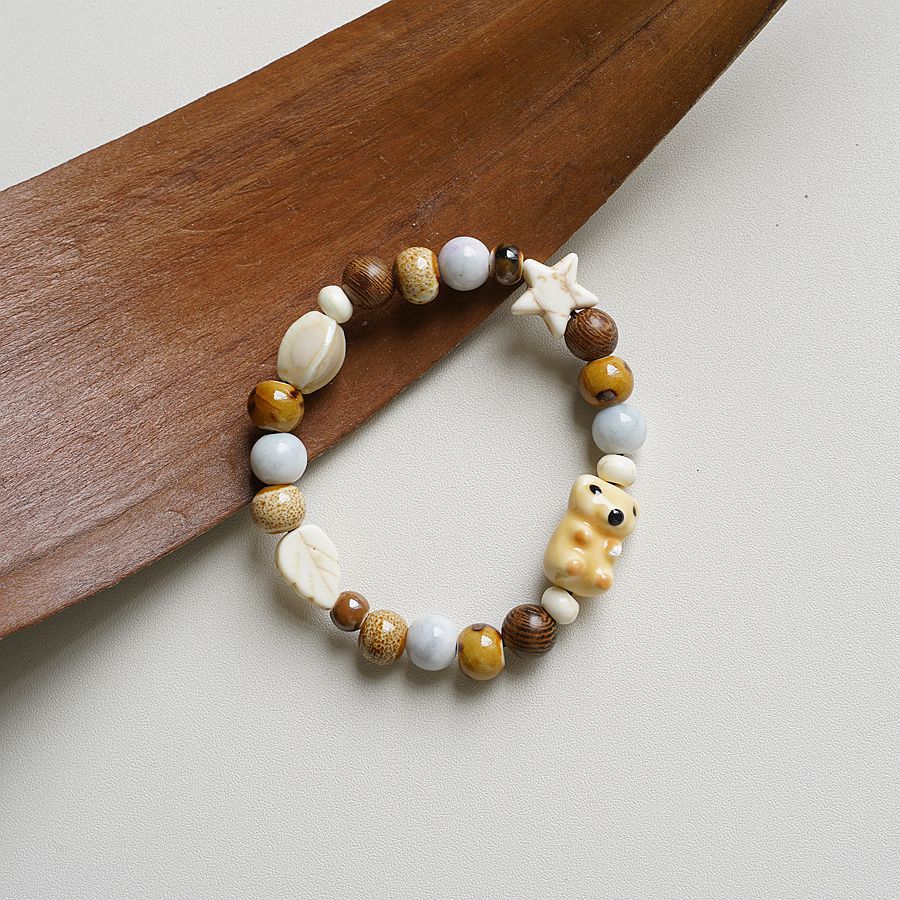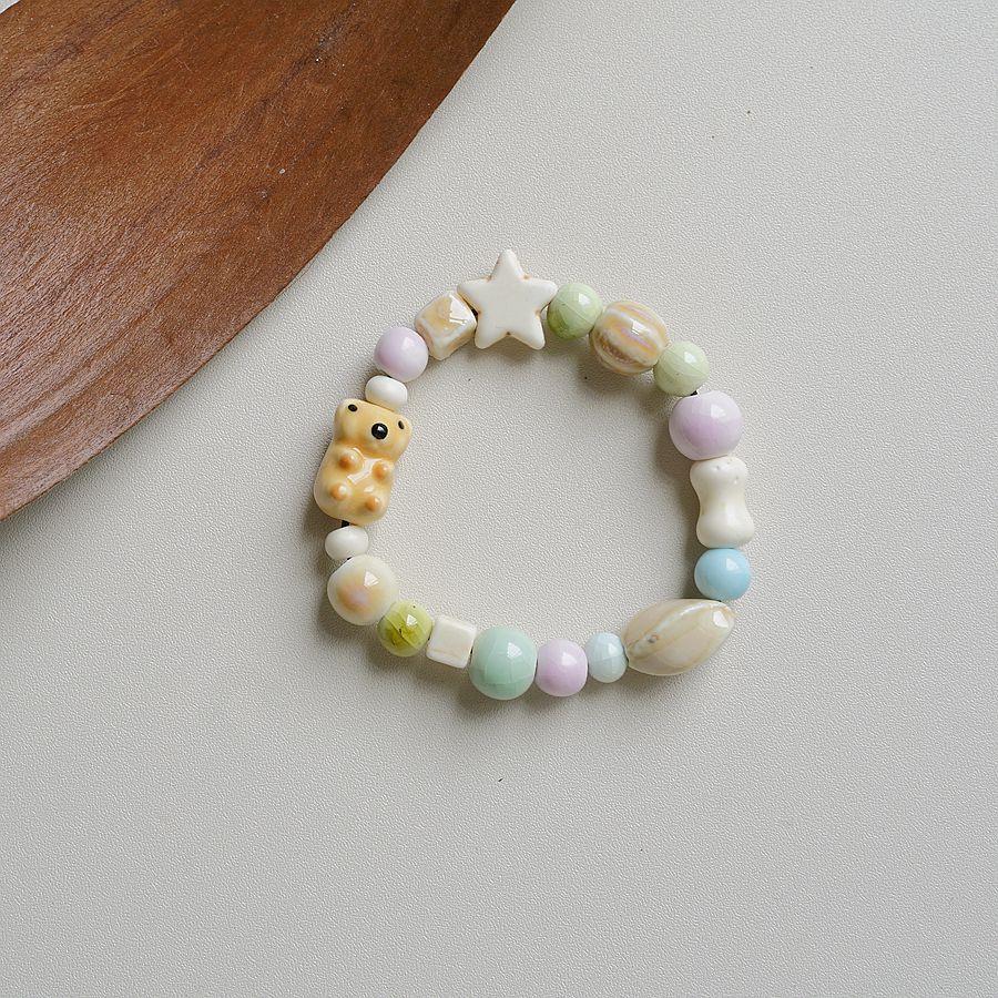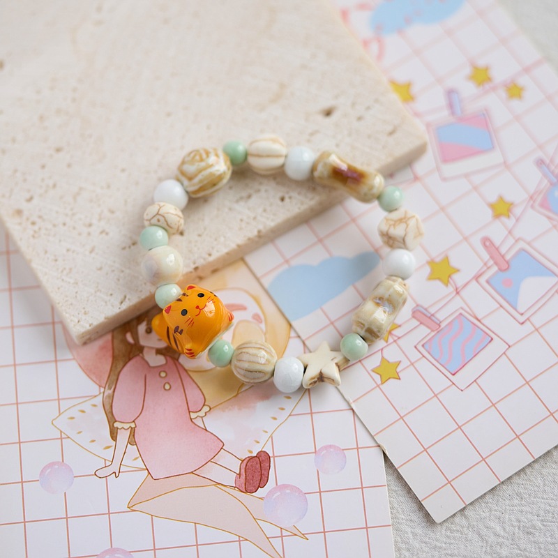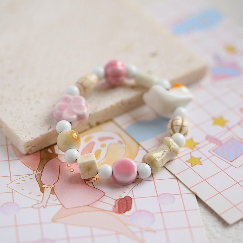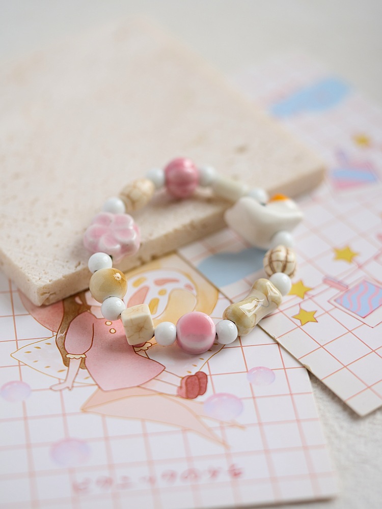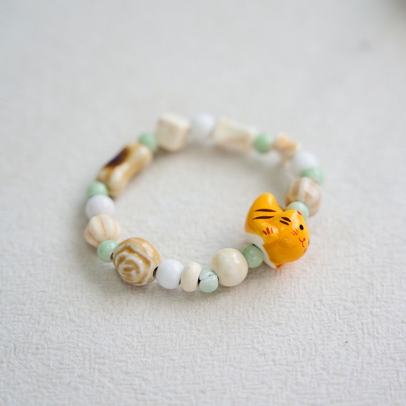 景德镇陶瓷手串饰品甜美可爱粉色小猫咪串珠文艺百搭新中式手饰女