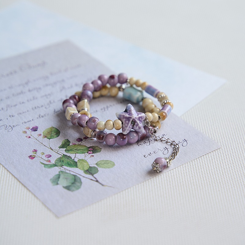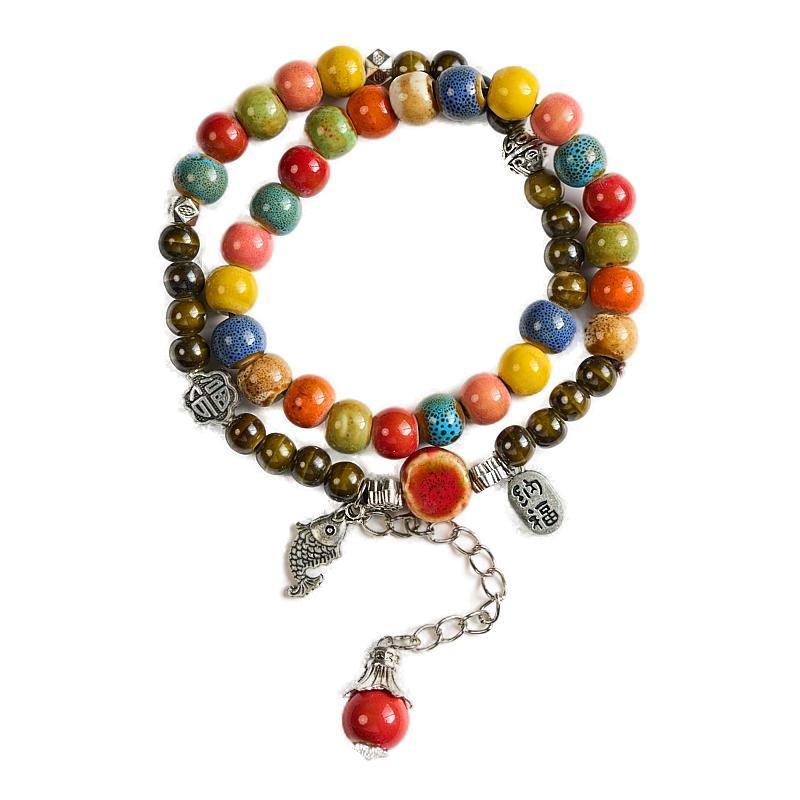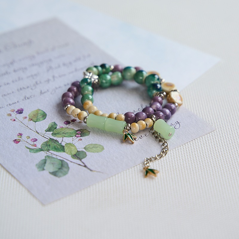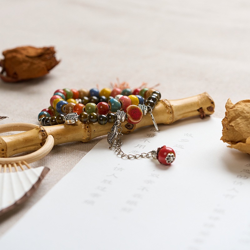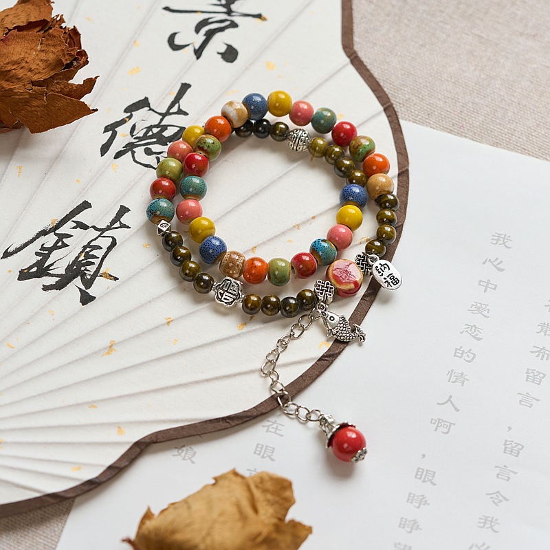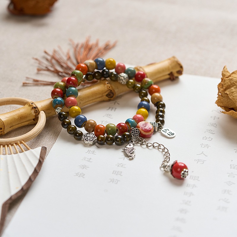 景德镇陶瓷双圈手串女批发小清新文艺景区饰品礼物古风串珠手链