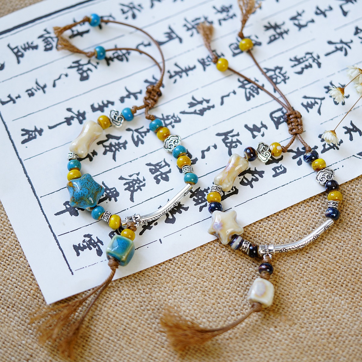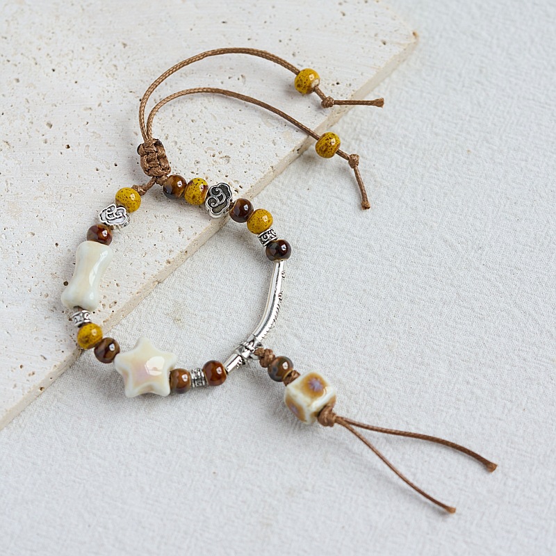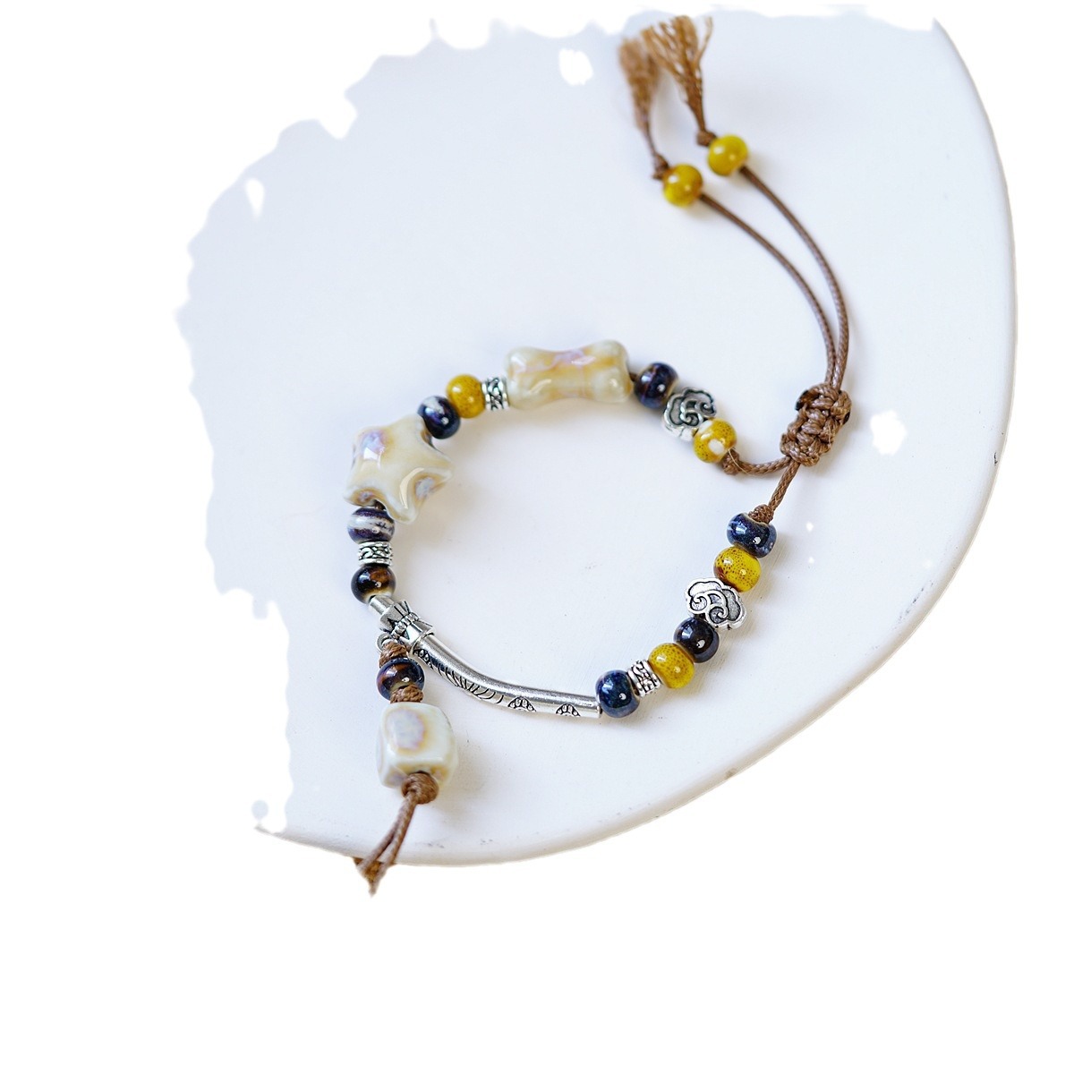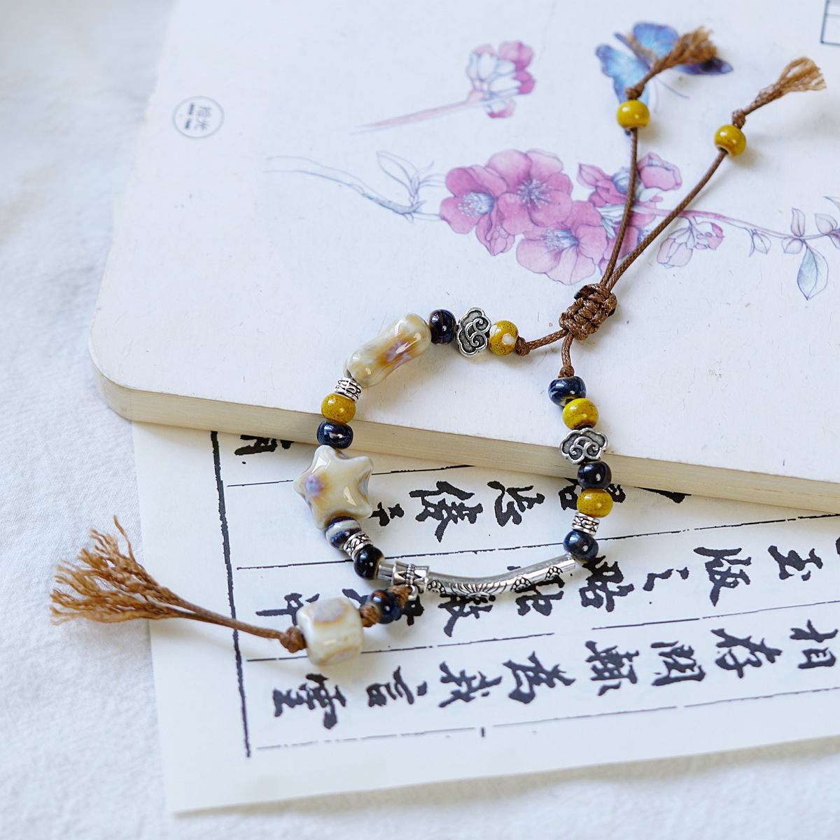 厂家货源小众新中式陶瓷星星抽拉绳手链闺蜜手串批发复古手饰国风