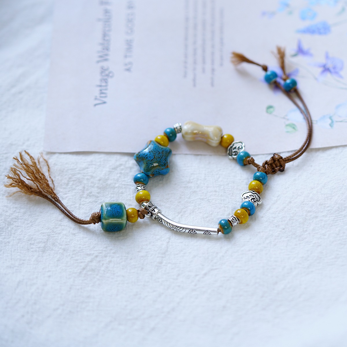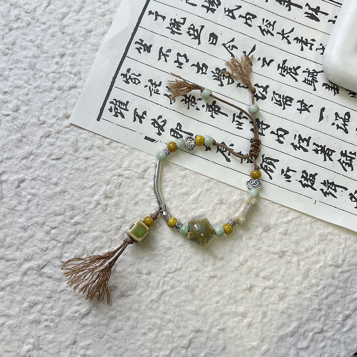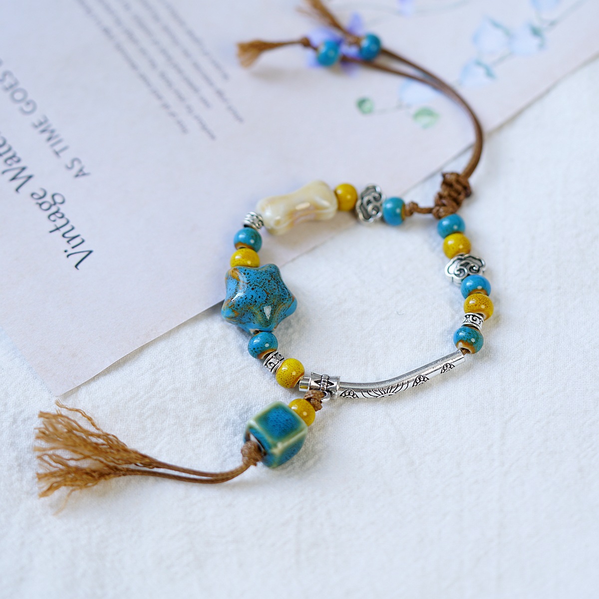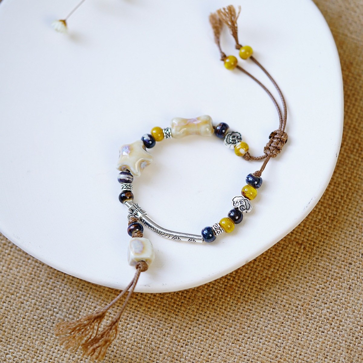 厂家货源小众新中式陶瓷星星抽拉绳手链闺蜜手串批发复古手饰国风