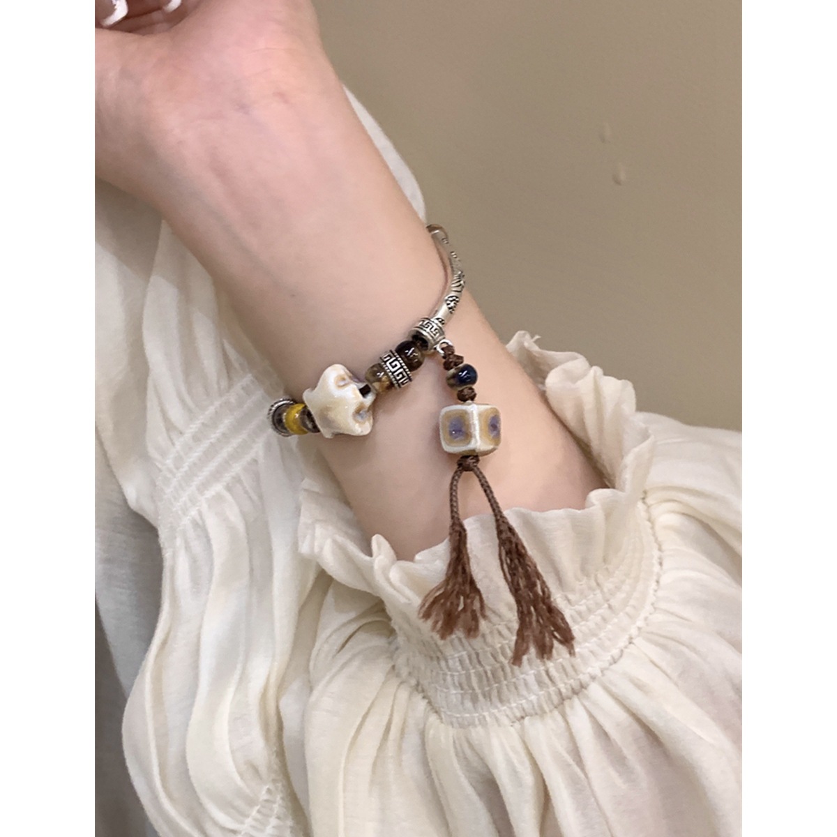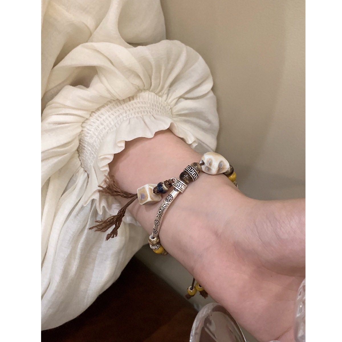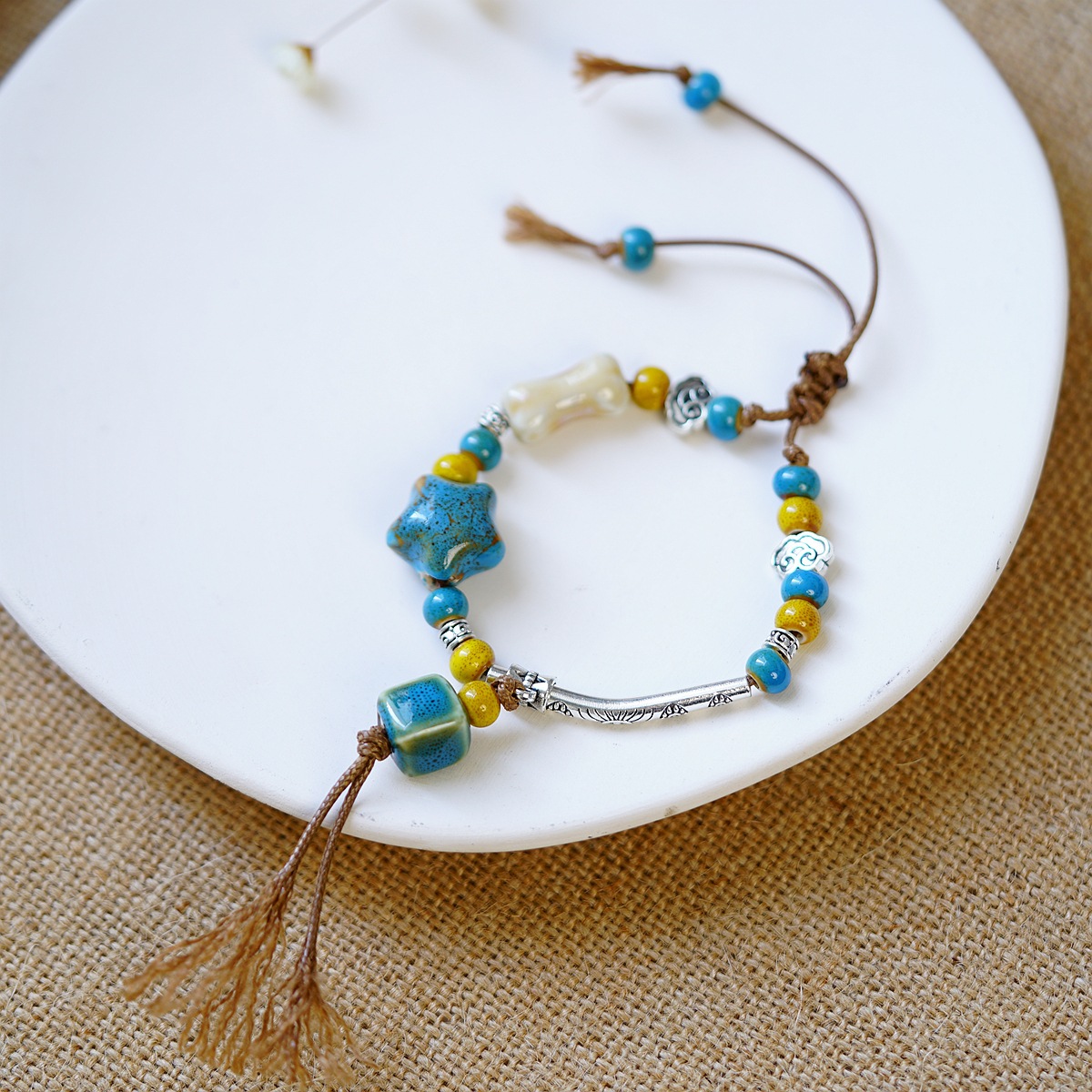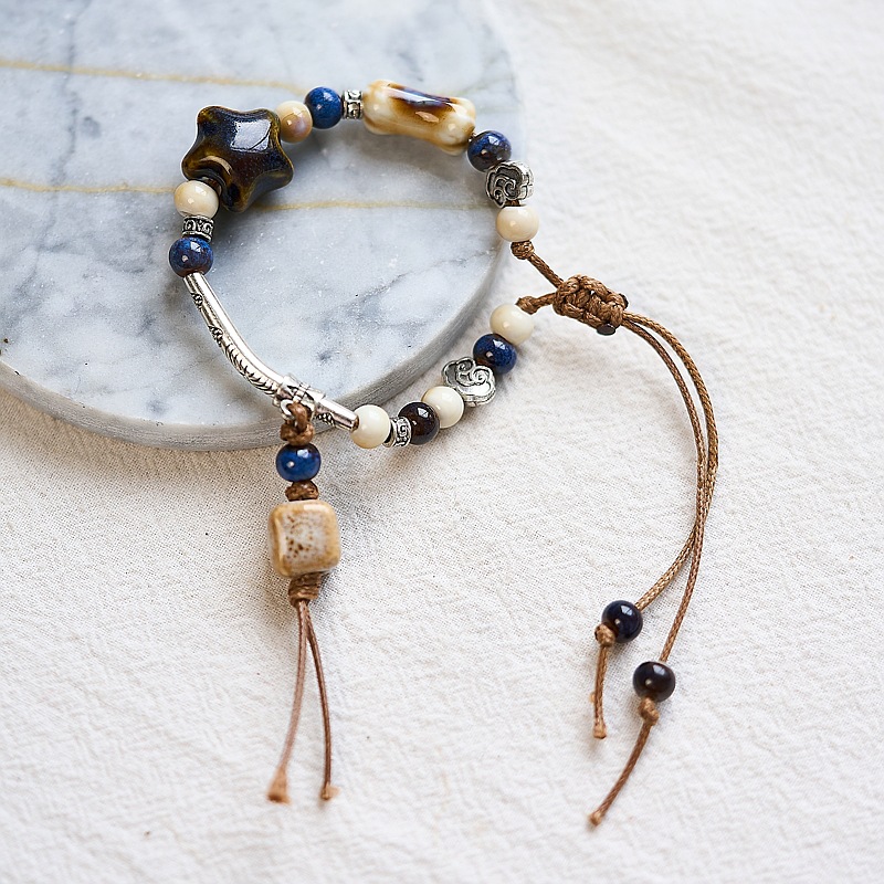 厂家货源小众新中式陶瓷星星抽拉绳手链闺蜜手串批发复古手饰国风
