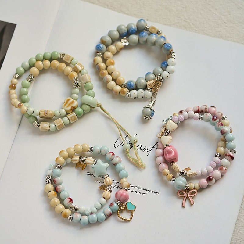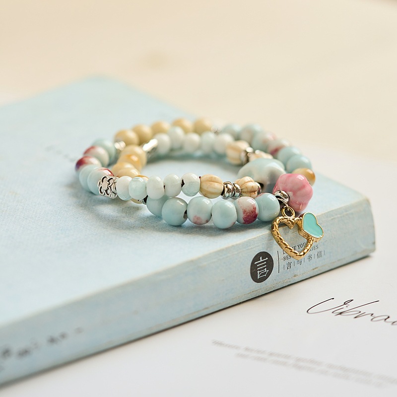 景德镇陶瓷手链夏季女高级感简约新中式国风闺蜜森系流行双圈手串
