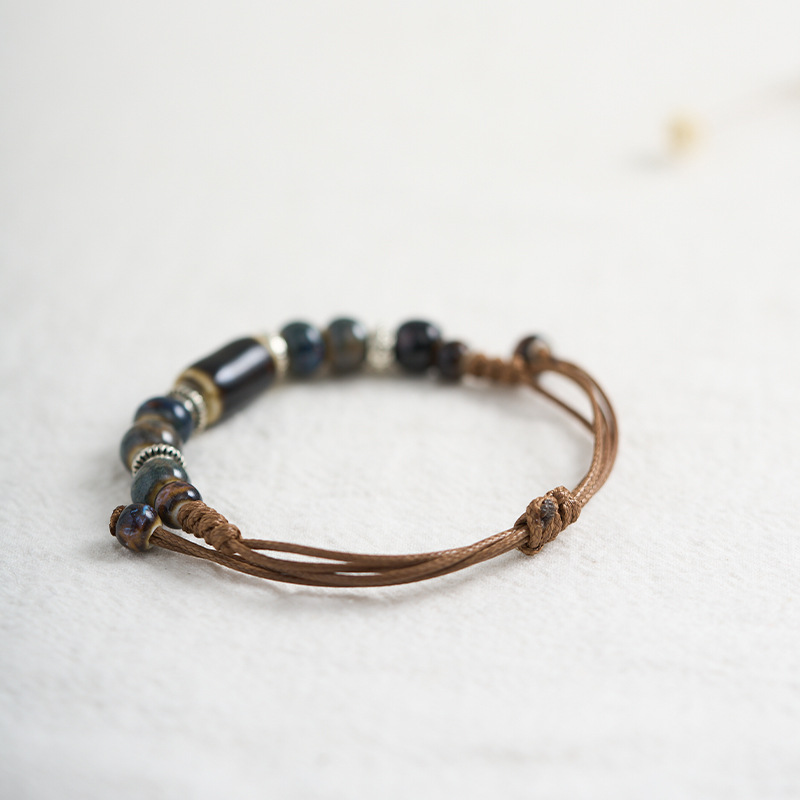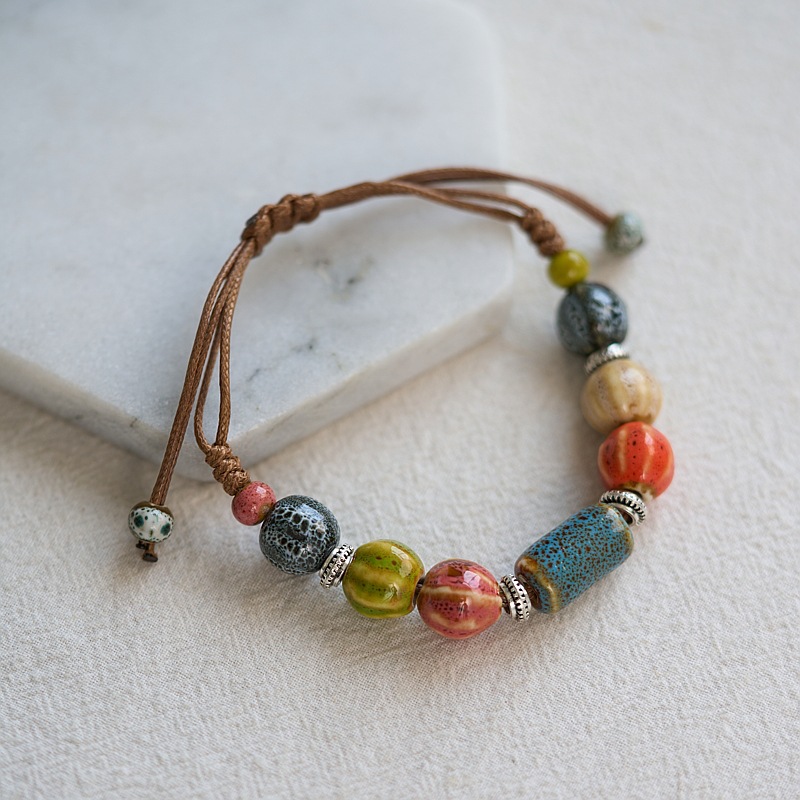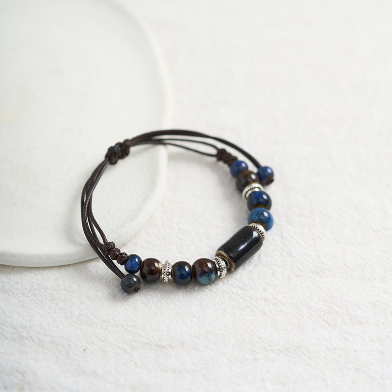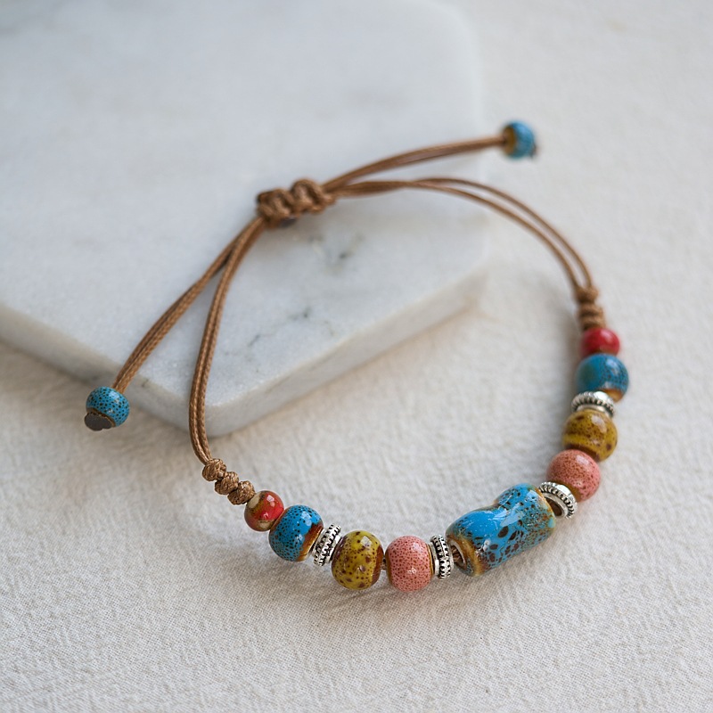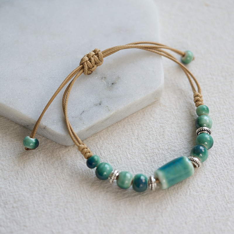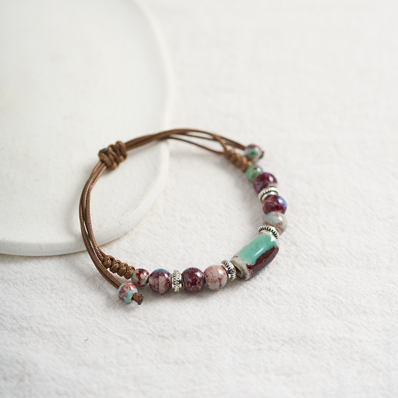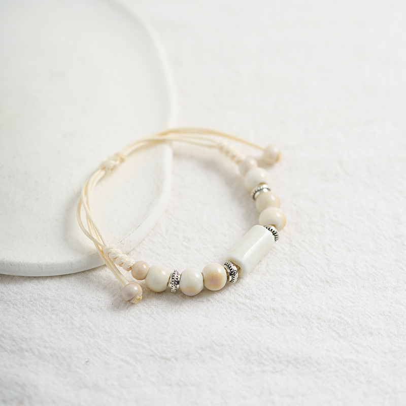 民族风景德镇陶瓷手链新中式编织串珠手串闺蜜森系手绳小饰品批发