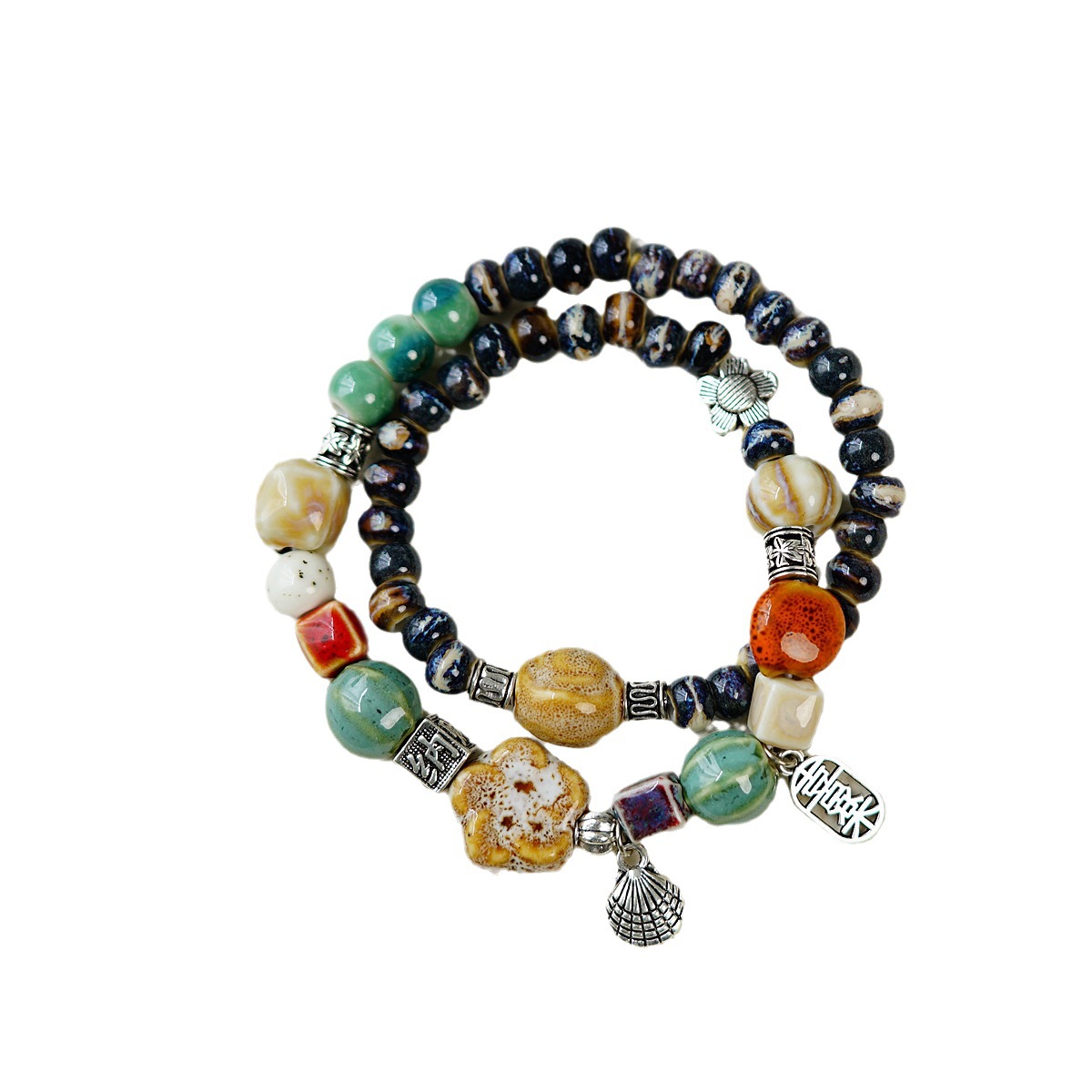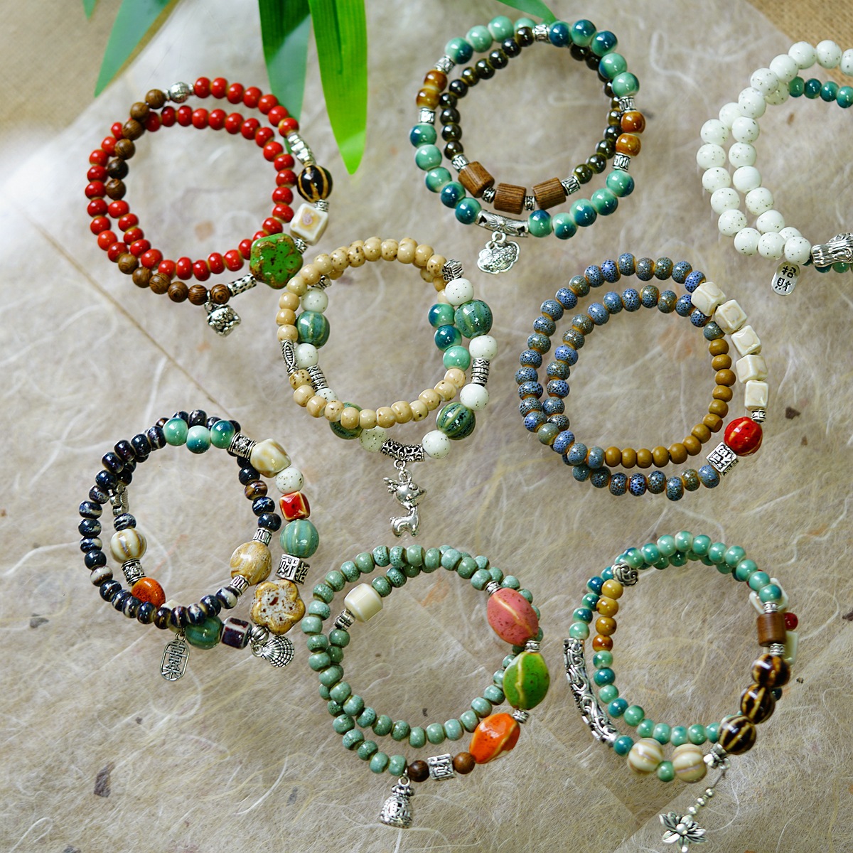 新中式叠戴景德镇陶瓷手链饰品女批发民族风文艺蝴蝶手串配饰严选