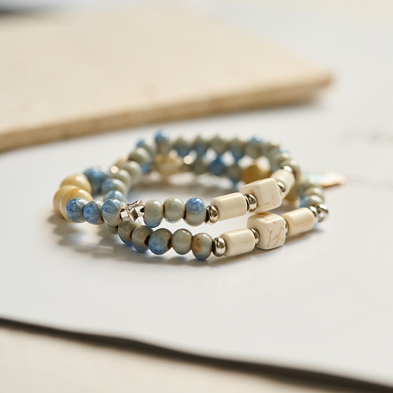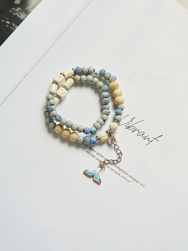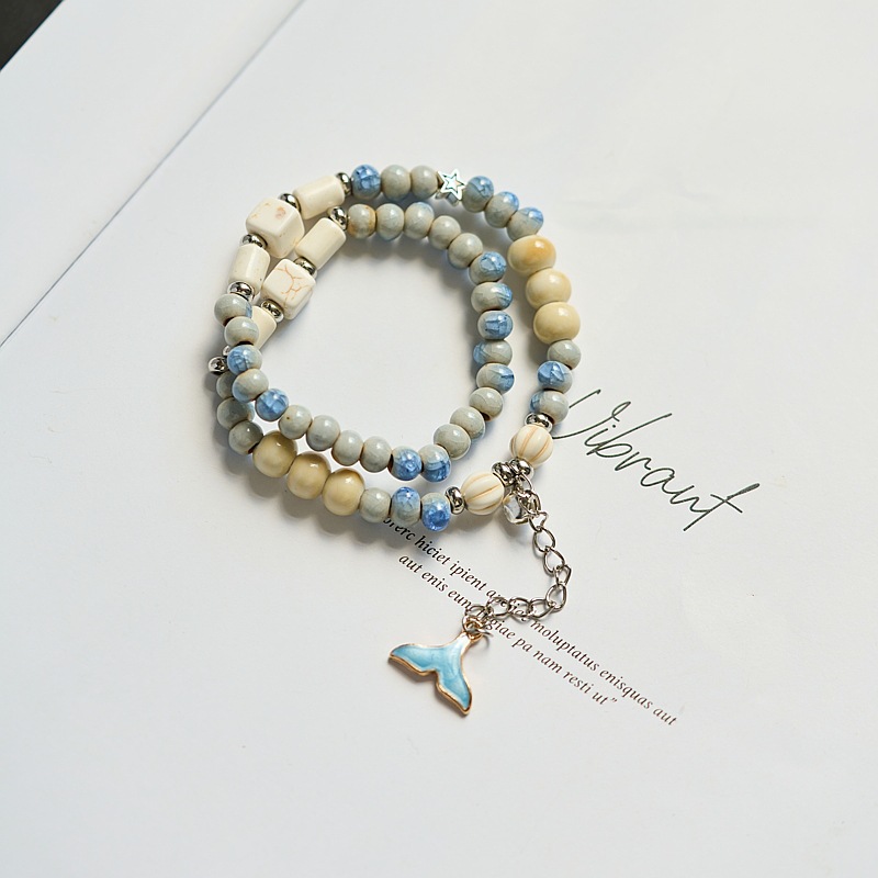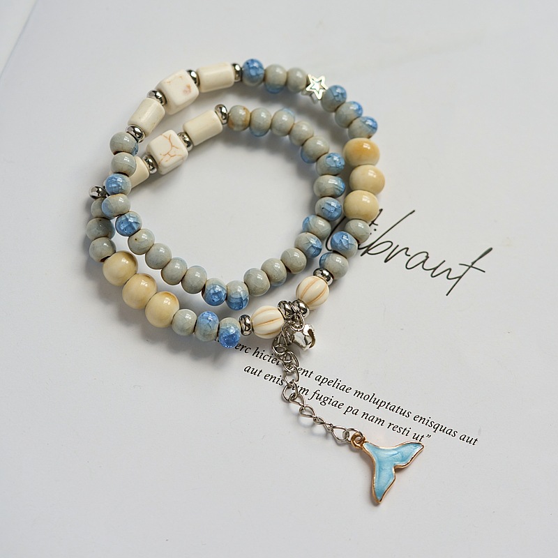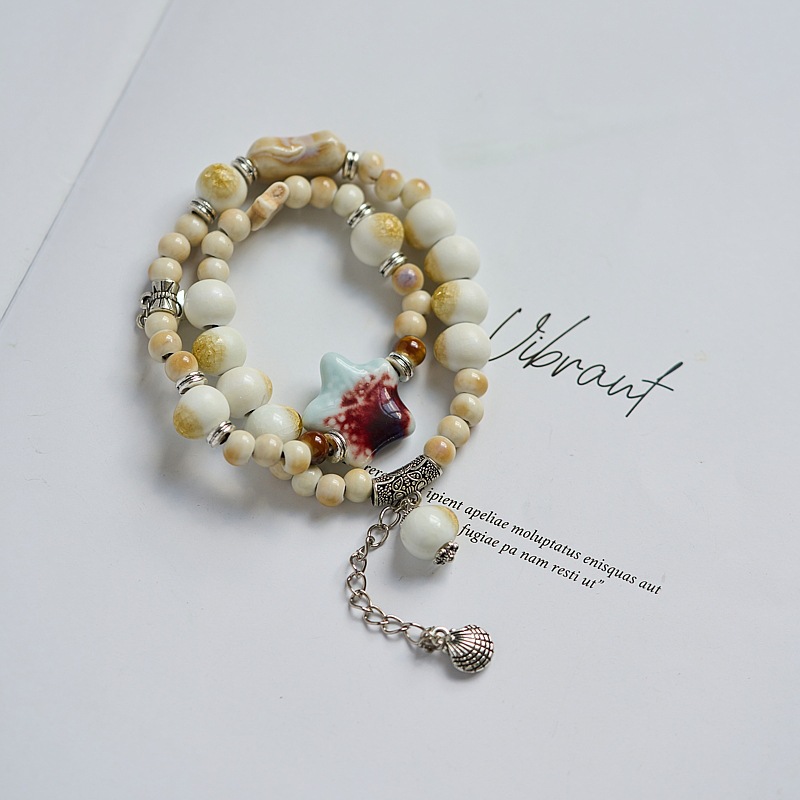 景德镇陶瓷手链不掉色女夏季小清新原创简约学生海星贝壳叠戴手串