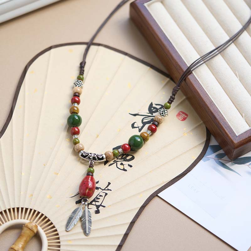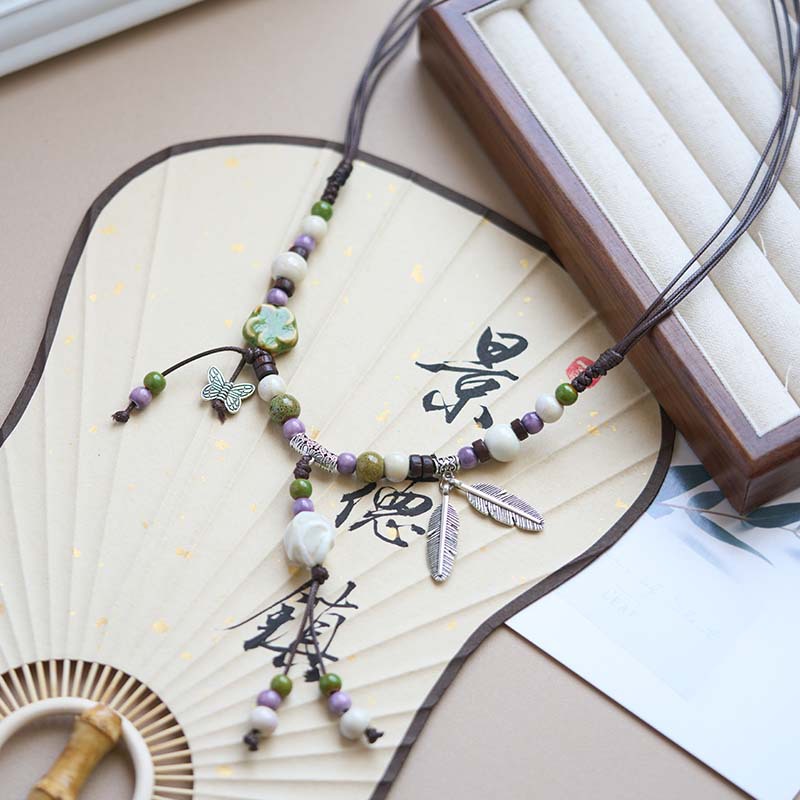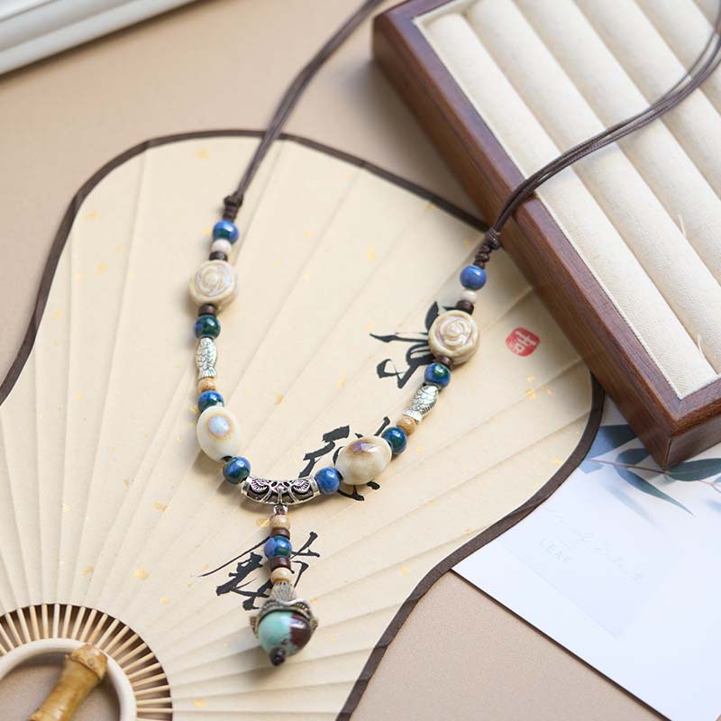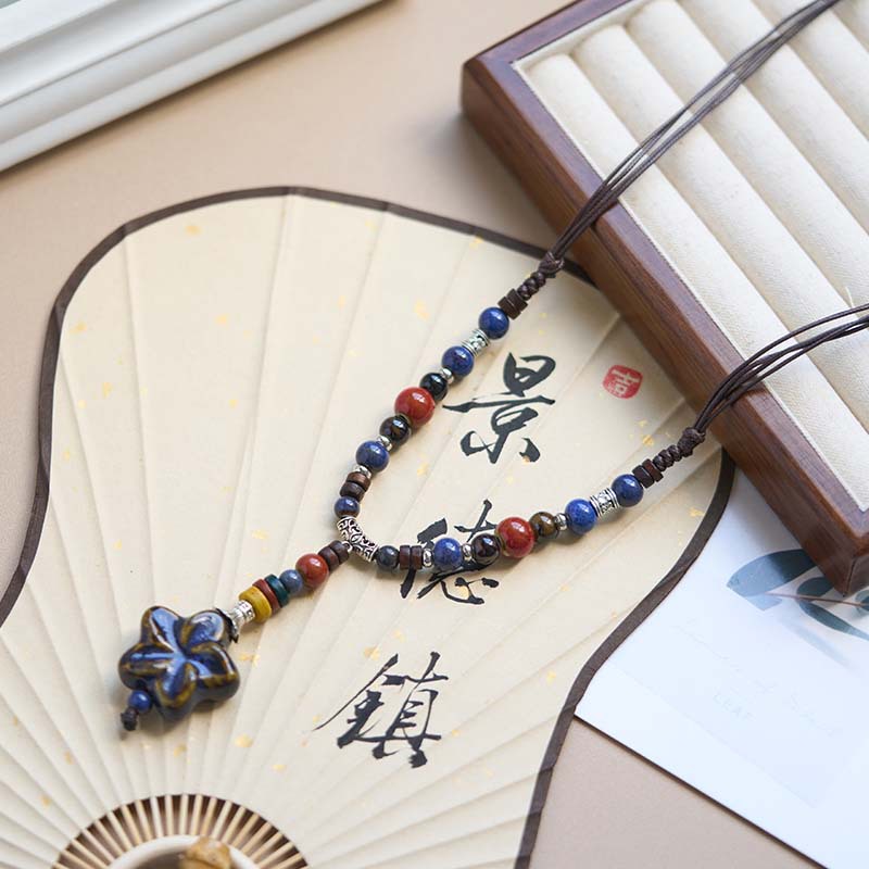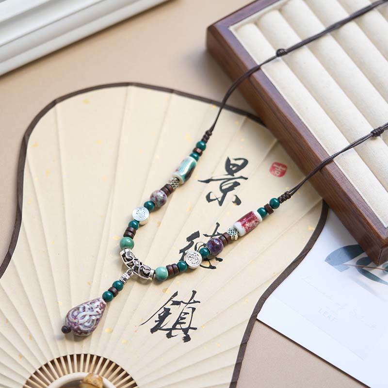 景德镇陶瓷项链民族风流行饰品女原创古风毛衣链新中式饰品批发