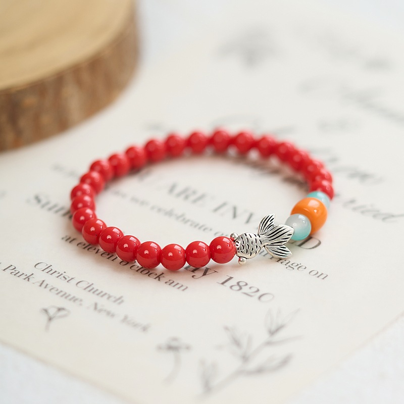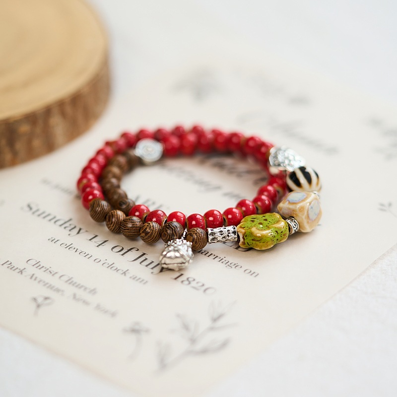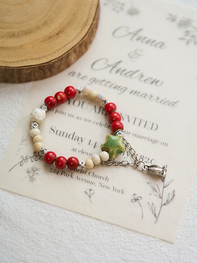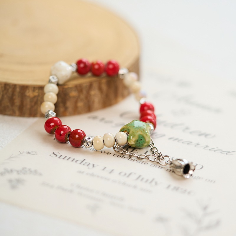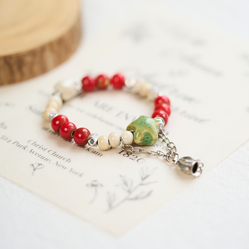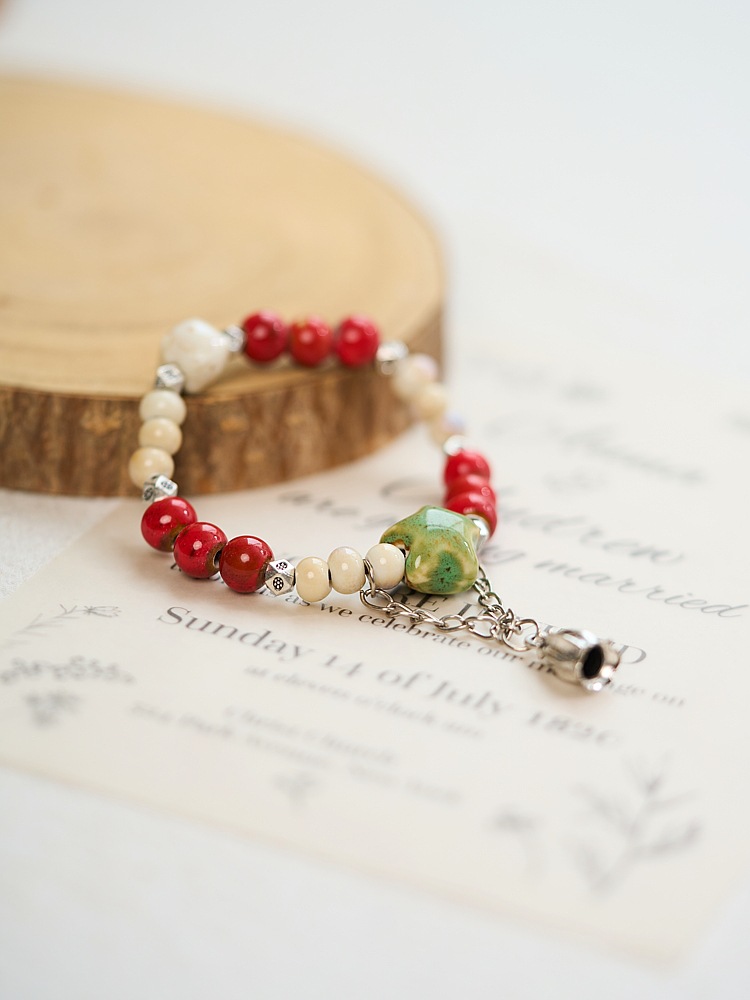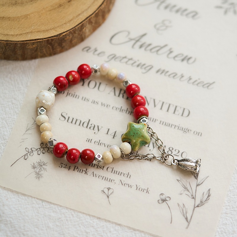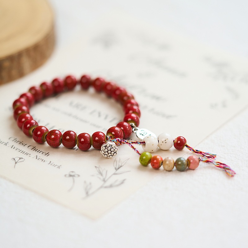 景德镇陶瓷手链新中式红色系列清新百搭手工编织古风串珠饰品批发