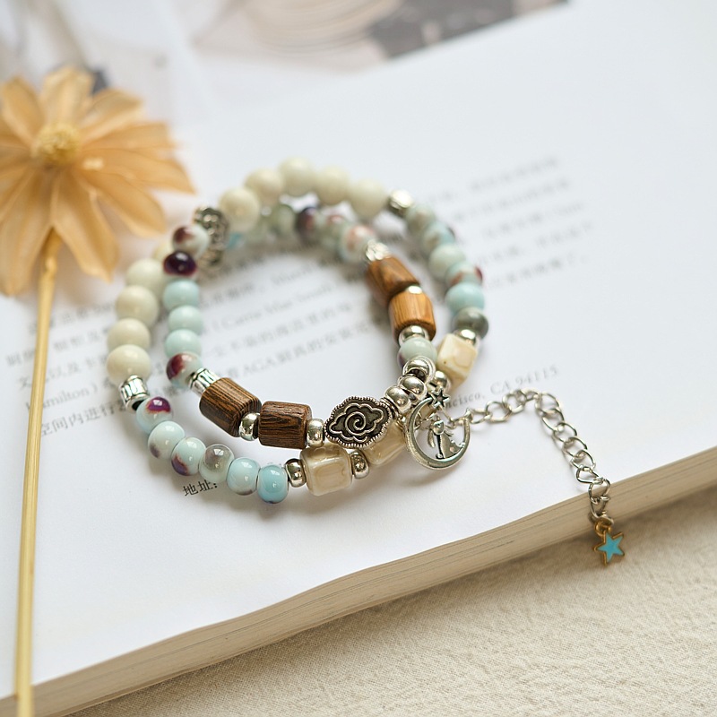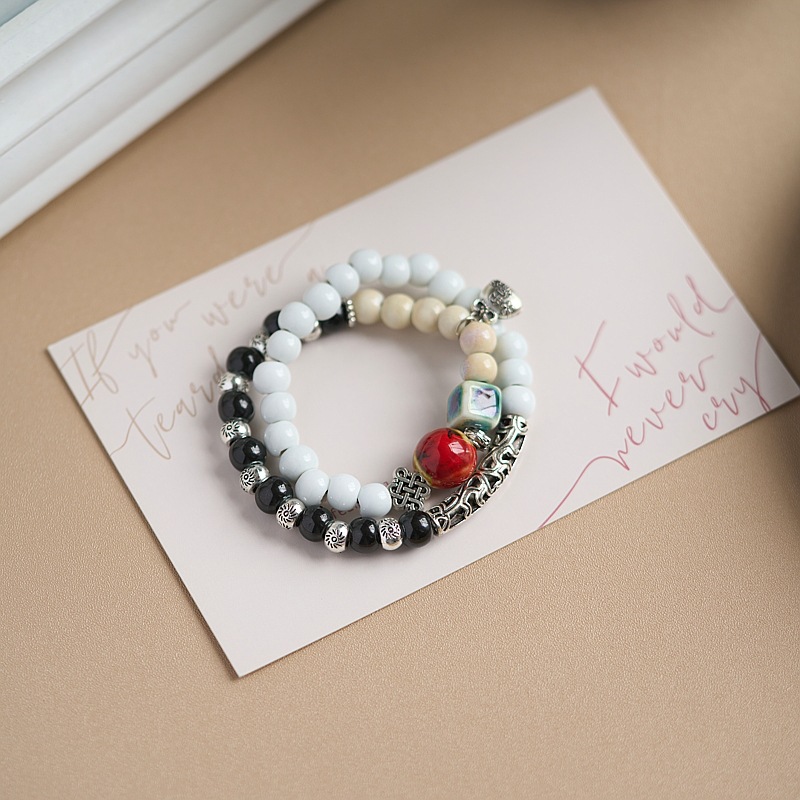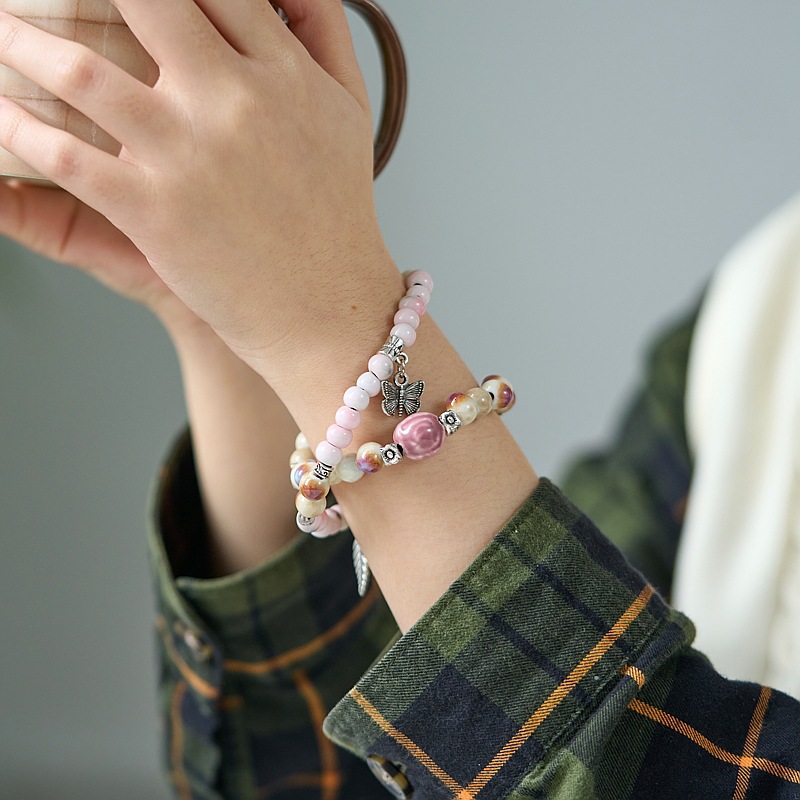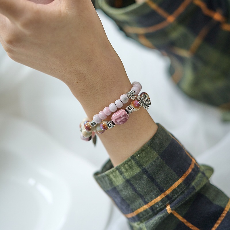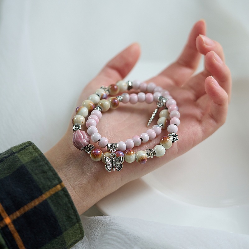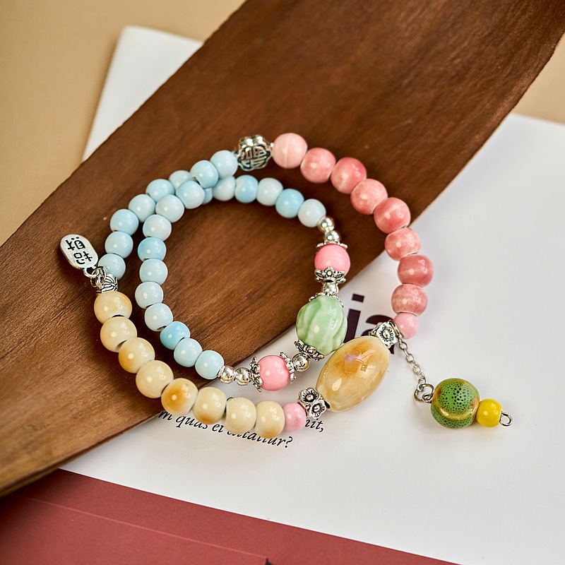 景德镇陶瓷手链女饰品女百搭高级感双层叠戴陶瓷串珠多巴胺手饰