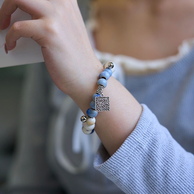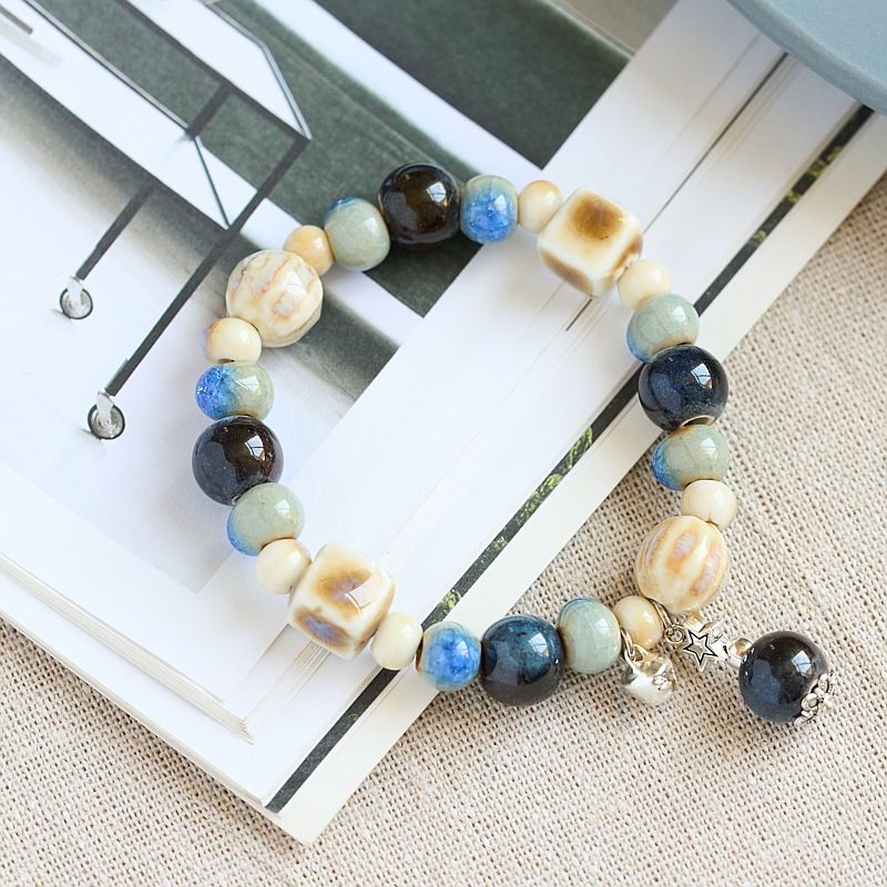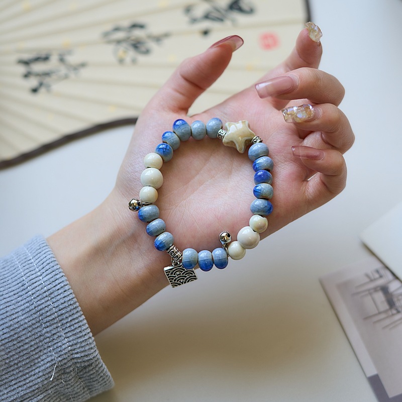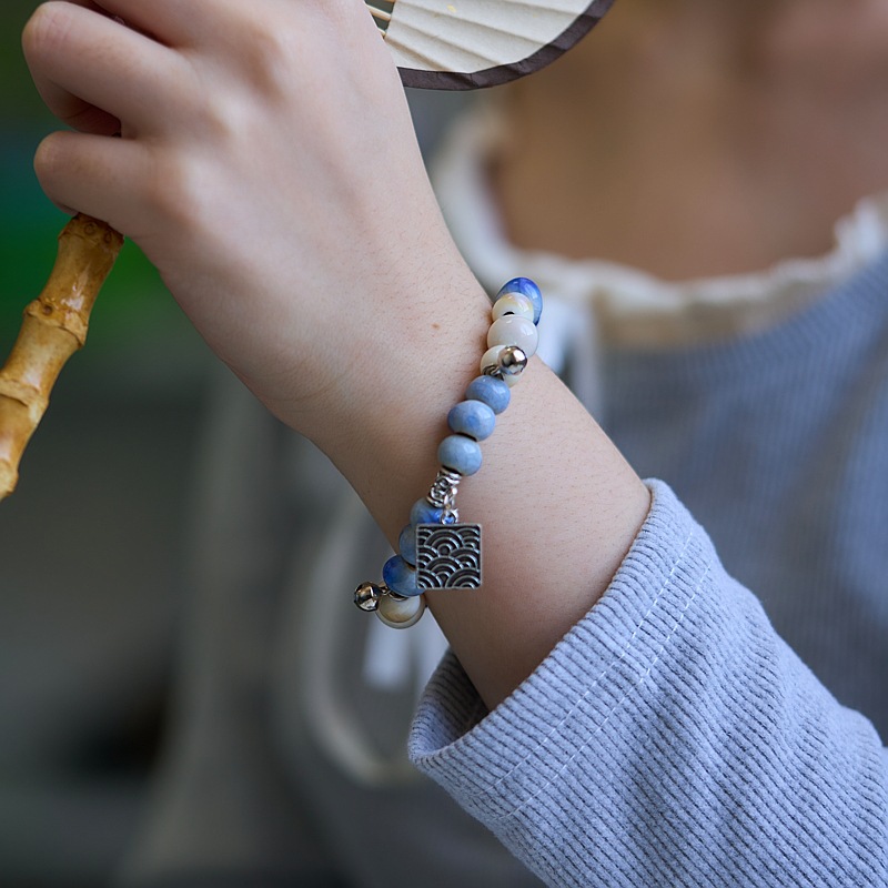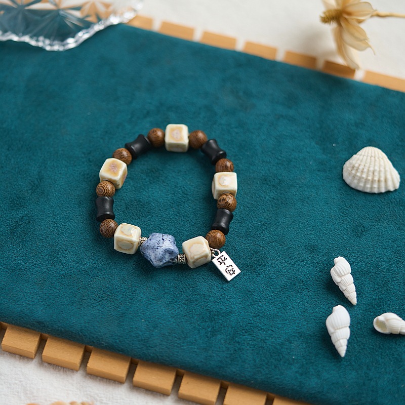 景德镇陶瓷手串批发平安喜乐百搭编织古风串珠手链文艺流行新中式