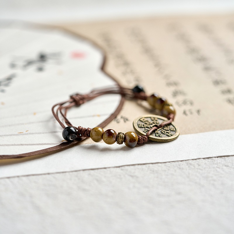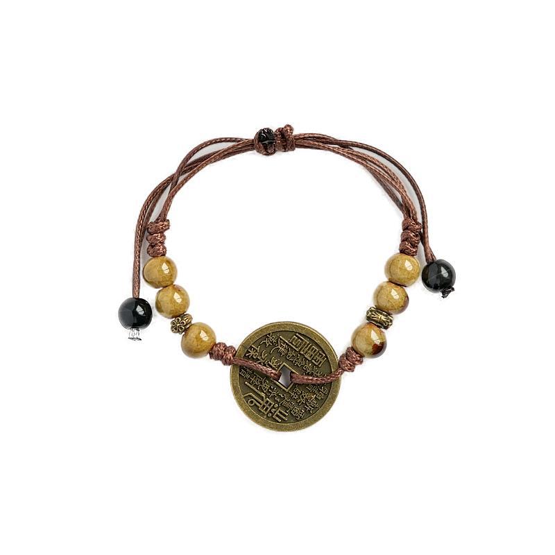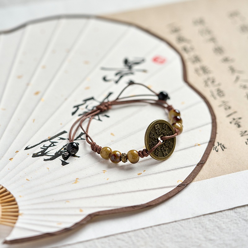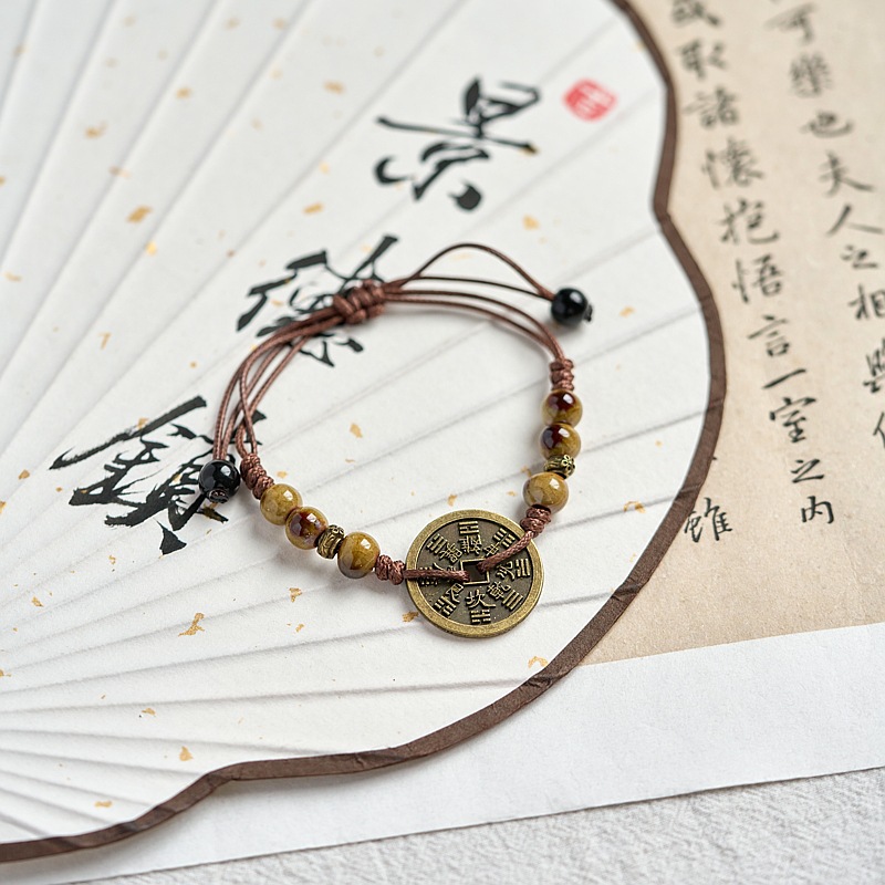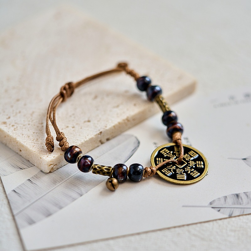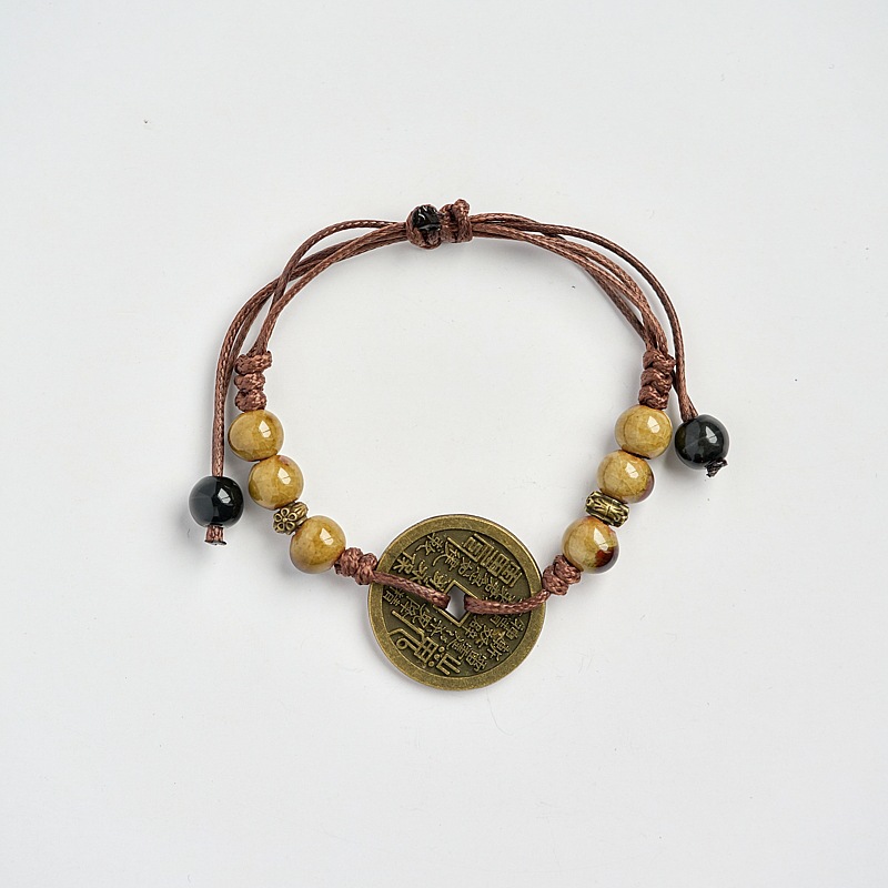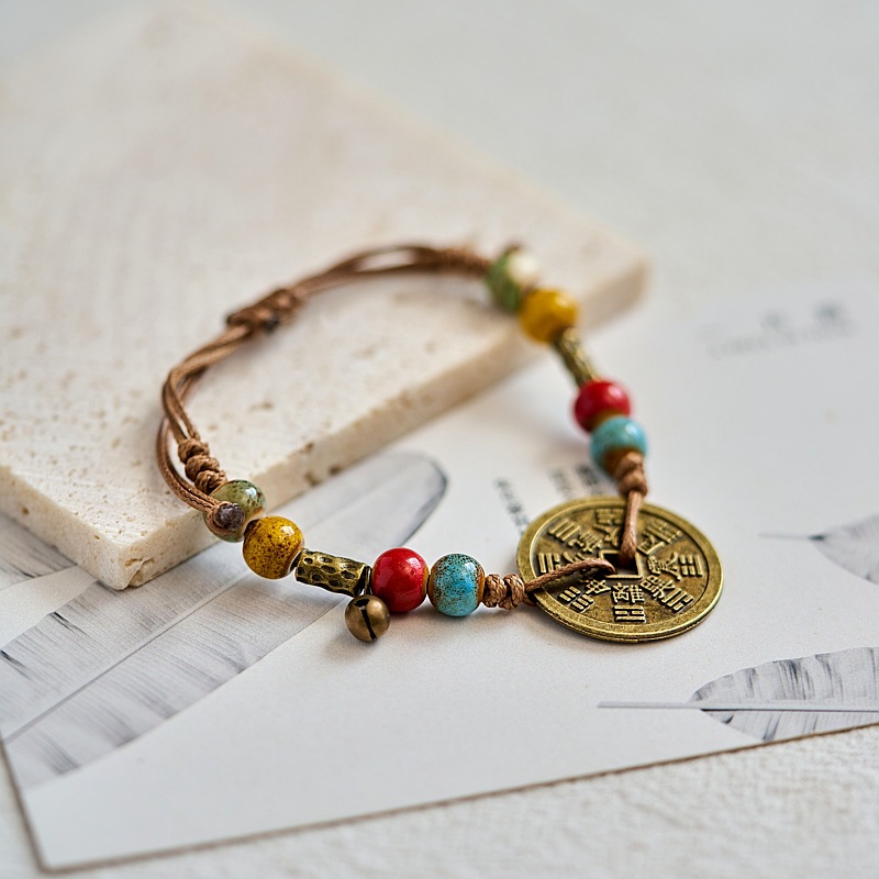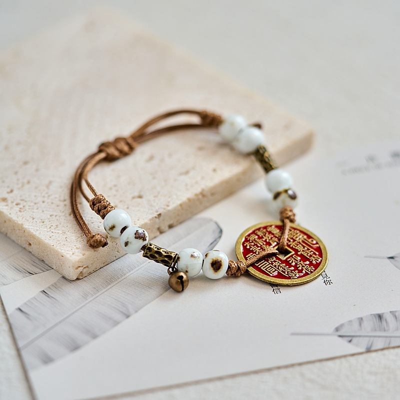新款景德镇陶瓷手链女原创百搭新中式手工编织铜钱手绳古风饰品女