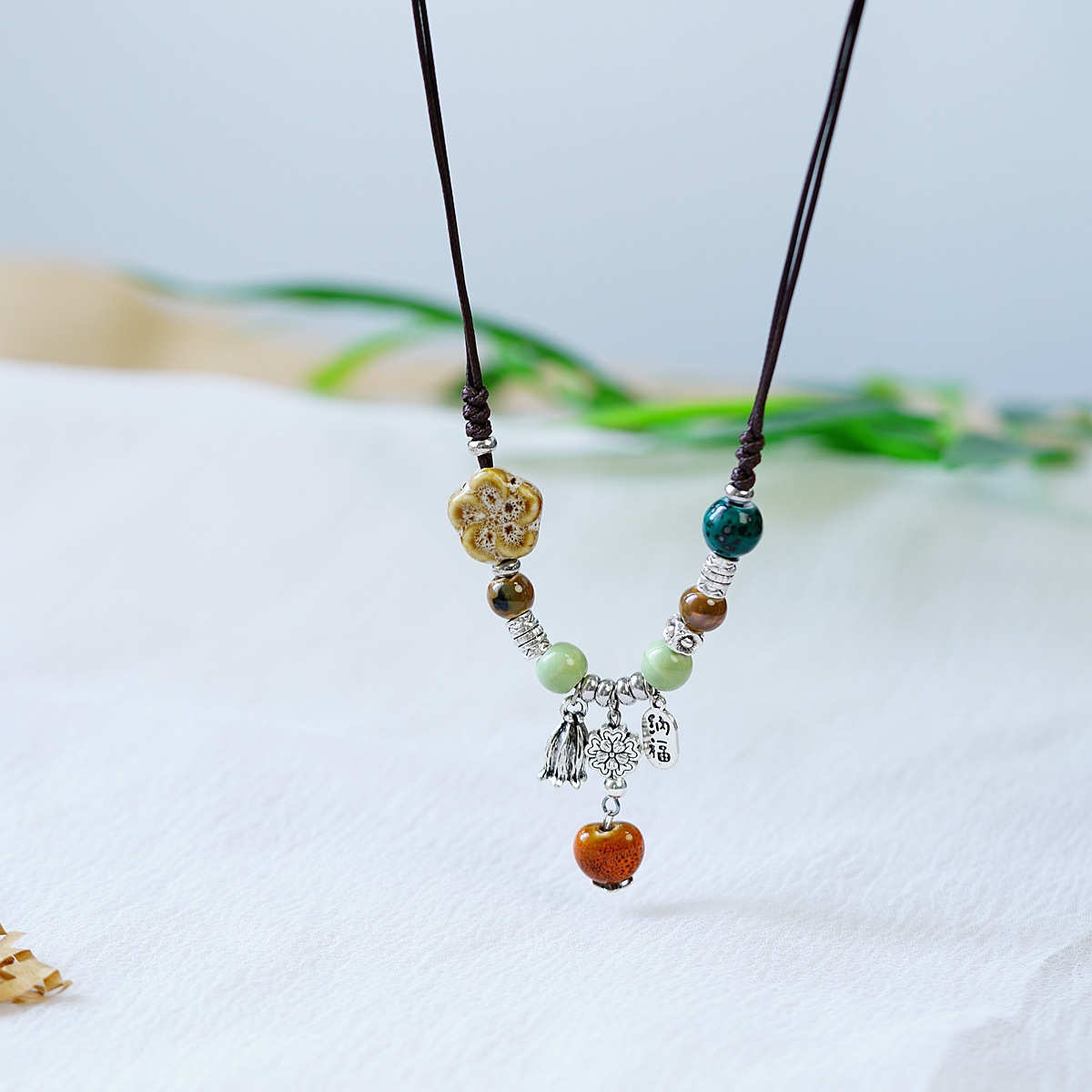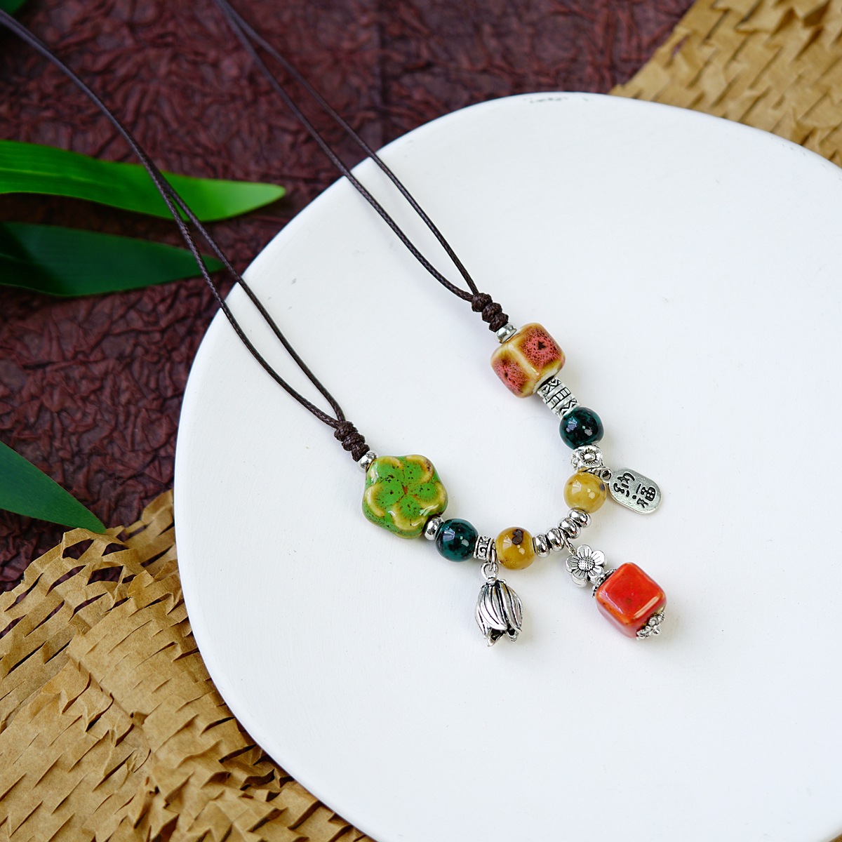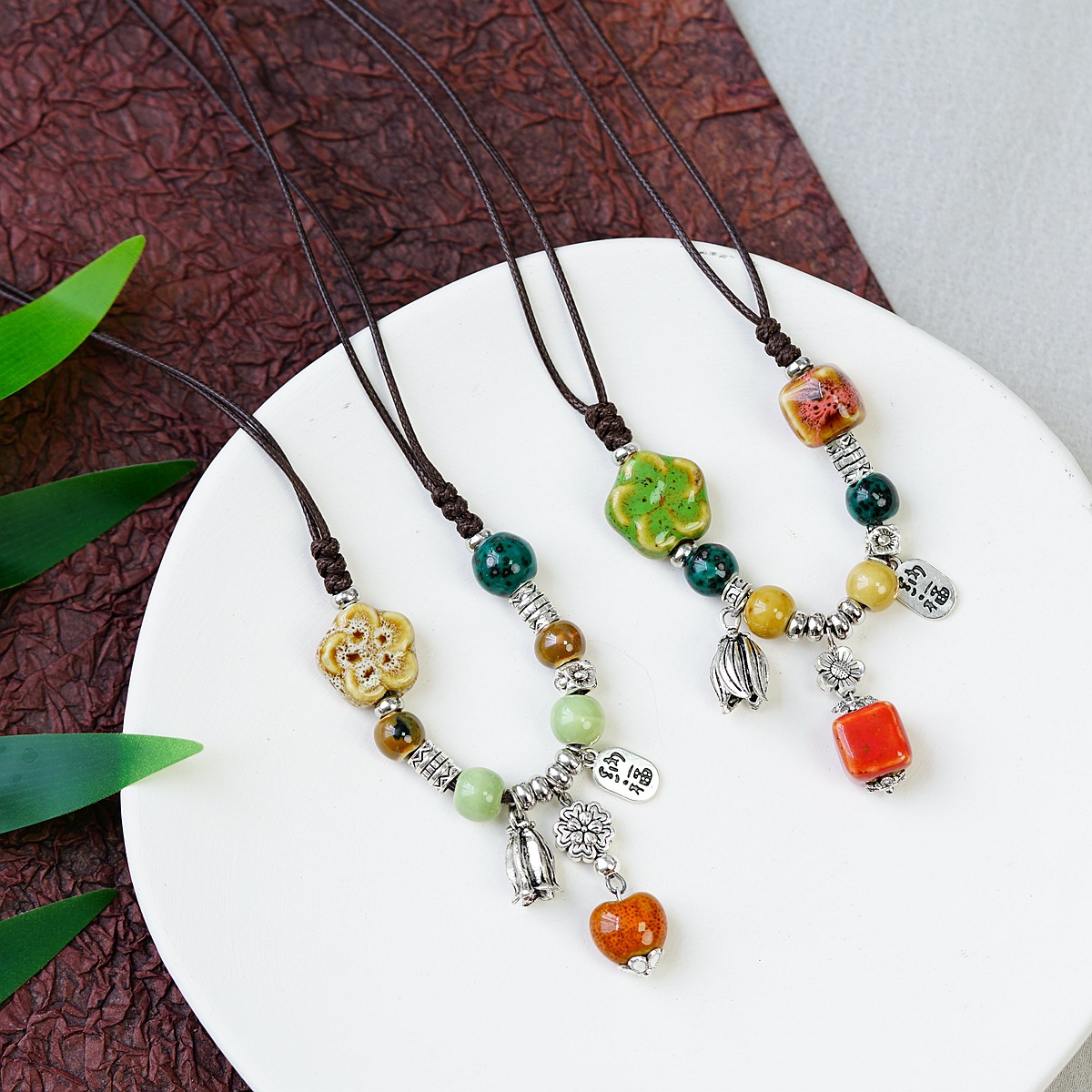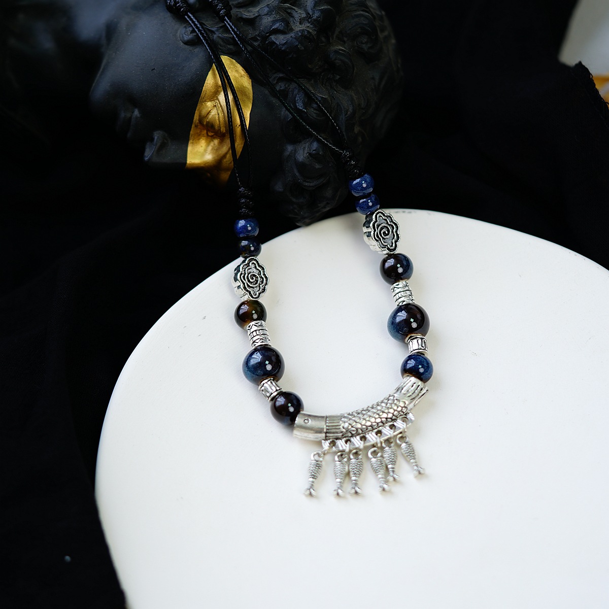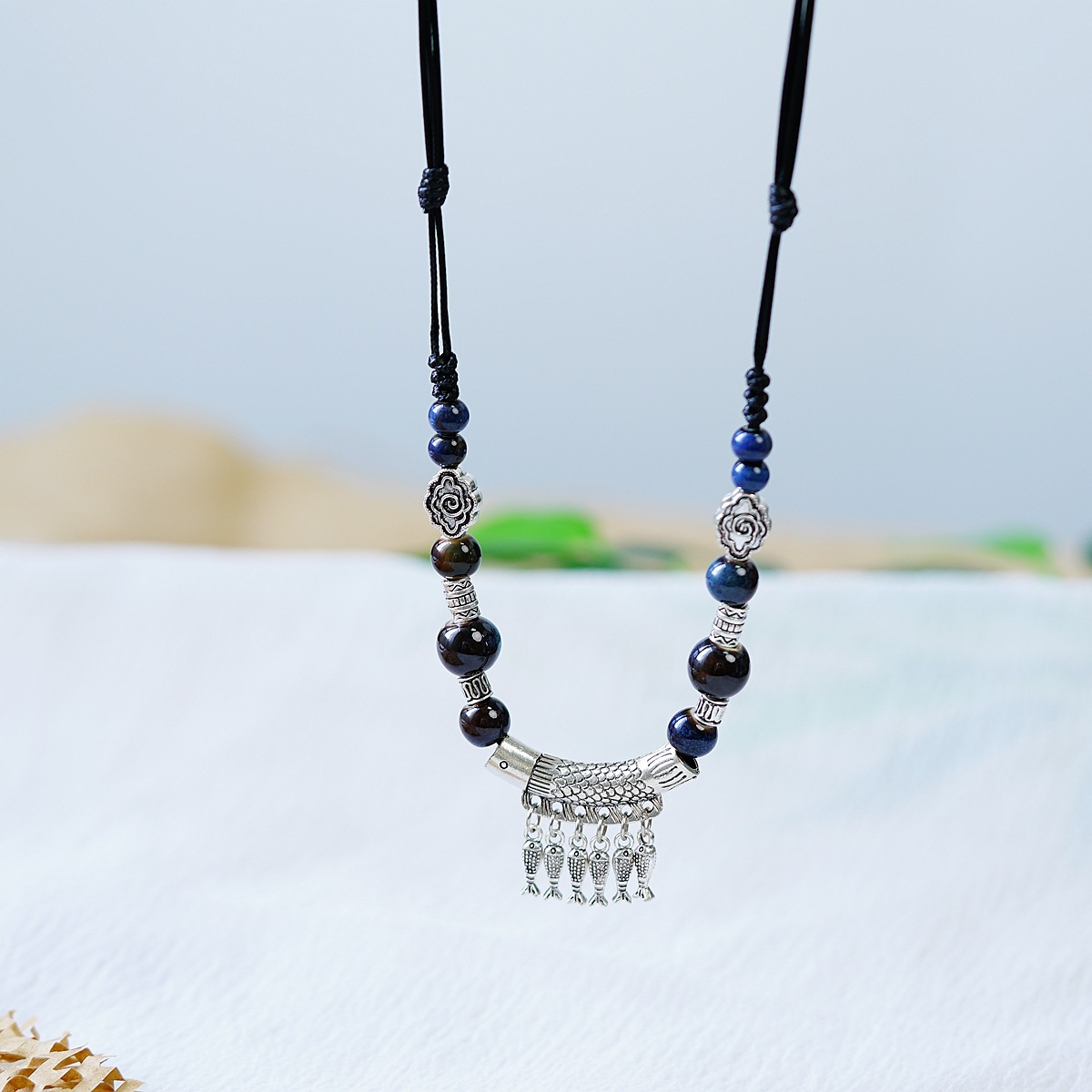 秋冬新款民族风个性好多鱼陶瓷项链女国风新中式吊坠女毛衣链饰品