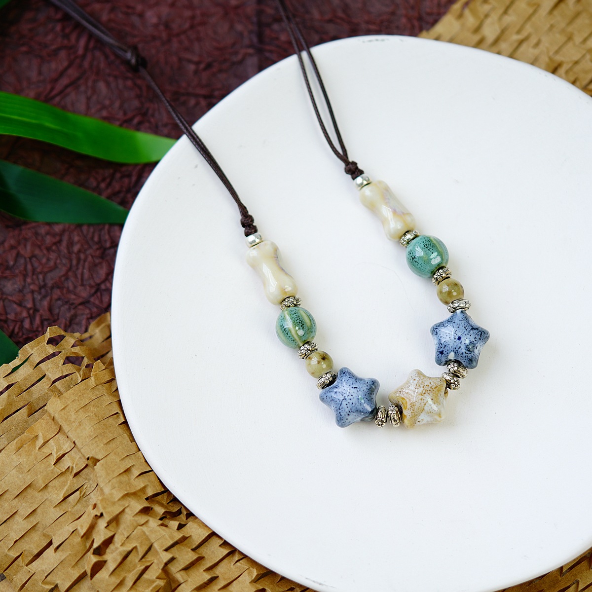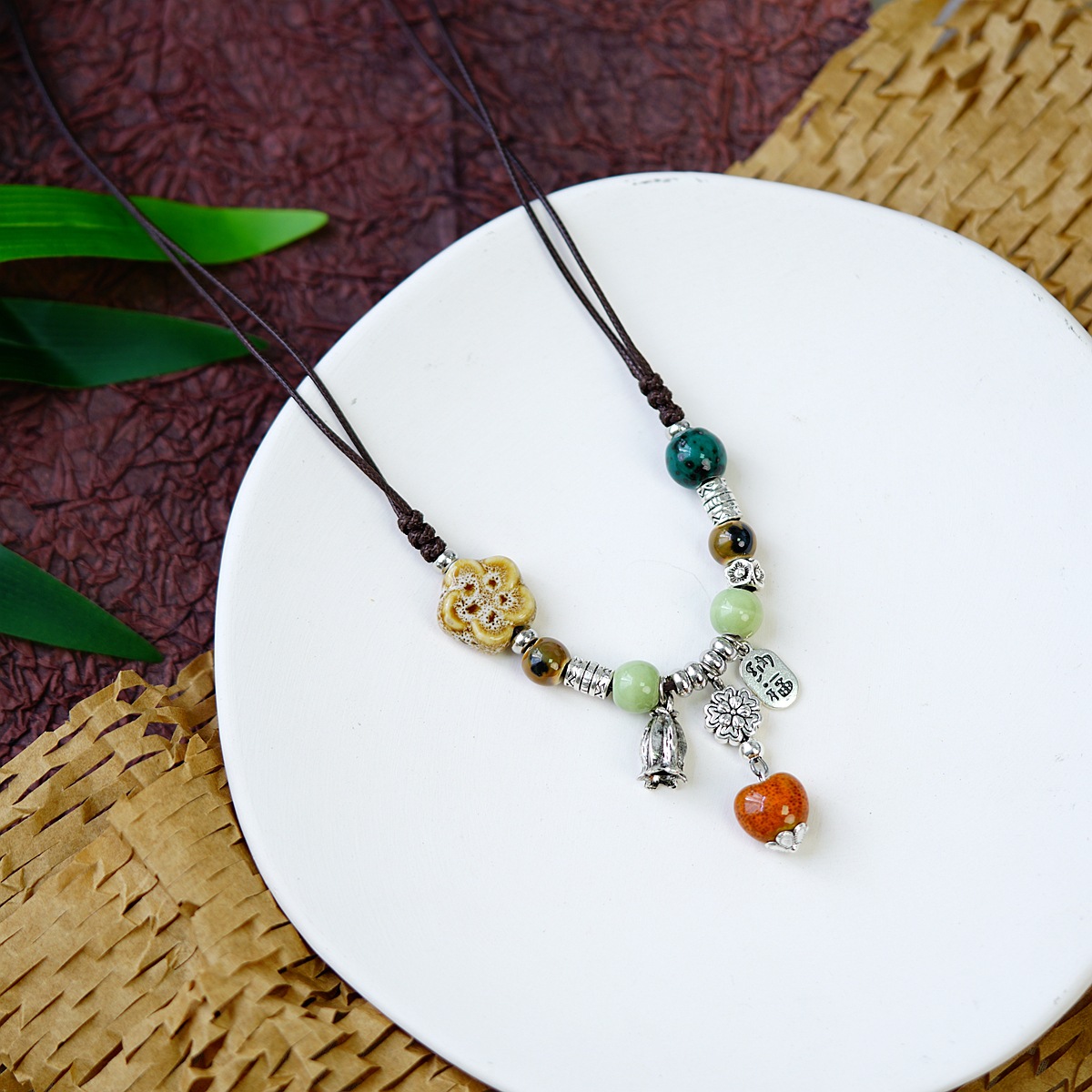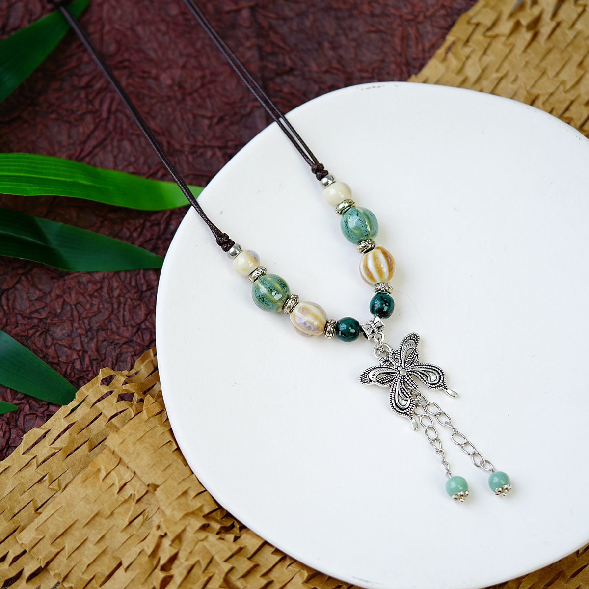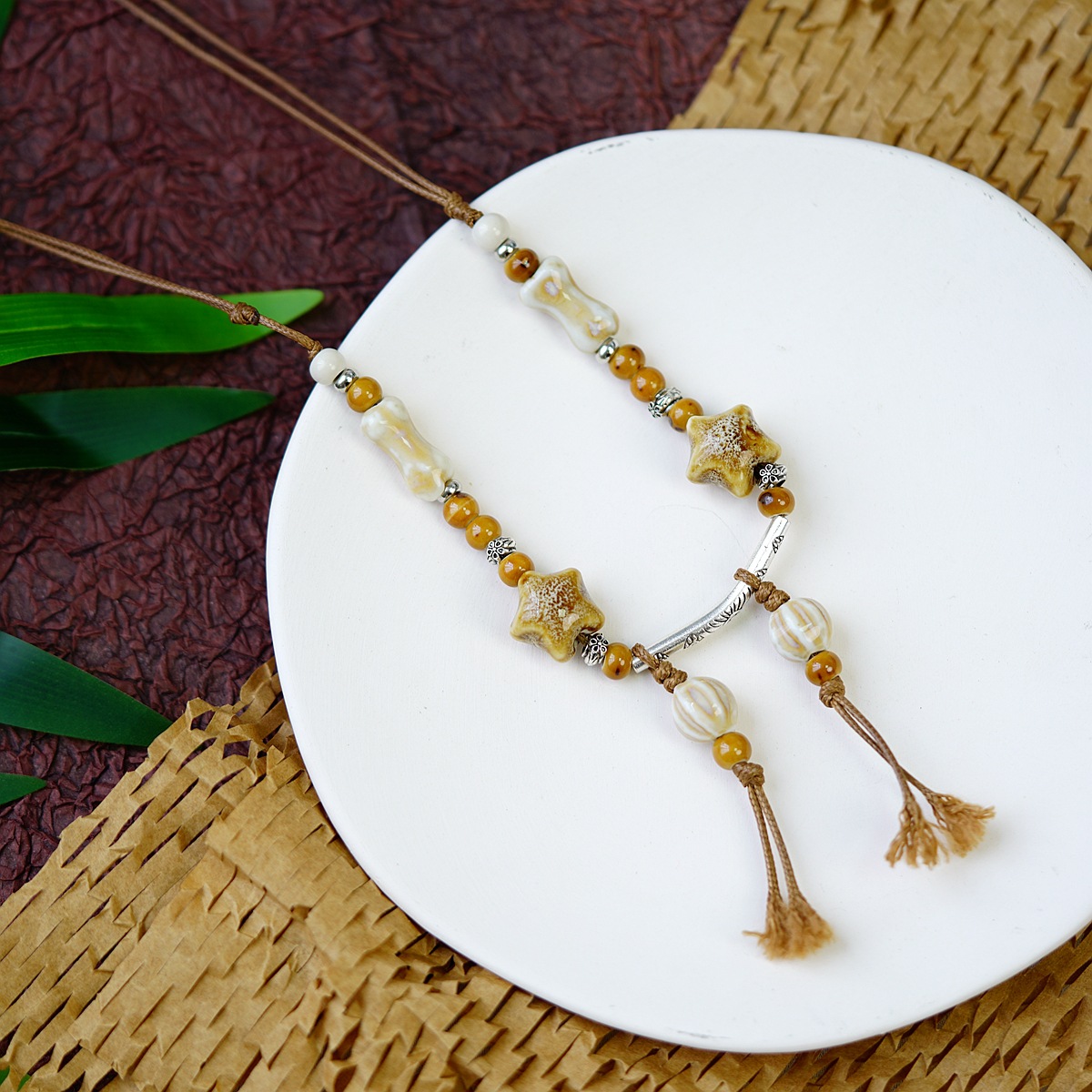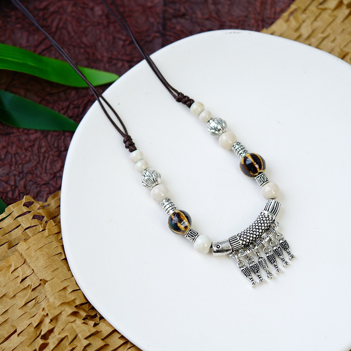 秋冬新款民族风个性好多鱼陶瓷项链女国风新中式吊坠女毛衣链饰品