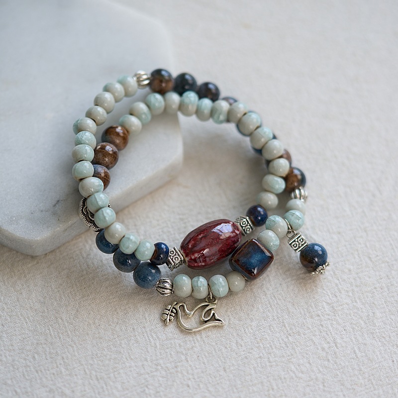景德镇陶瓷新中式手链女饰品批发民族风文艺情侣手串学生配饰手环