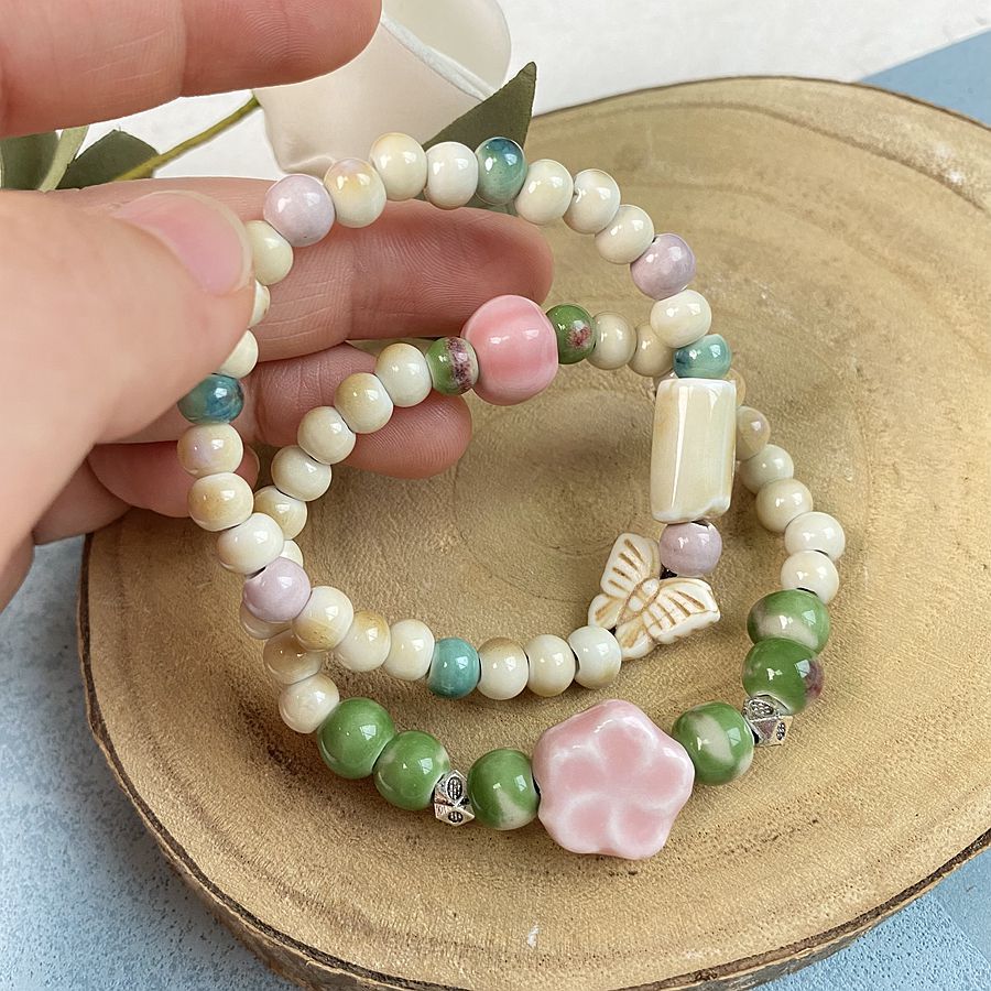 bracelet high-grade female summer national style jingdezhen porcelain rose beads bracelet artistic student ceramic bracelet new chinese style batch goods
