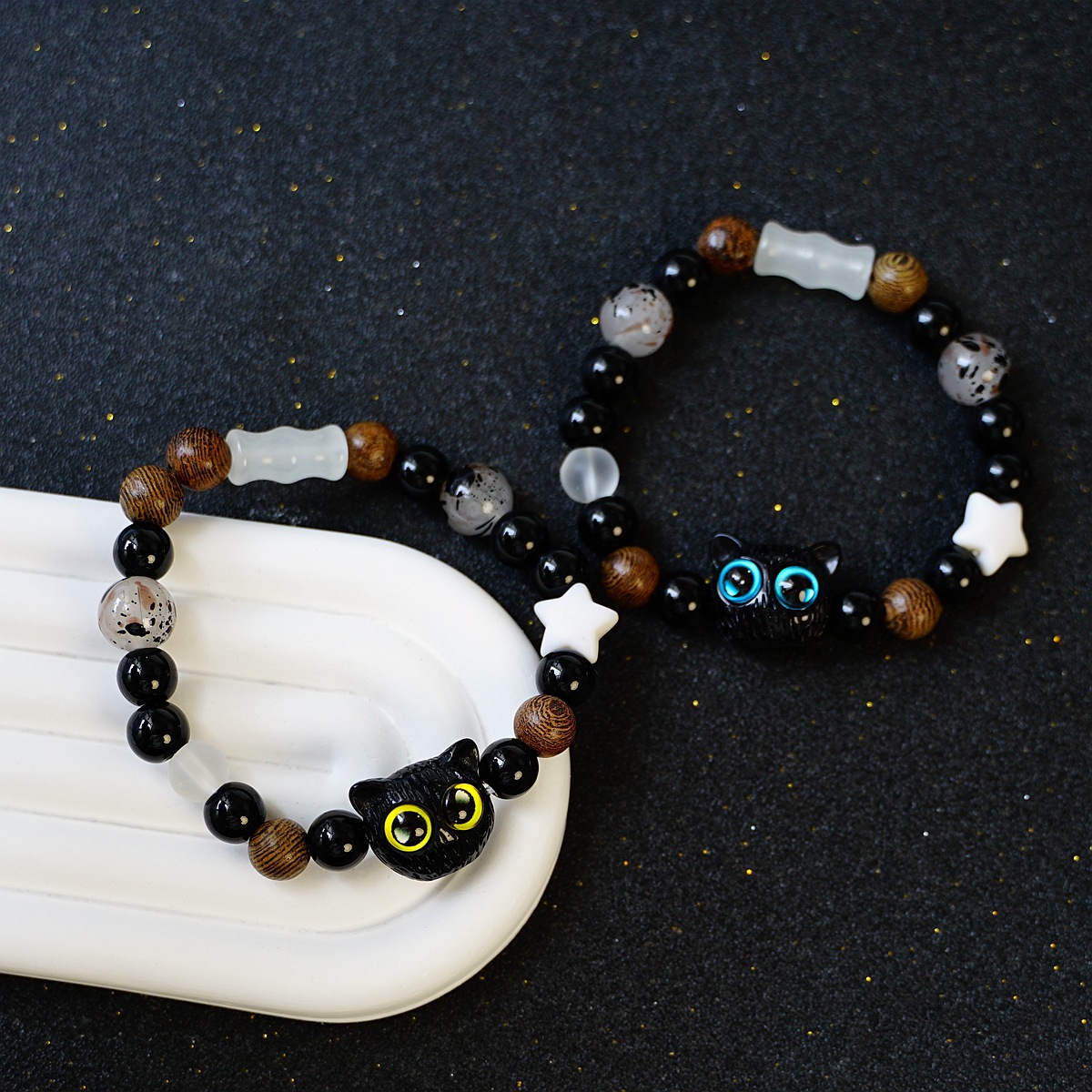 2024新款小红书同款呆萌小黑猫手链古风手串可爱复古手饰厂家货源