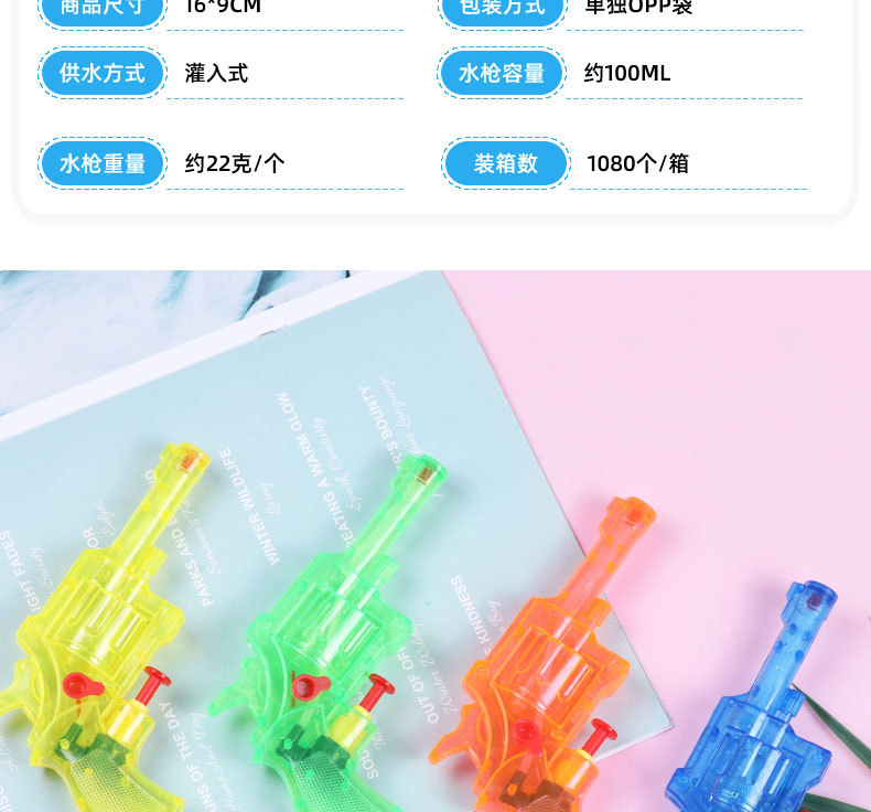 儿童透明左轮水枪 跨境供应夏季沙滩卡通戏水地摊玩具外贸批发