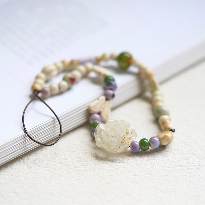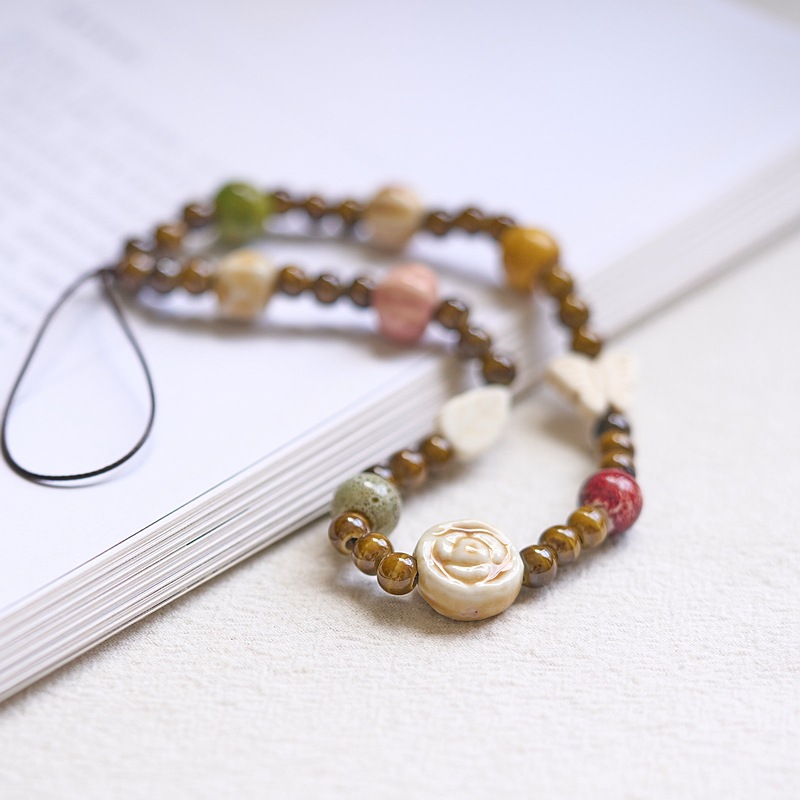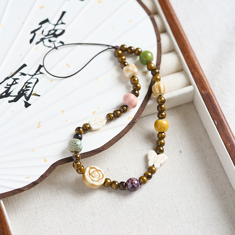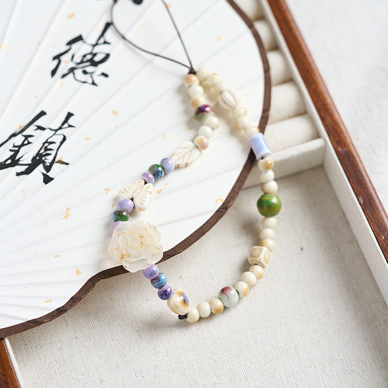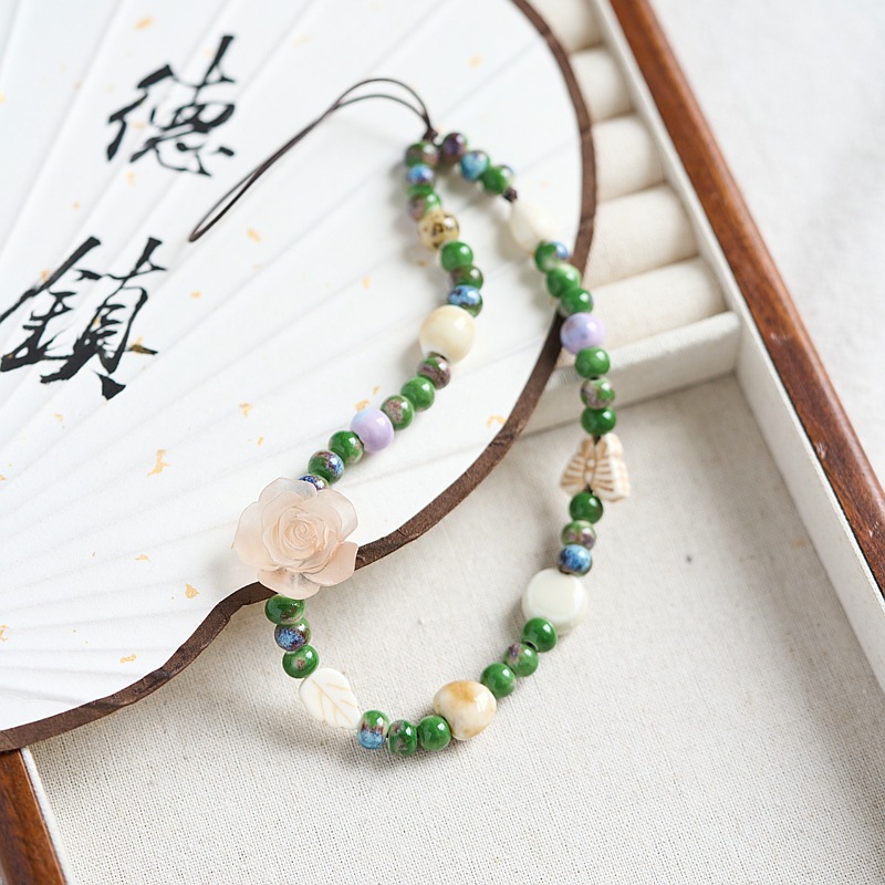 新中式百搭高级感手机链diy手机壳挂链挂绳景德镇陶瓷手机链批发