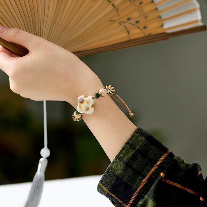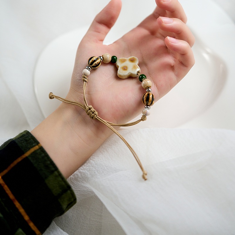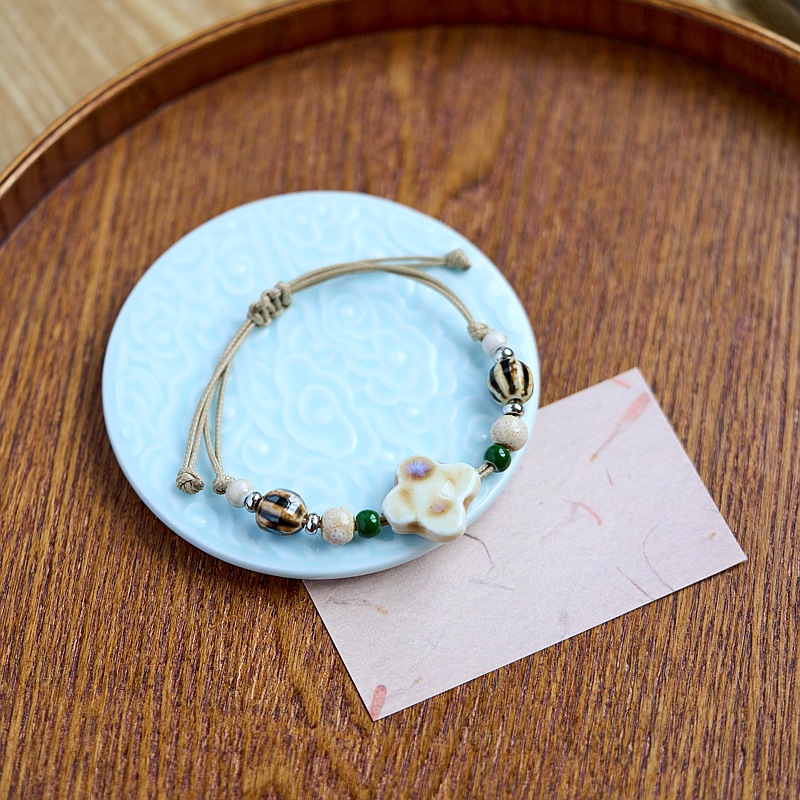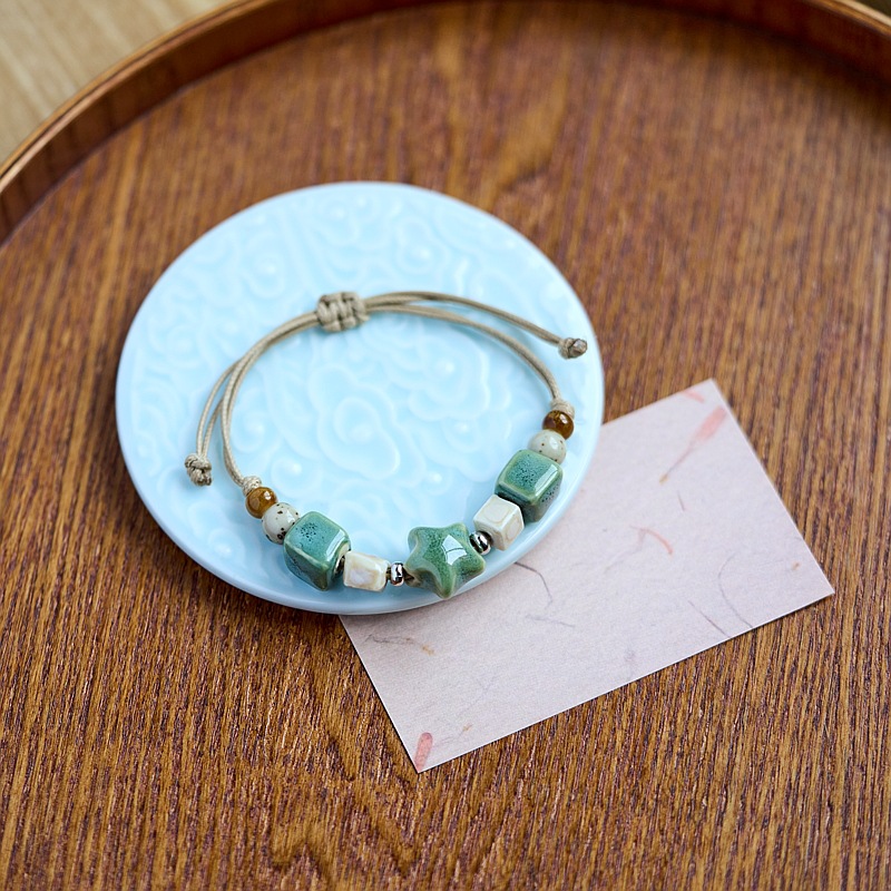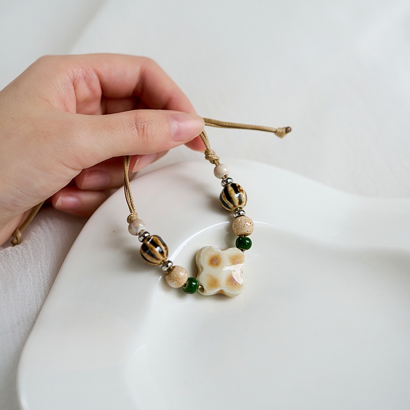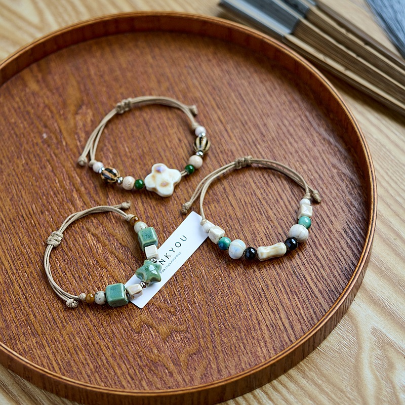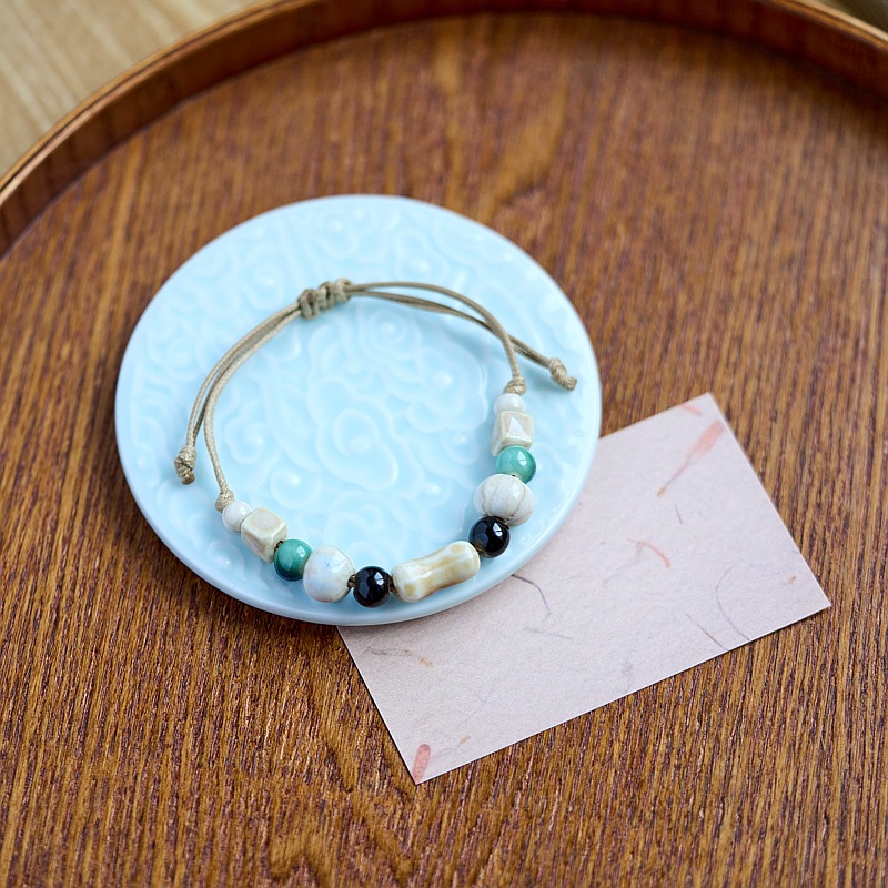 文艺编织抽拉新中式陶瓷手串闺蜜景德镇手链爆款女十元三串饰品