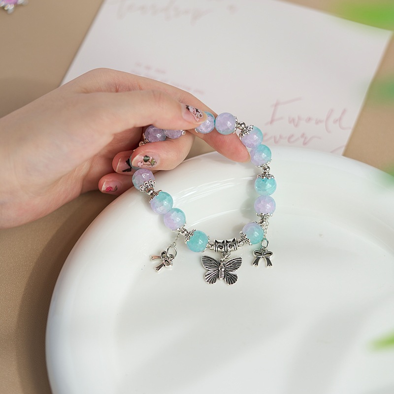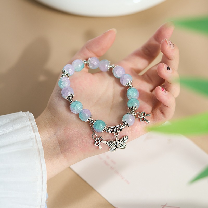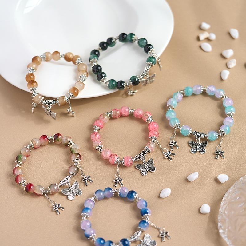 东南亚热销蝴蝶元素碎珠手链女小众设计森系甜美彩色珠手串批发