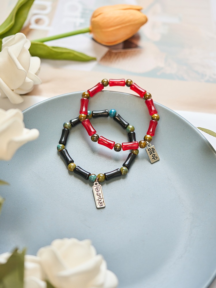 景德镇陶瓷手串批发礼物女新中式古风串珠饰品逢考必过竹节手链
