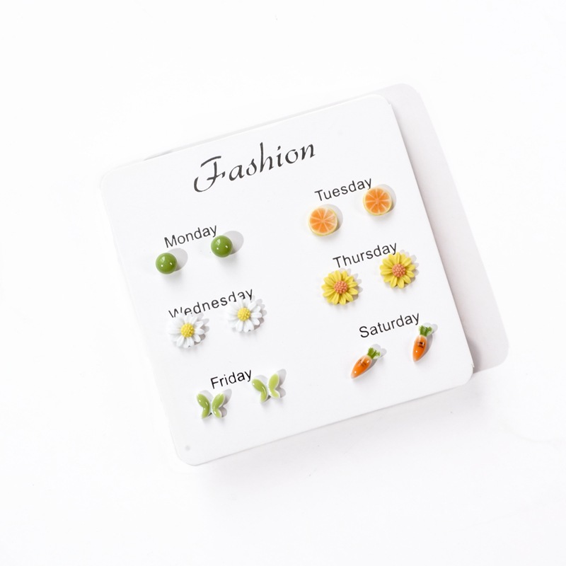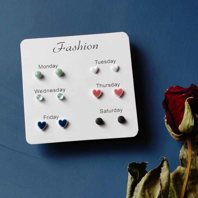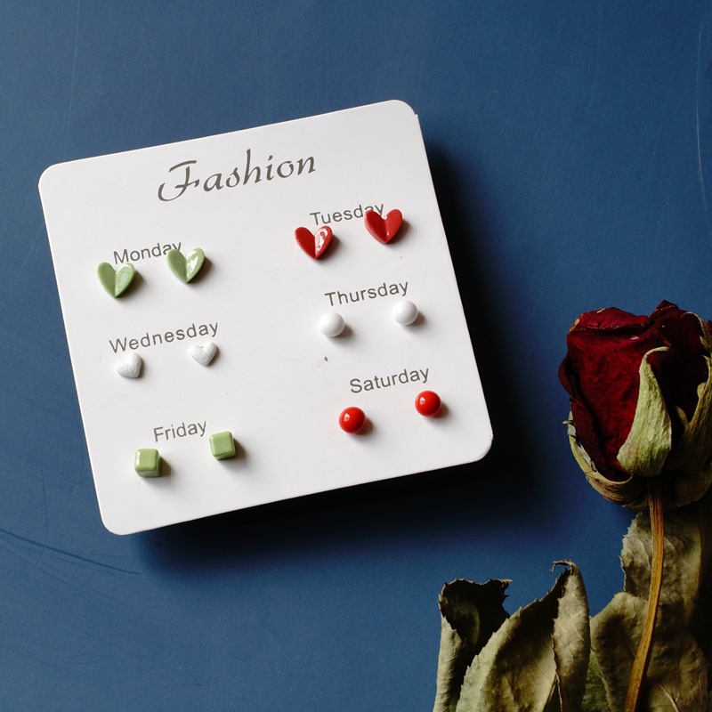 韩版流行夏天ins风一周陶瓷耳钉女 清新百搭气质星期组合小耳饰女