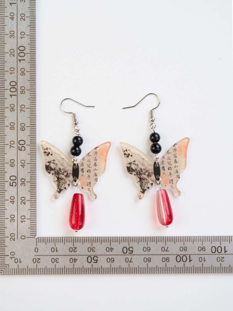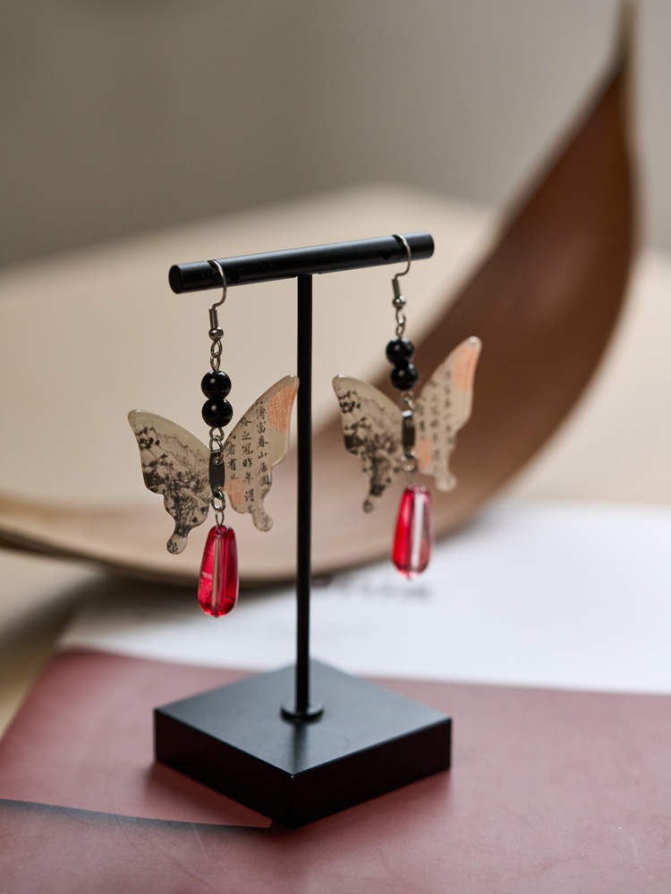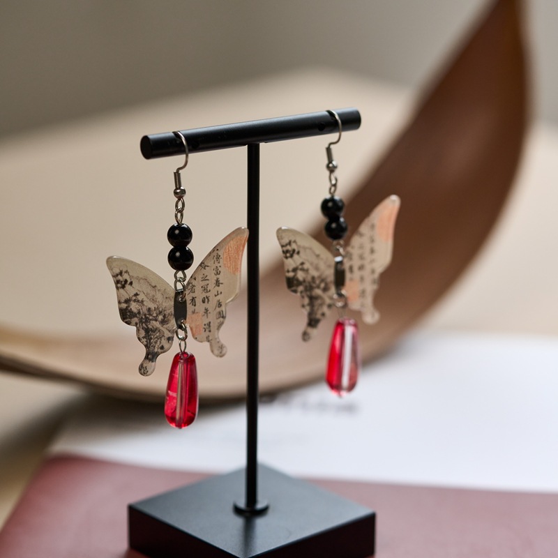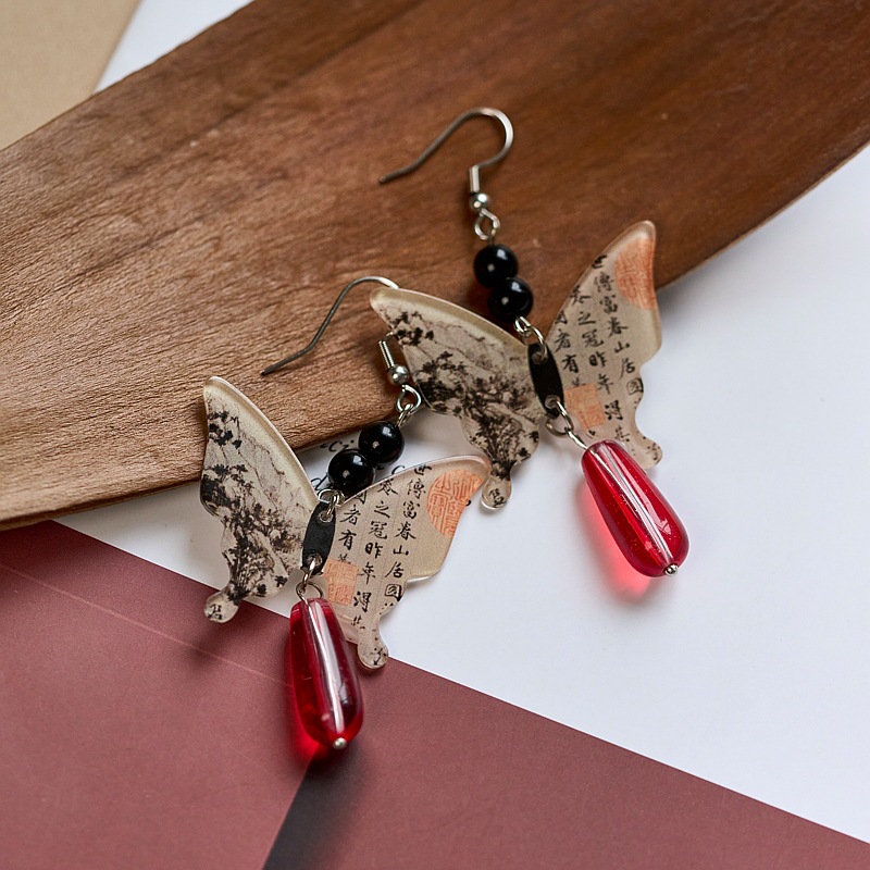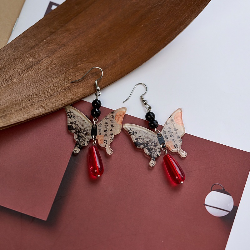新中式古风串珠长款流苏耳环中国风汉服配饰花朵扇子蝴蝶结耳坠女