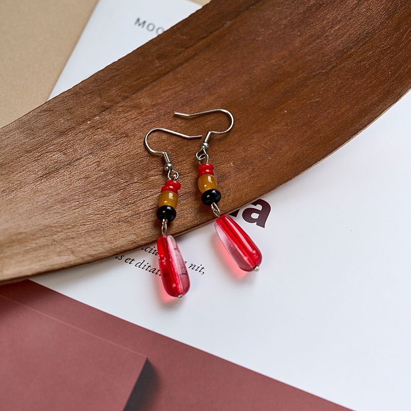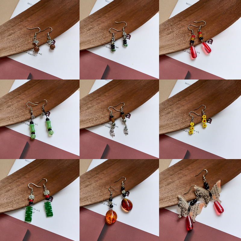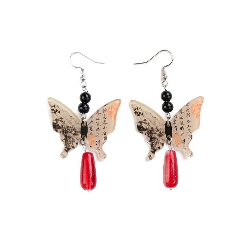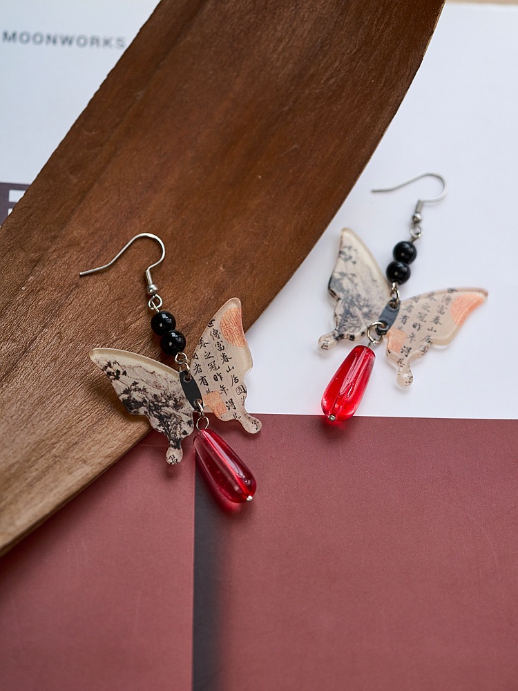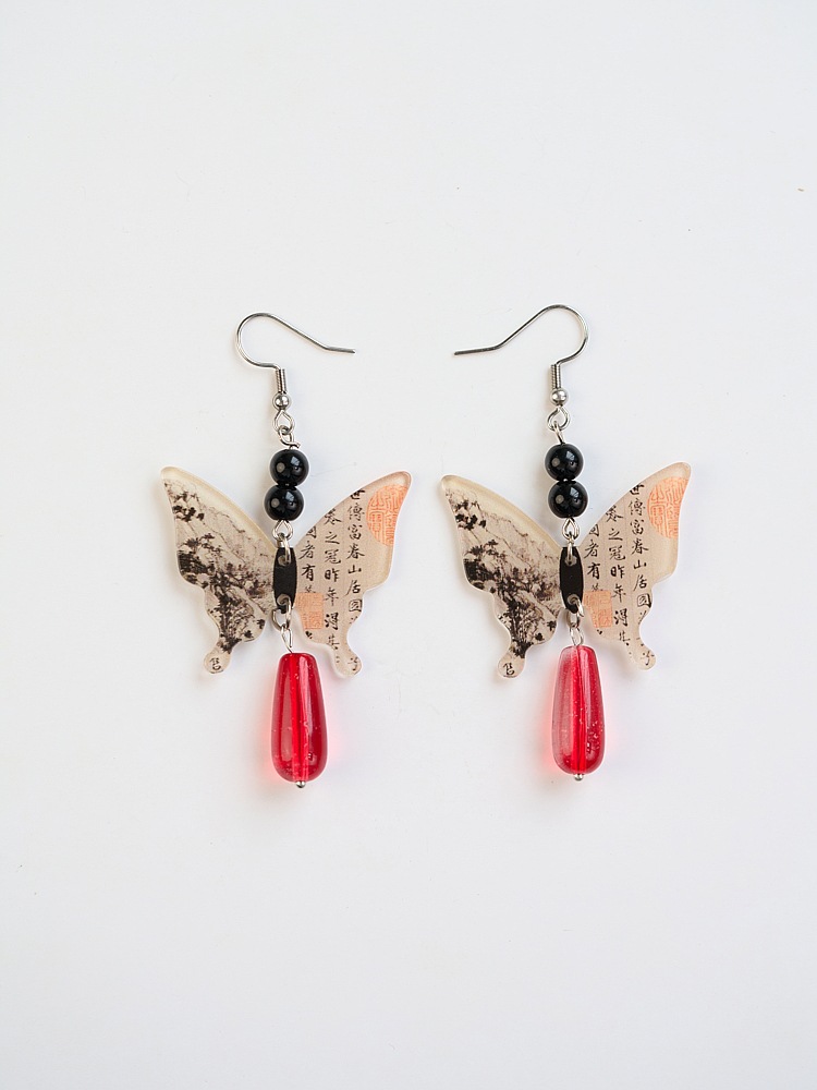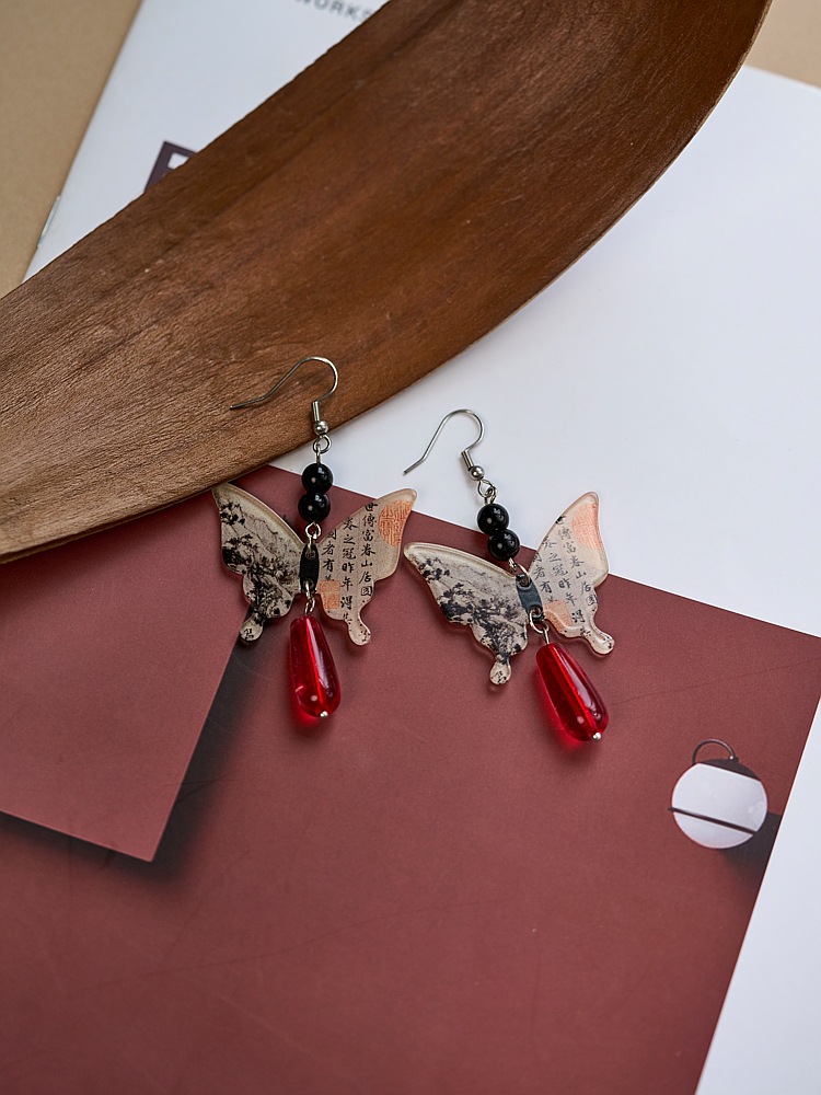 新中式古风串珠长款流苏耳环中国风汉服配饰花朵扇子蝴蝶结耳坠女